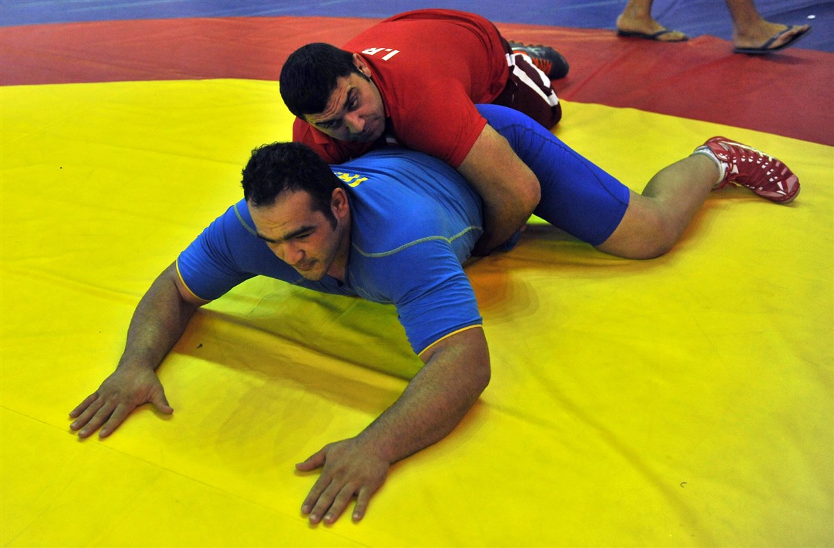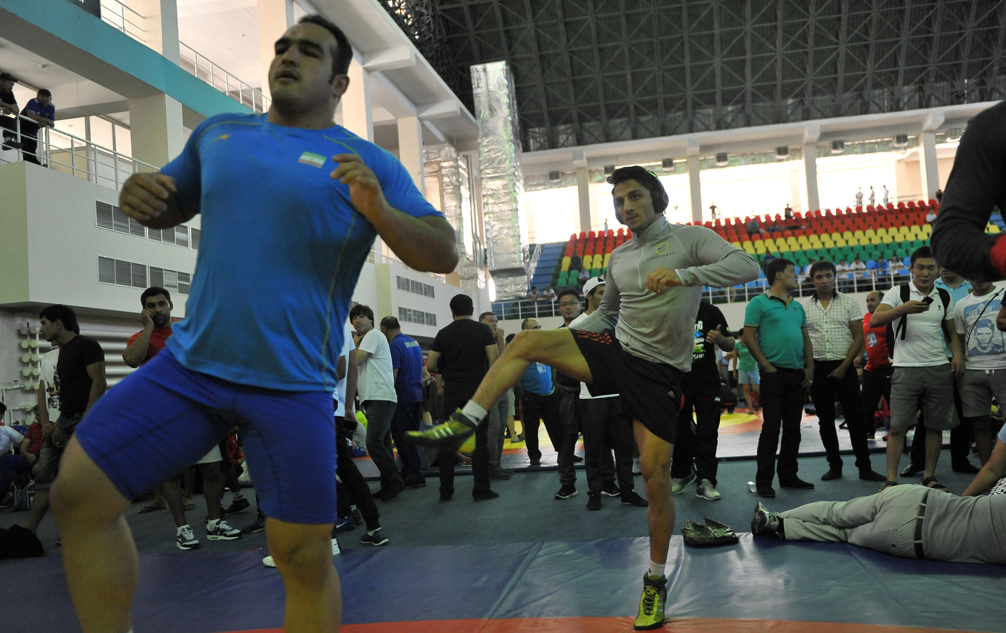 تمرین تیم ملی کشتی فرنگی در سالن رقابت ها