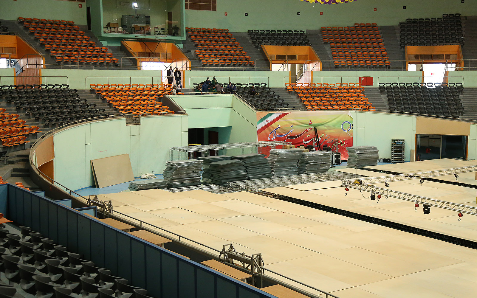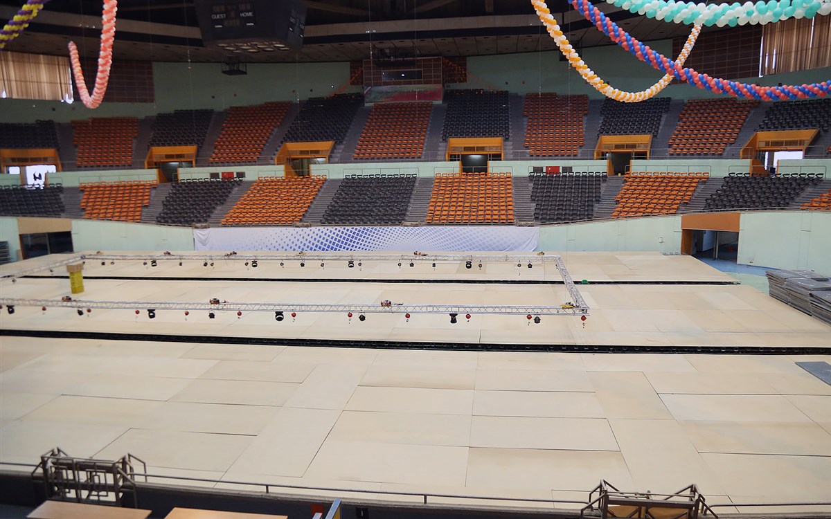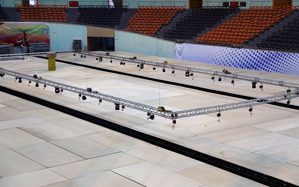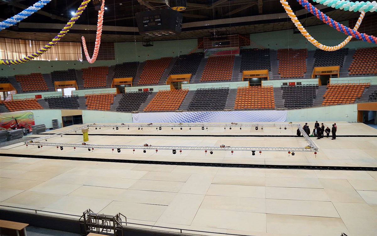 روند آماده سازی سالن رقابت ها- صبح روز سه شنبه 14 بهمن ماه