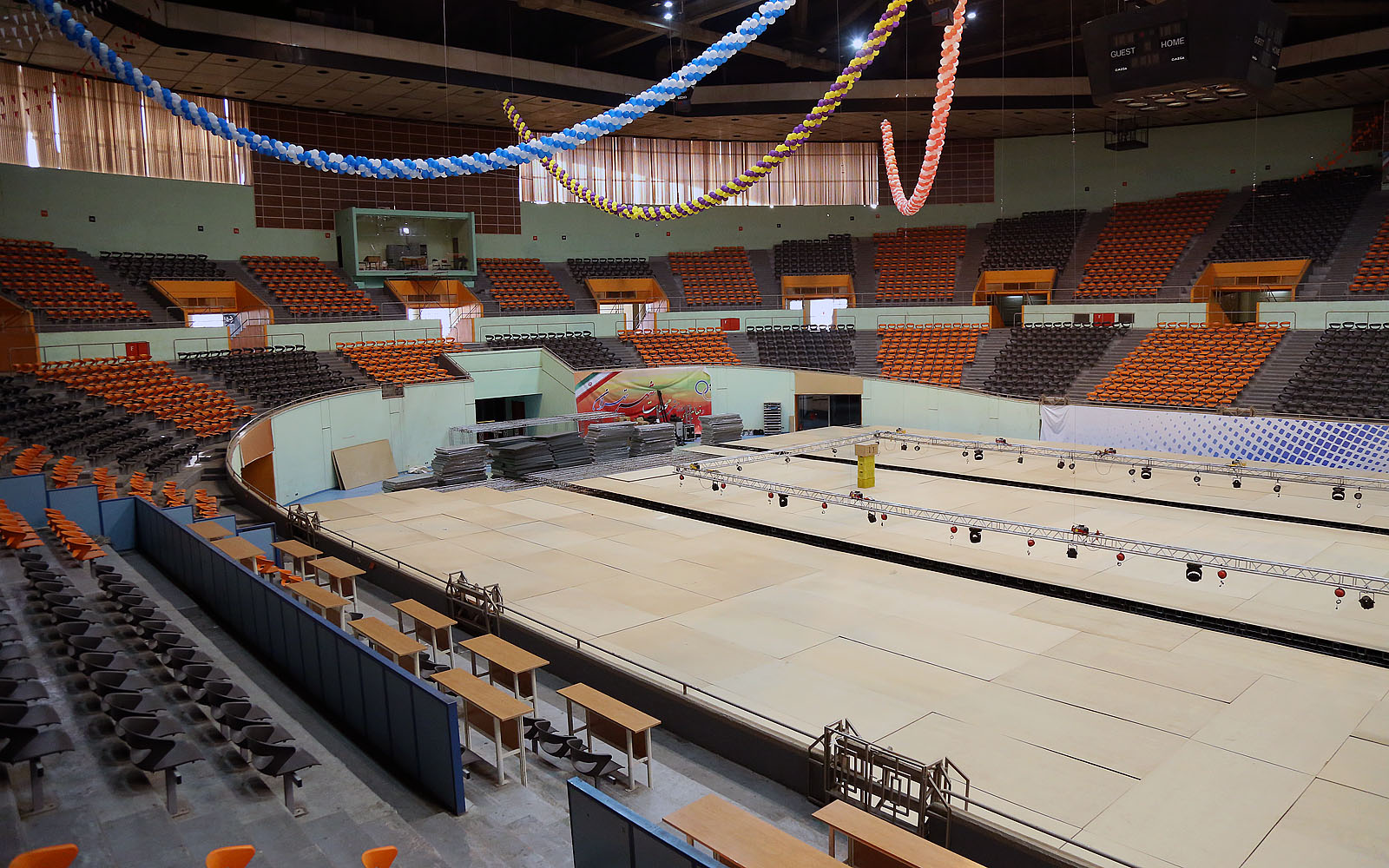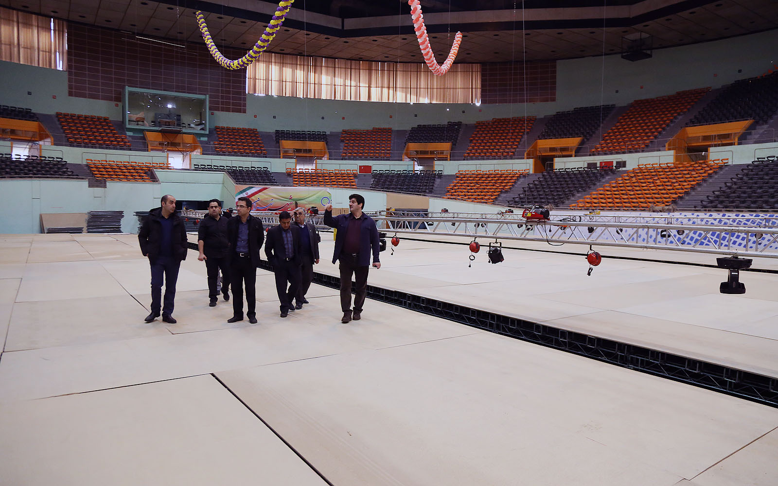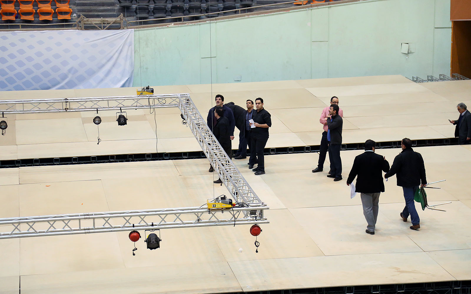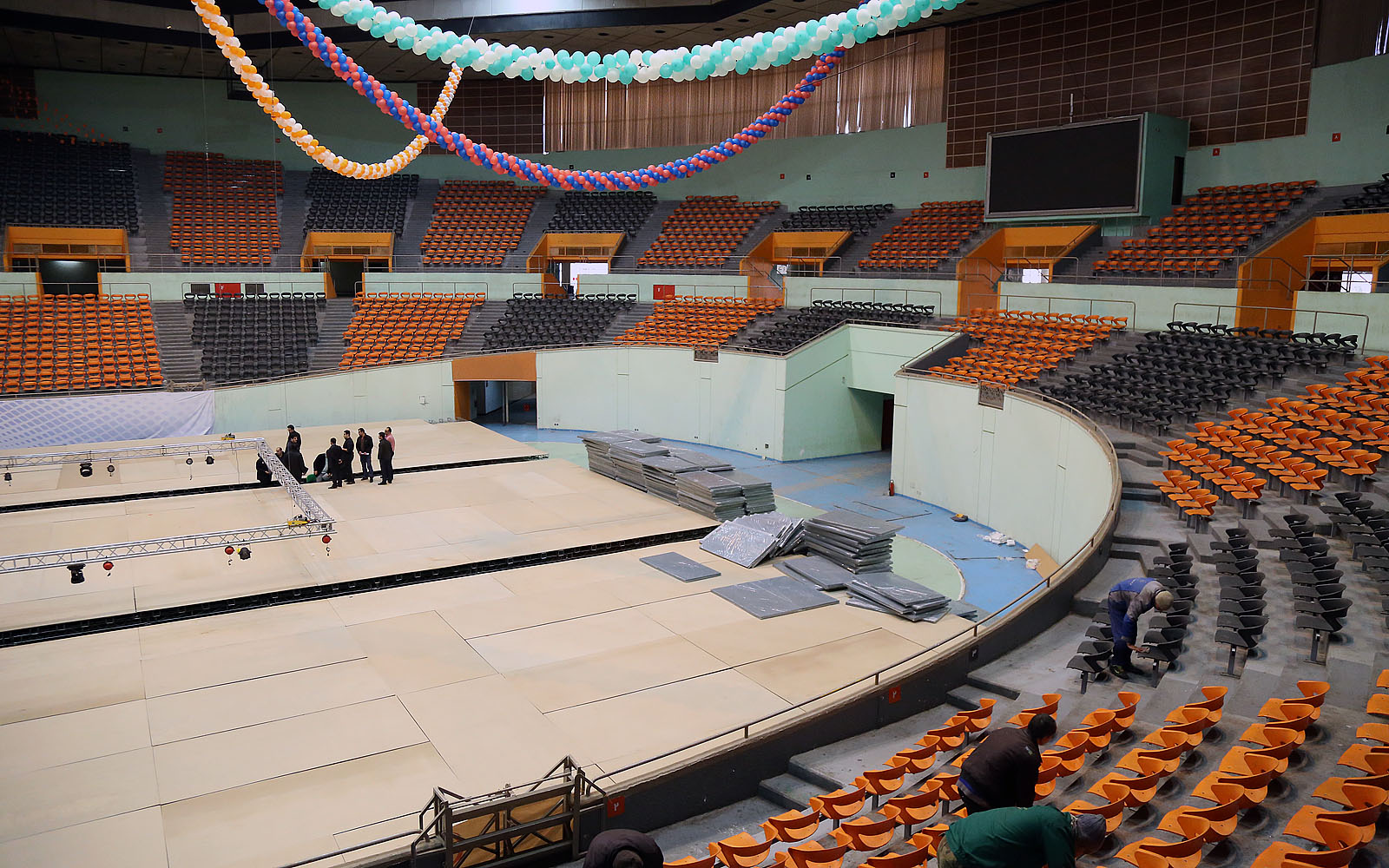روند آماده سازی سالن رقابت ها- صبح روز سه شنبه 14 بهمن ماه