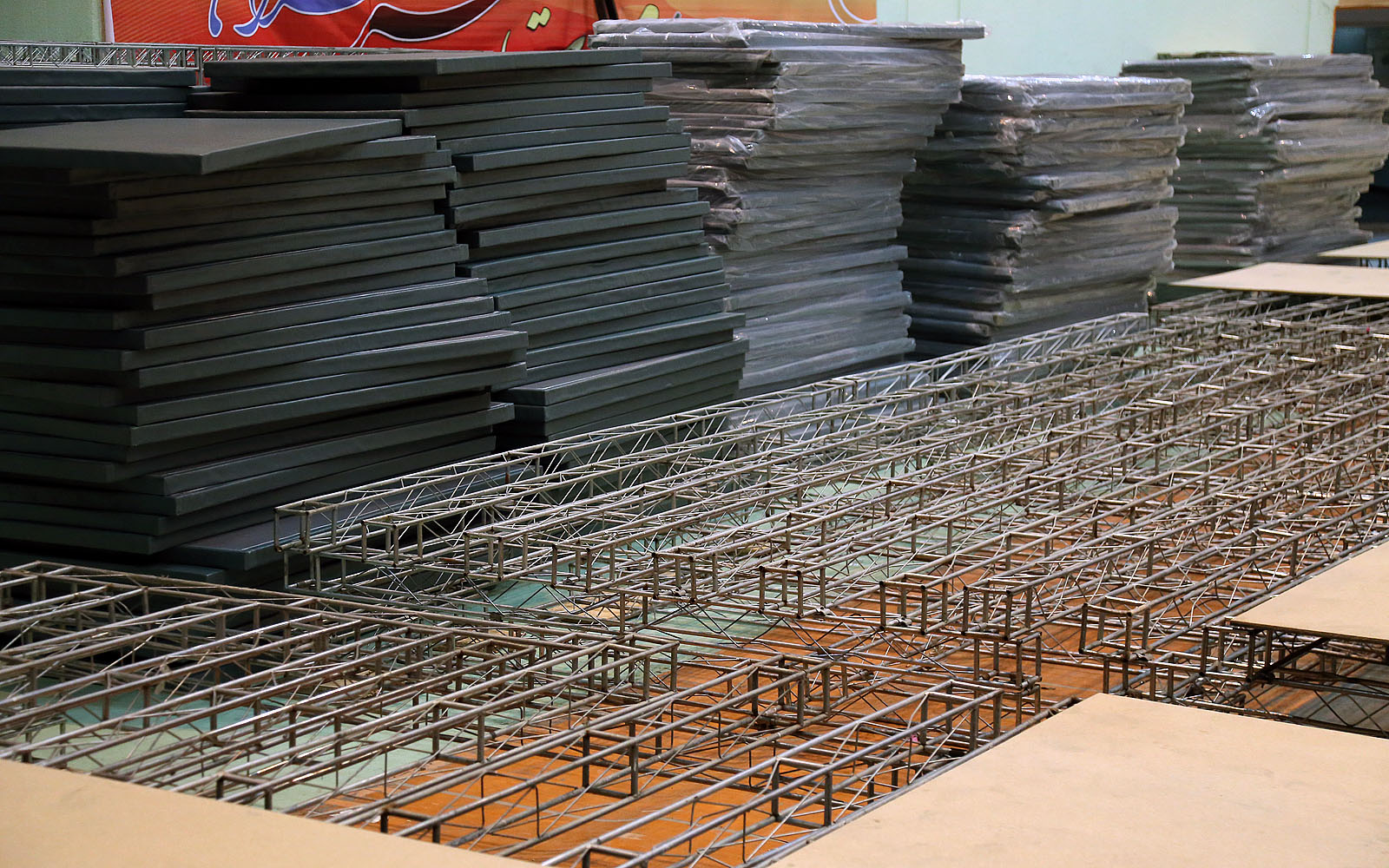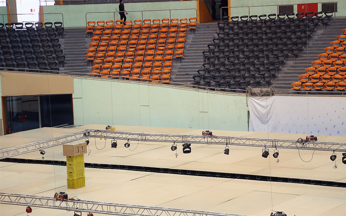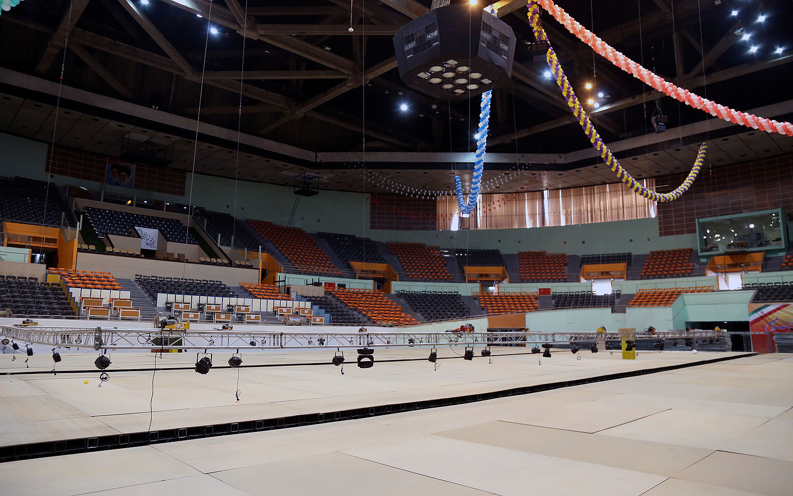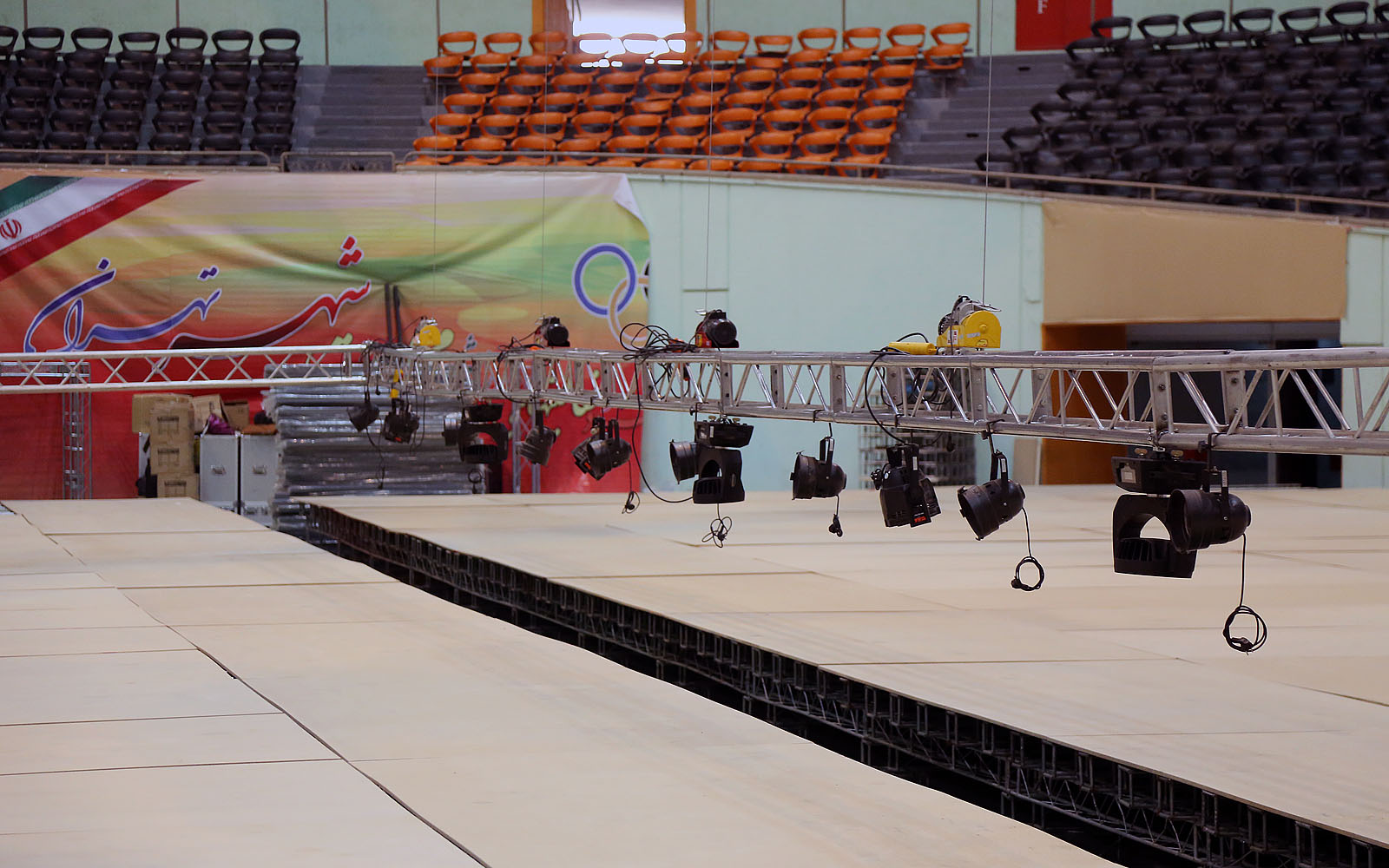 روند آماده سازی سالن رقابت ها- صبح روز سه شنبه 14 بهمن ماه
