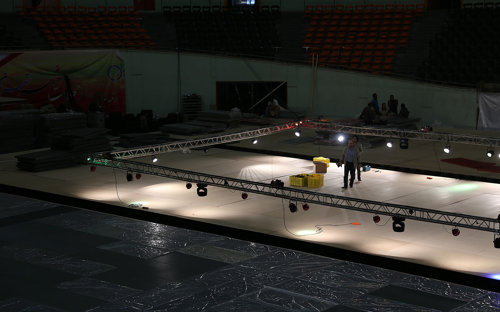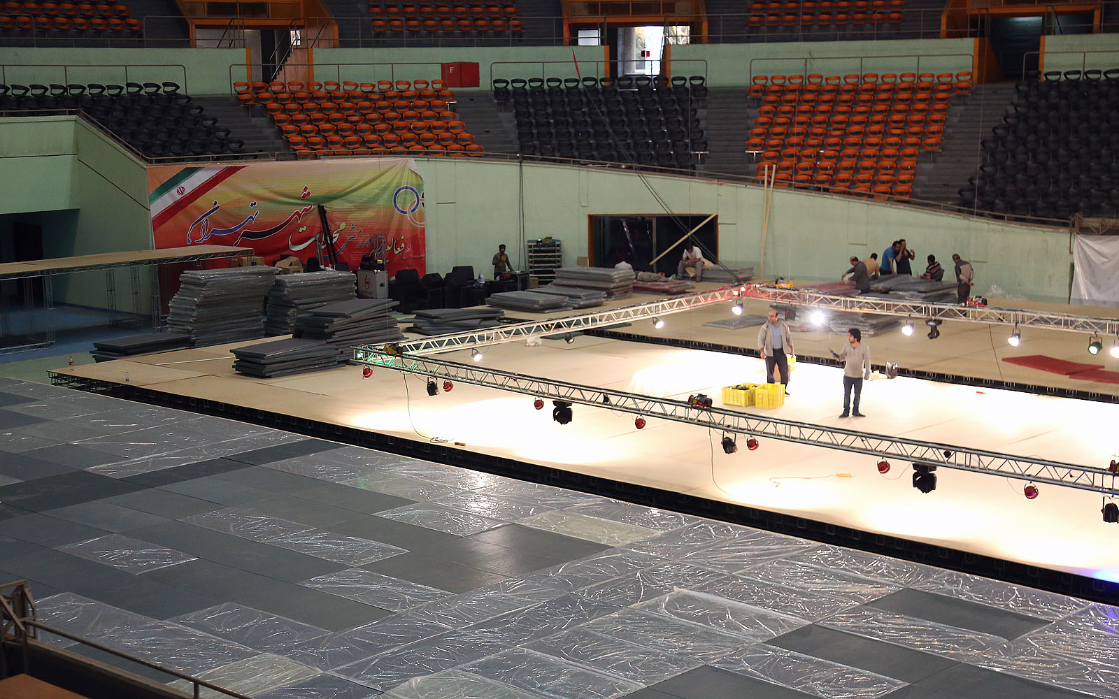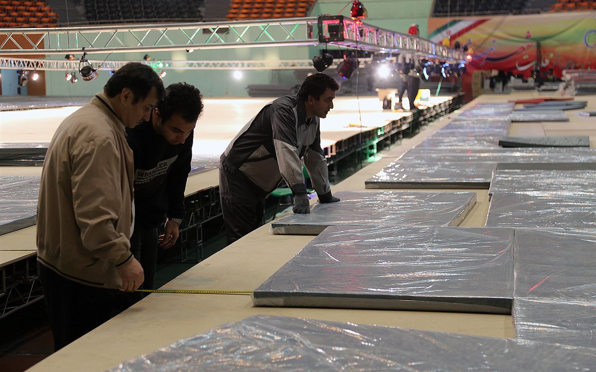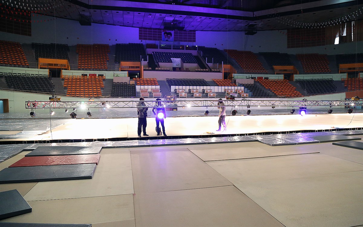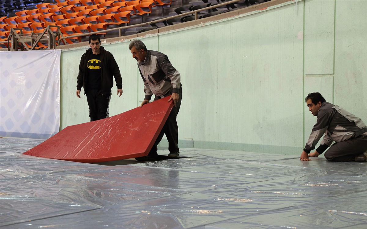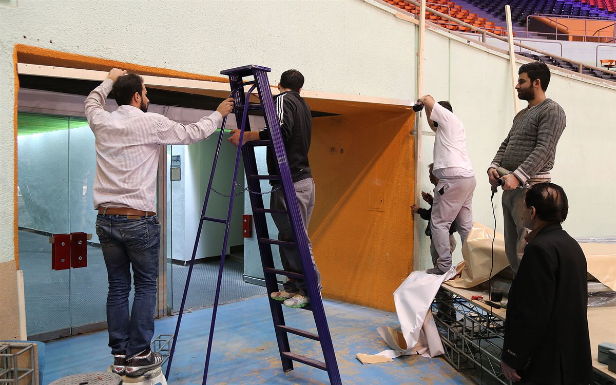 روند آماده سازی سالن رقابت ها- عصر روز سه شنبه 14 بهمن ماه