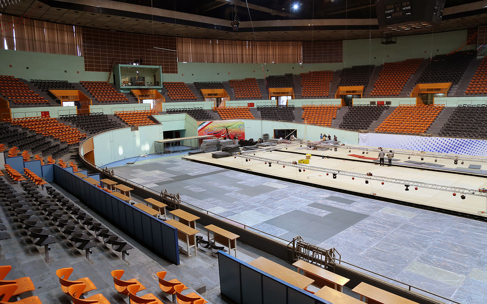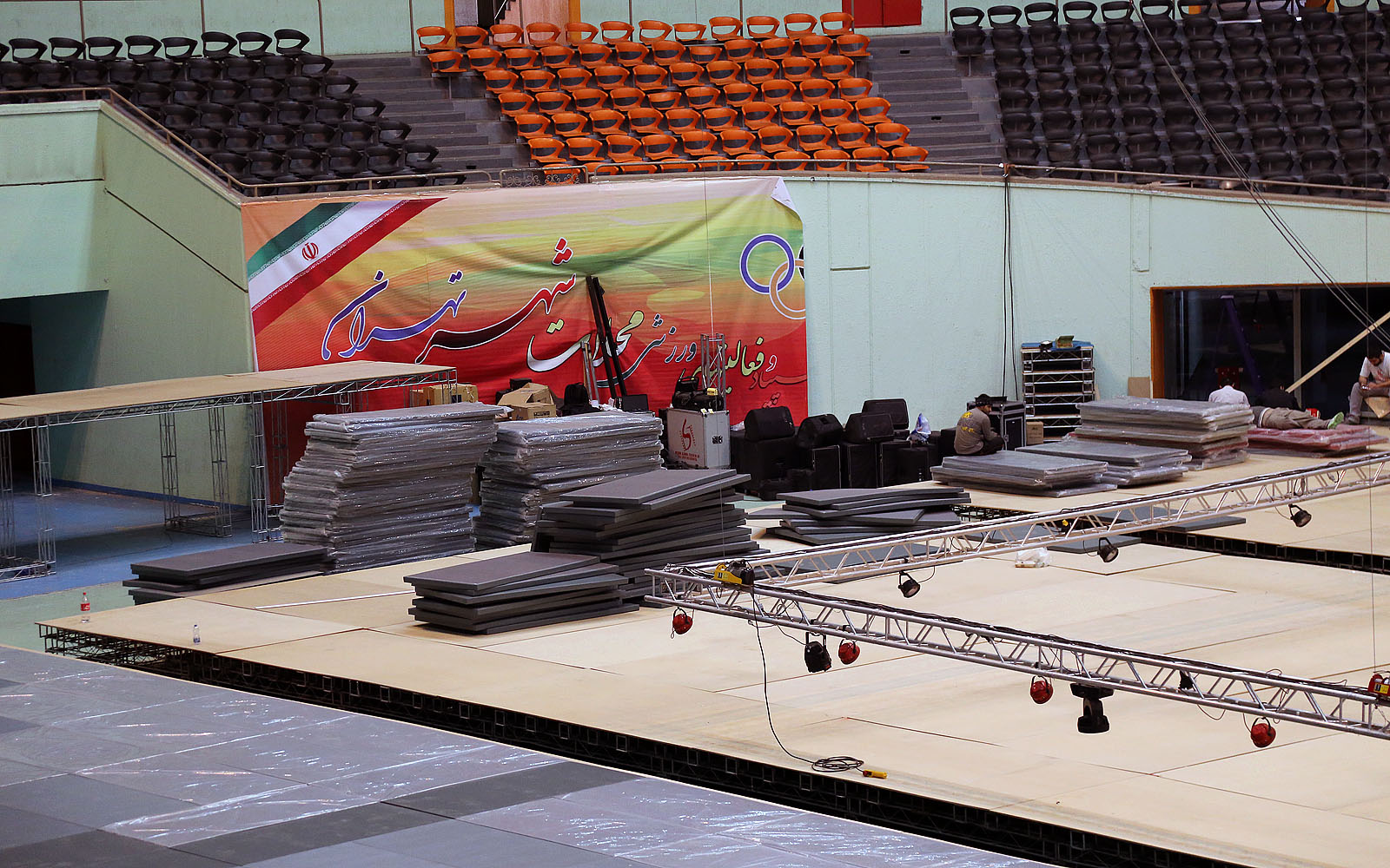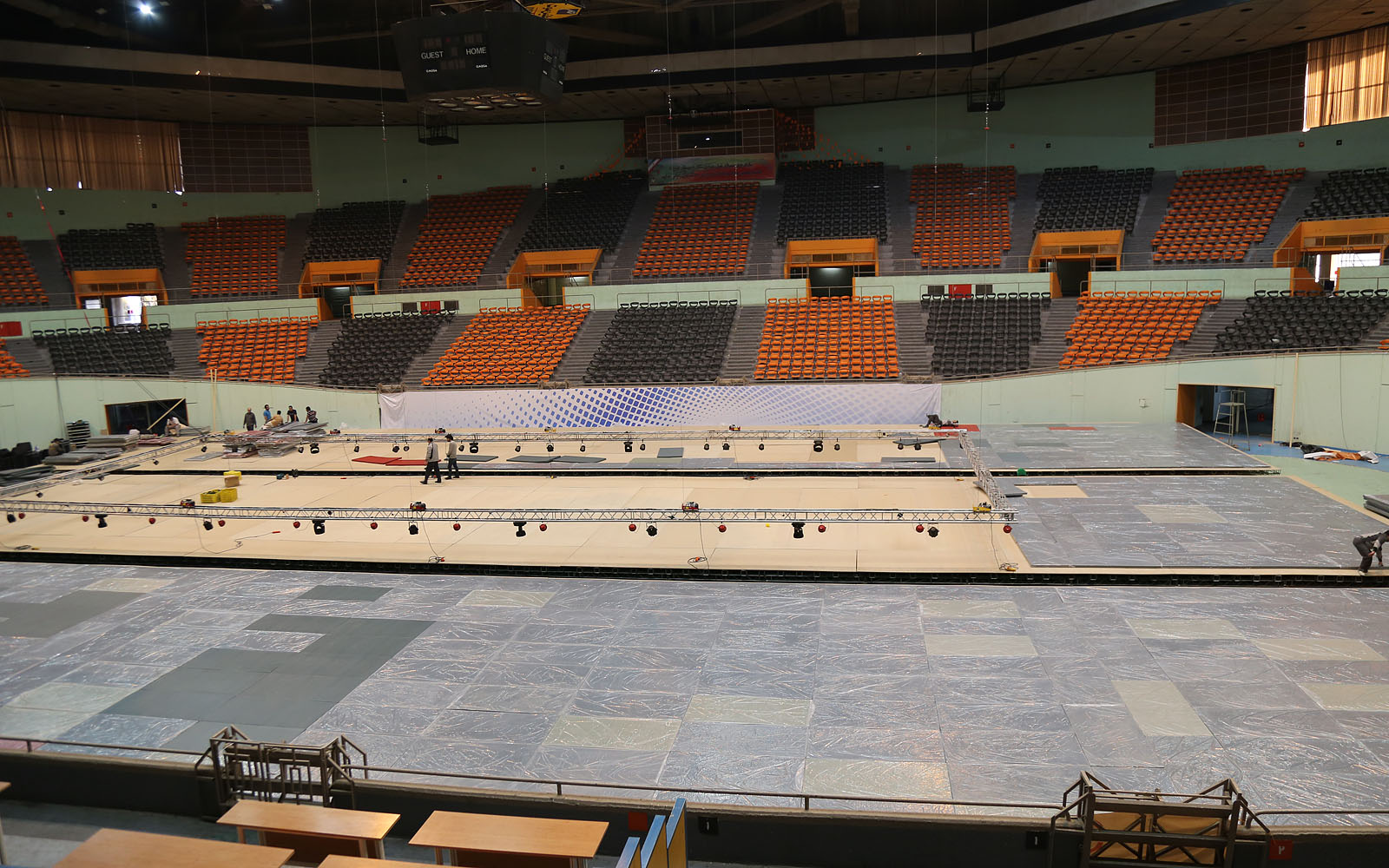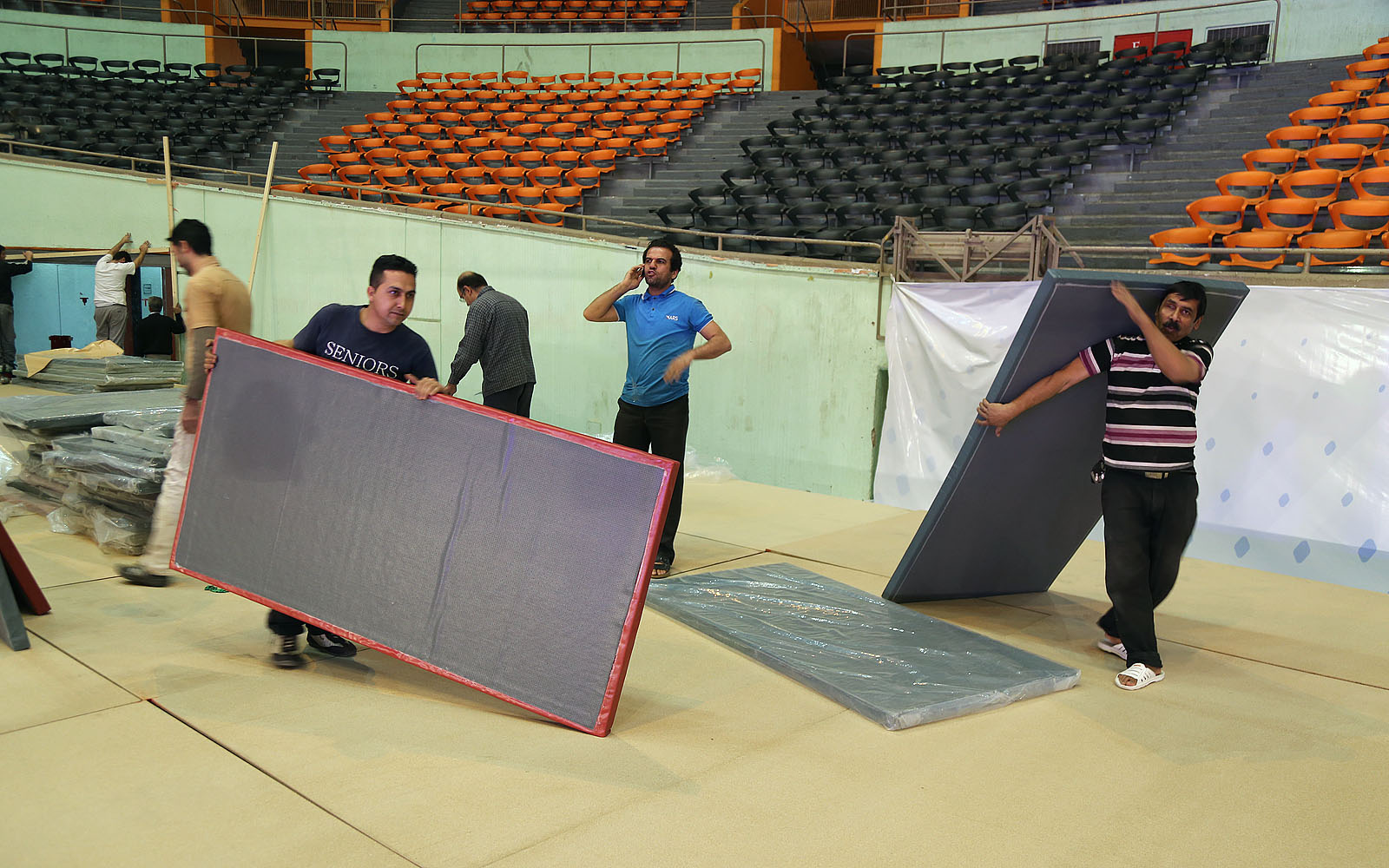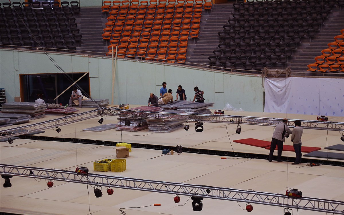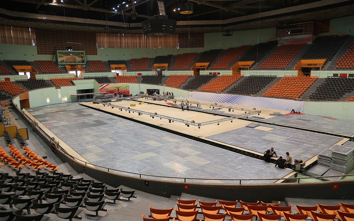 روند آماده سازی سالن رقابت ها- عصر روز سه شنبه 14 بهمن ماه