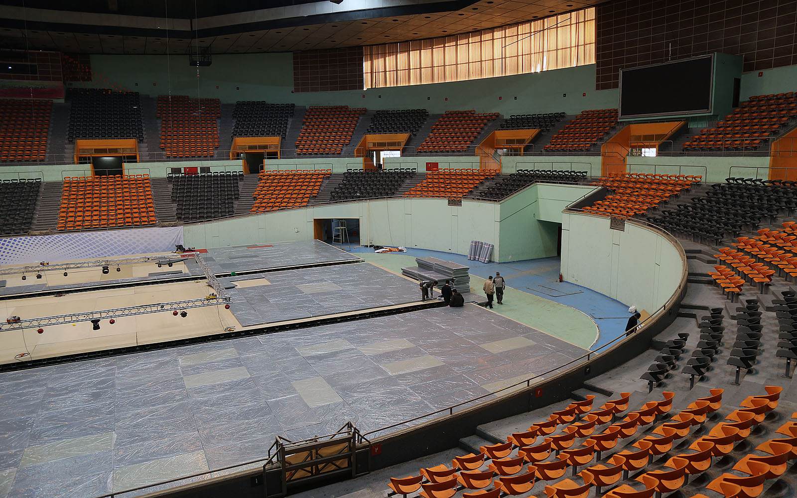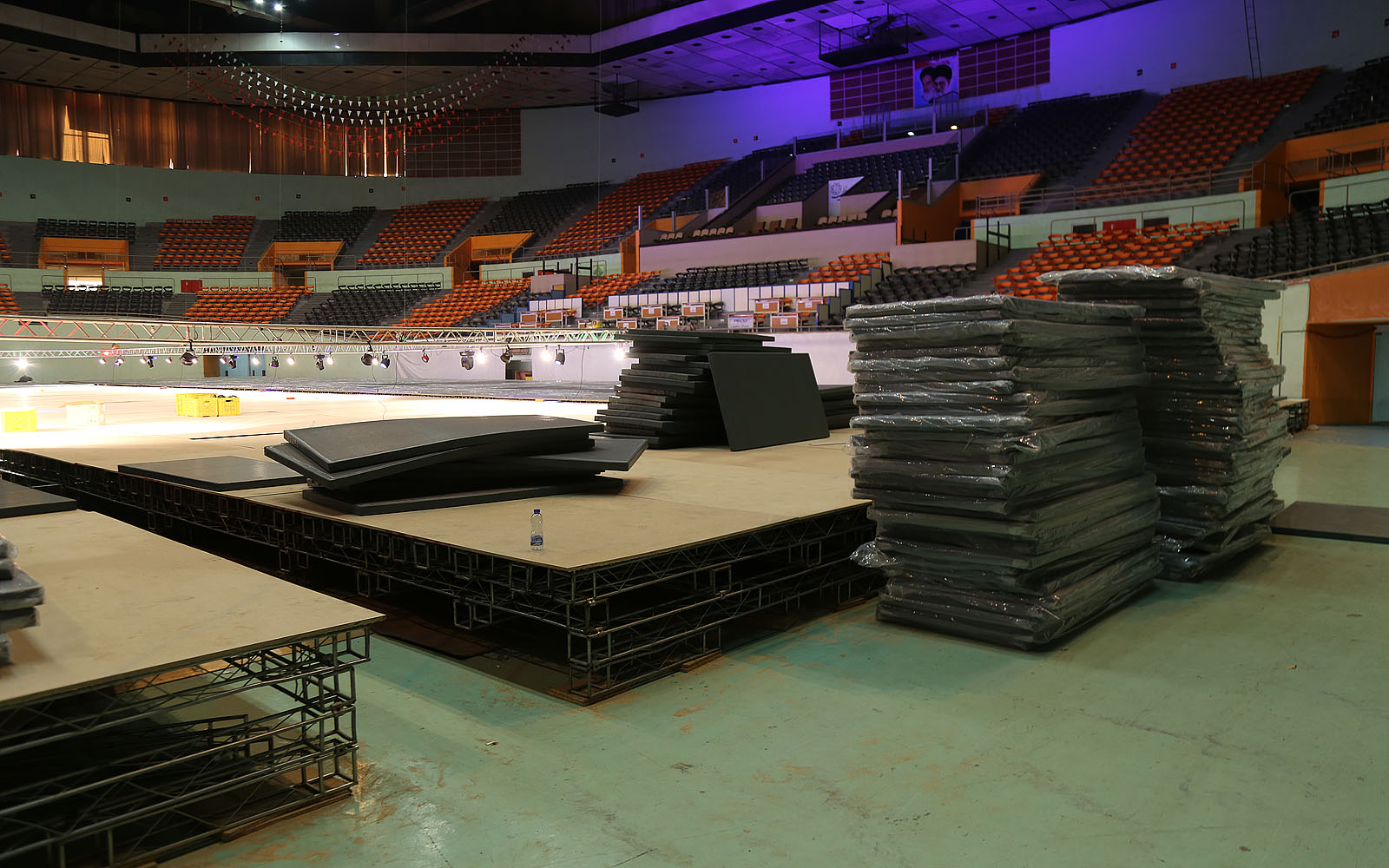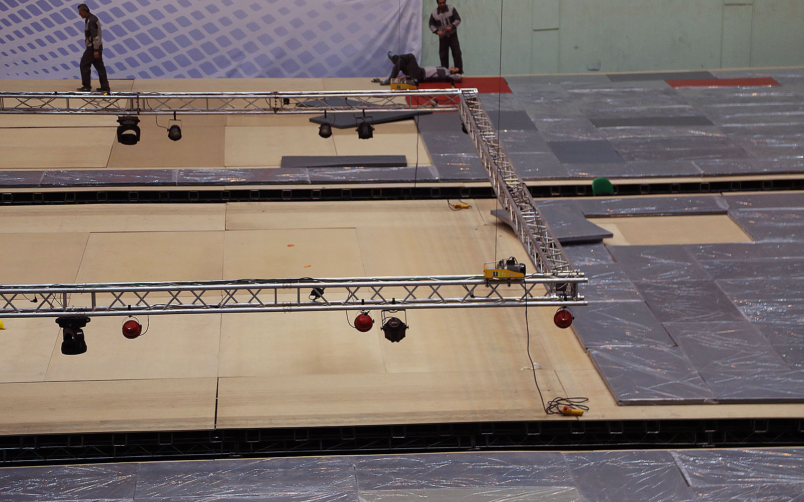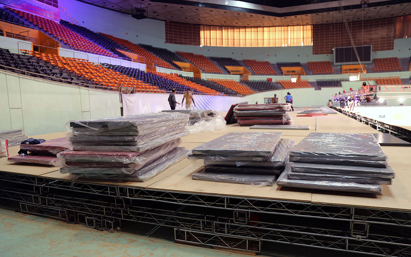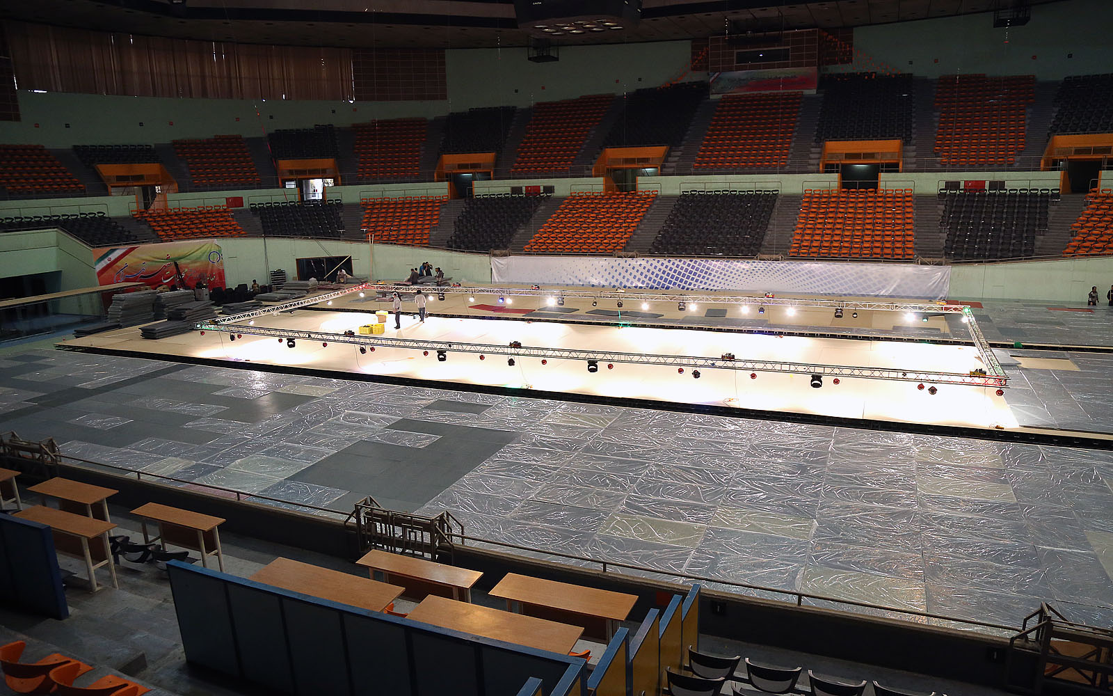 روند آماده سازی سالن رقابت ها- عصر روز سه شنبه 14 بهمن ماه