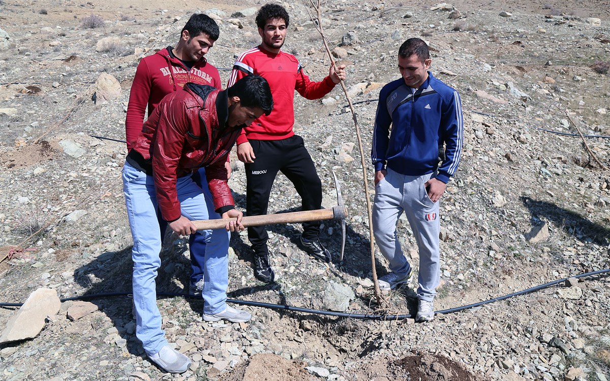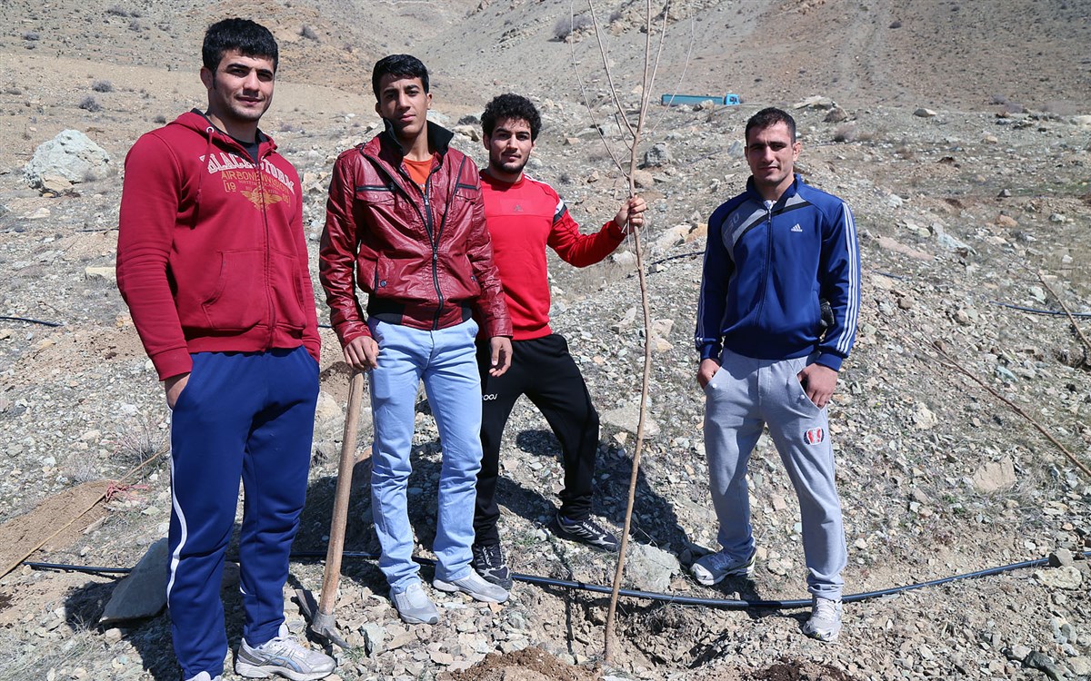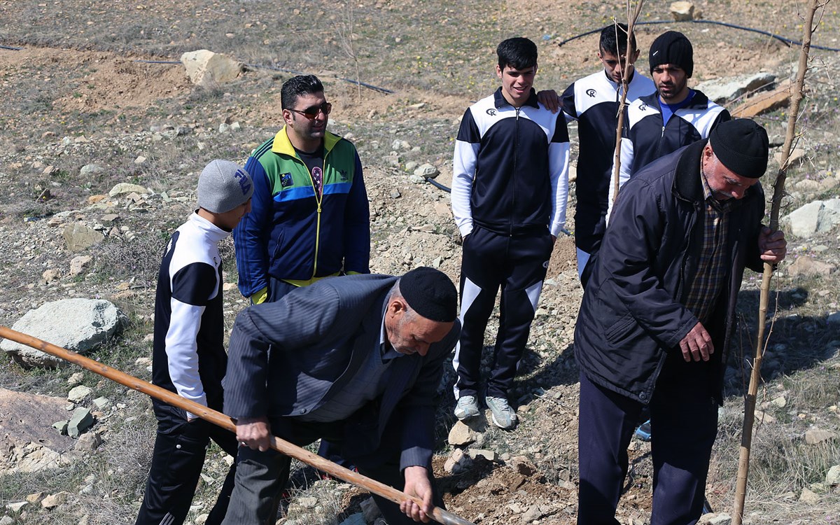 حضور کشتی گیران در مراسم روز درختکاری (گزارش تصویری)