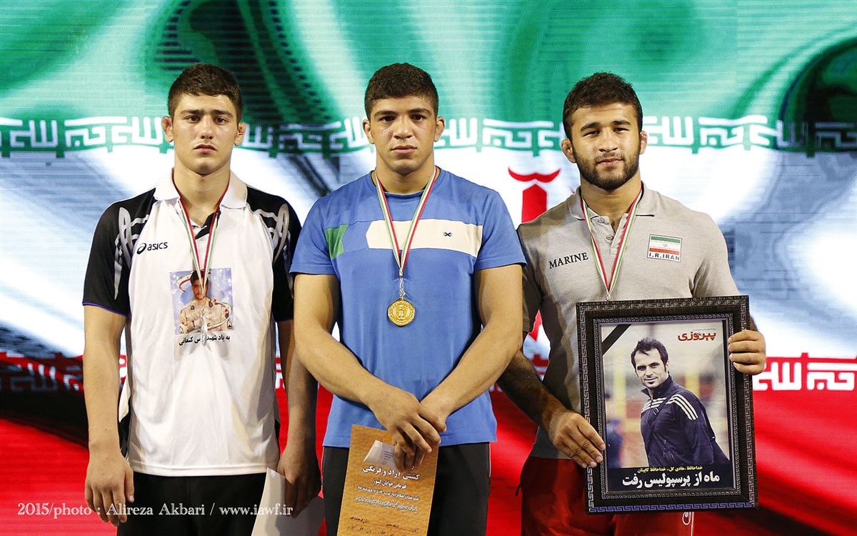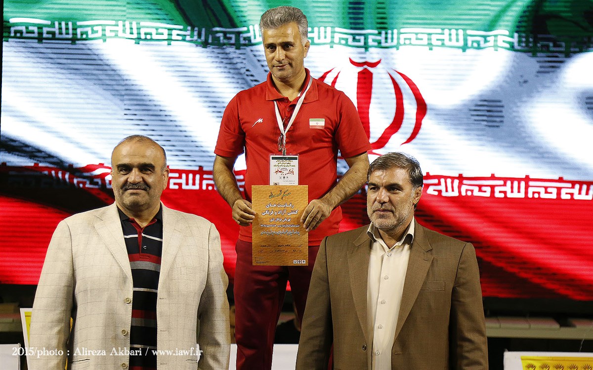 مراسم اهدای مدال و کاپ قهرمانی رقابت های کشتی آزاد