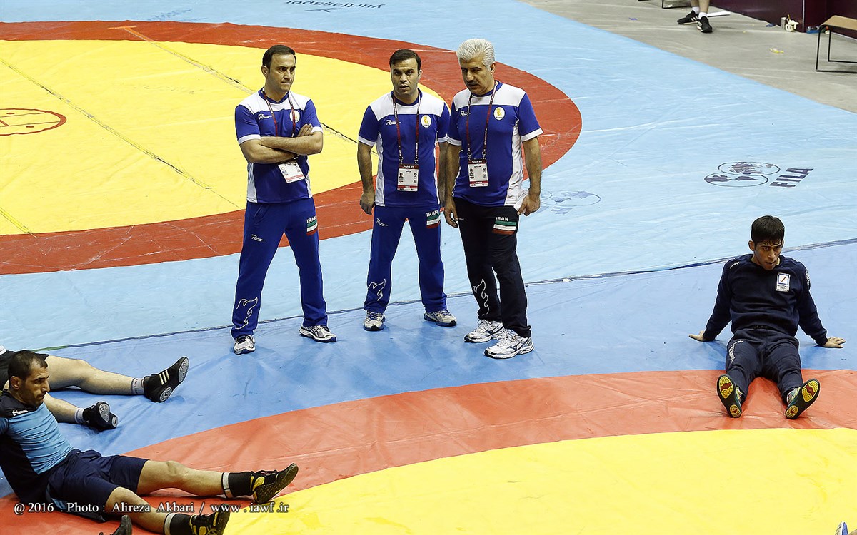 اولین تمرین تیم ملی کشتی آزاد در محل مسابقات