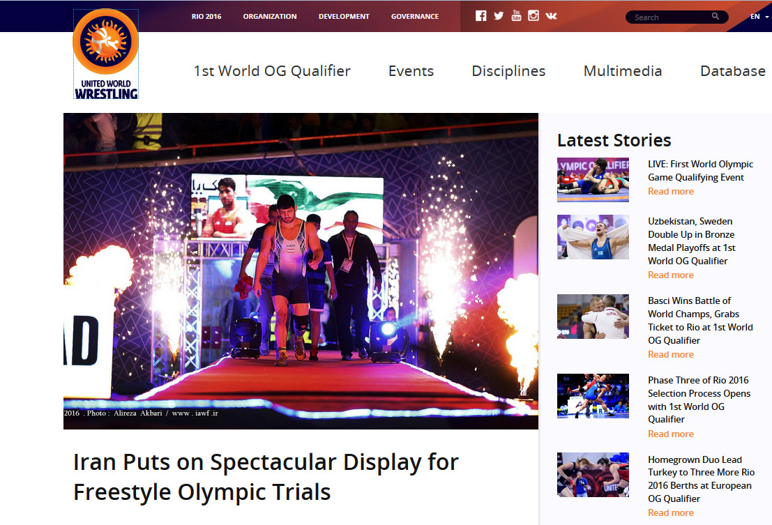 به گزارش روابط عمومی فدراسیون کشتی، پس از برگزاری رقابت های انتخابی تیم های ملی کشتی آزاد و فرنگی، برای حضور در المپیک 2016 برزیل که روز جمعه 27 فروردین ماه در سالن 12 هزار نفری آزادی تهران برگزار شد، سایت اتحادیه جهانی به پوشش خبری این رقابت ها پرداخت.