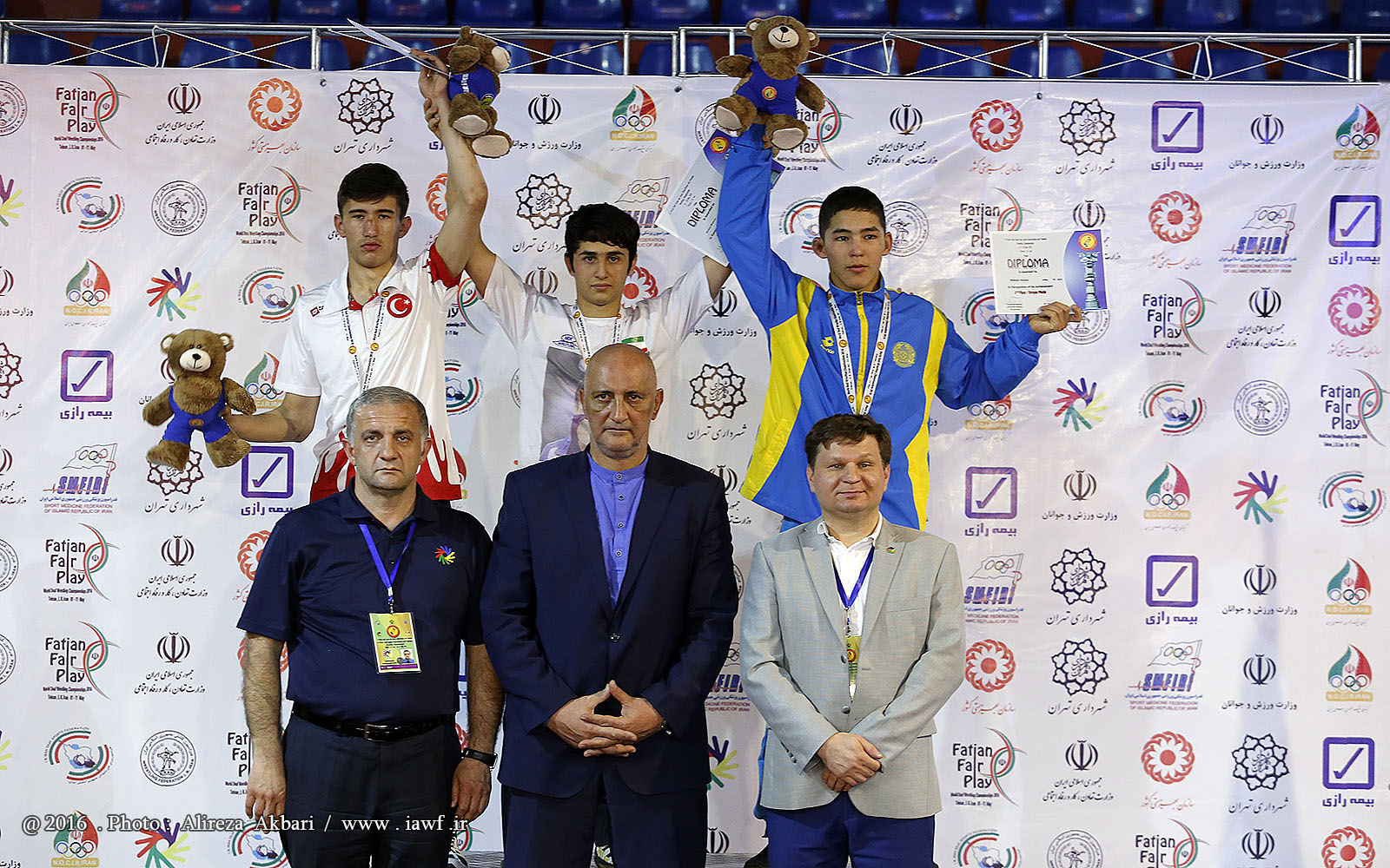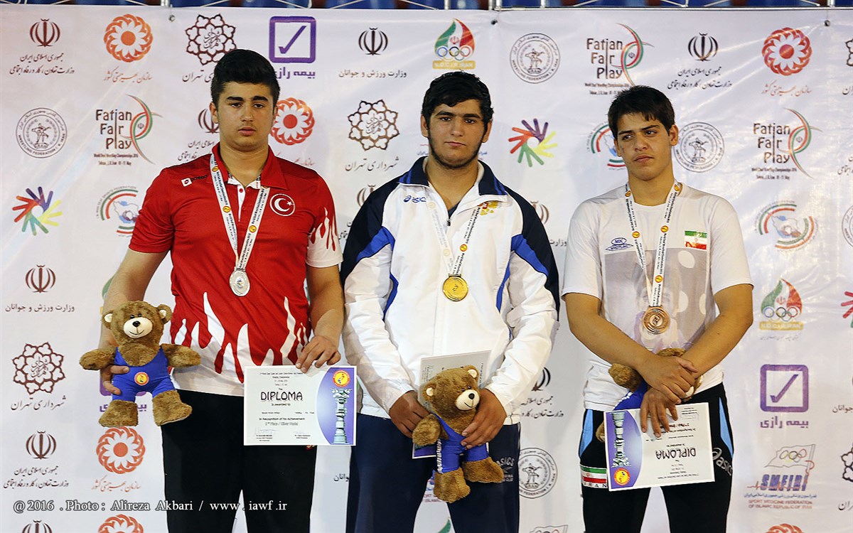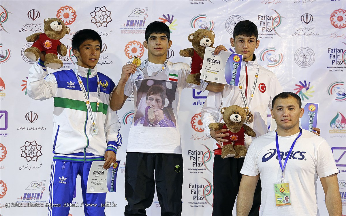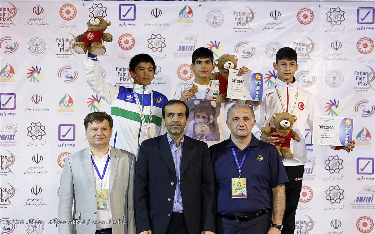 مراسم اهدای مدال و کاپ قهرمانی رقابت های کشتی آزاد نوجوانان
