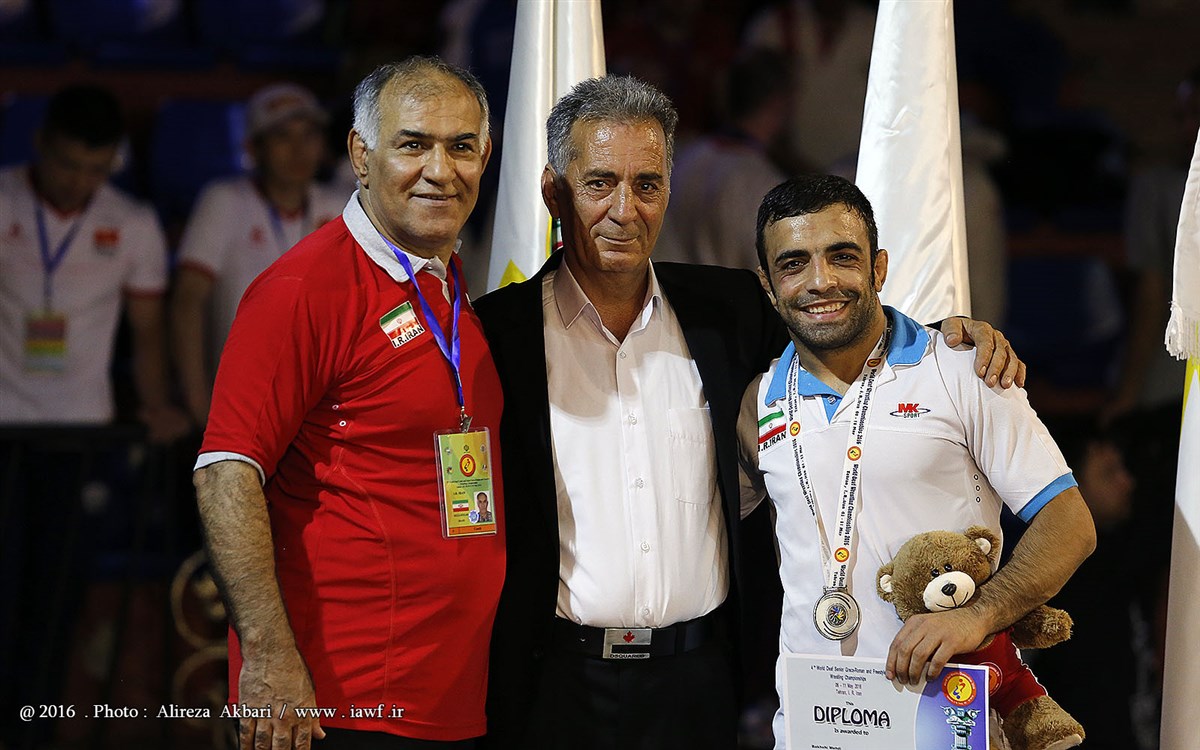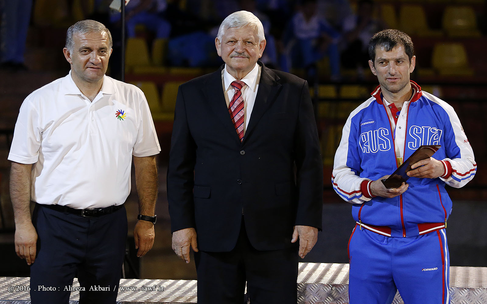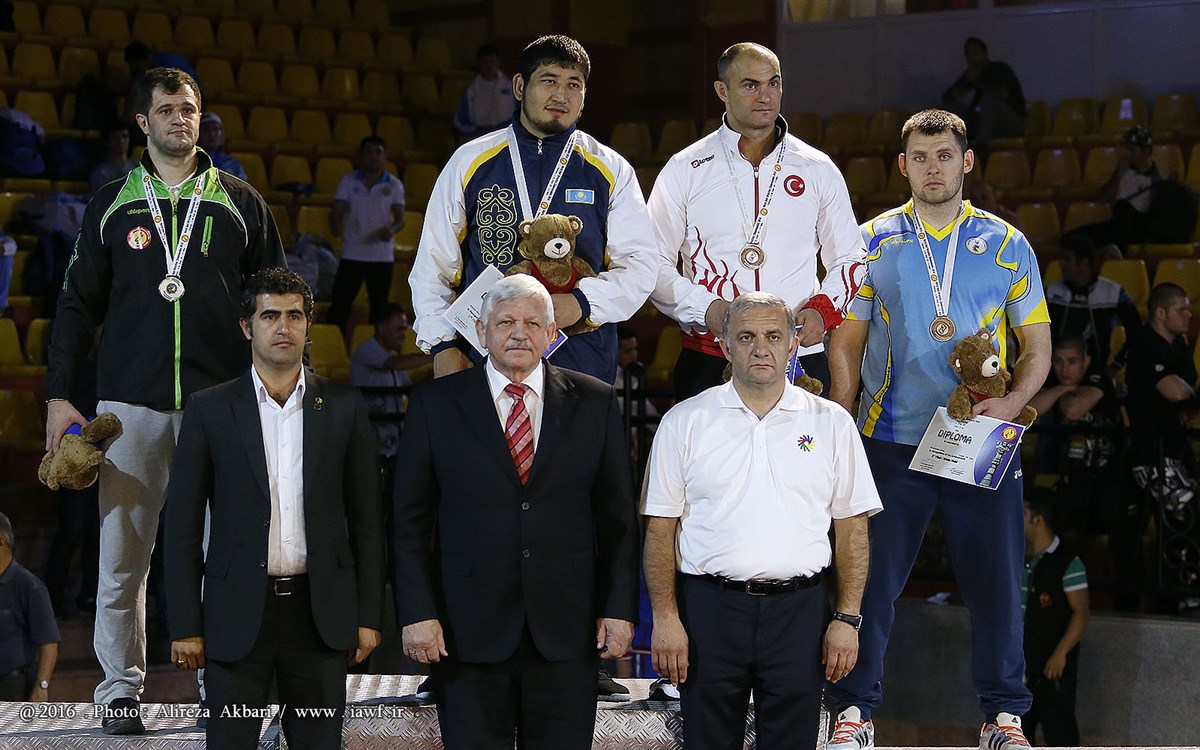 اهدای کاپ و مدال قهرمانی مسابقات کشتی آزاد