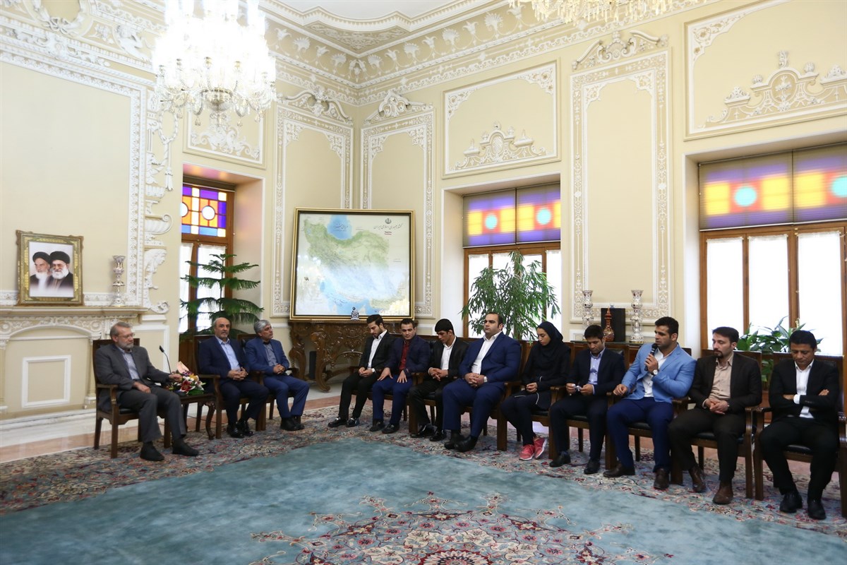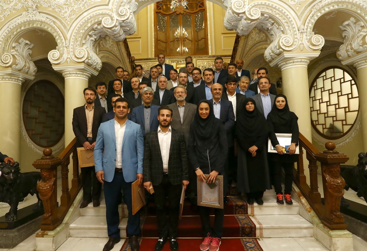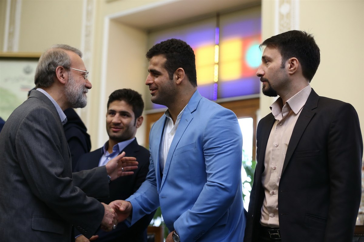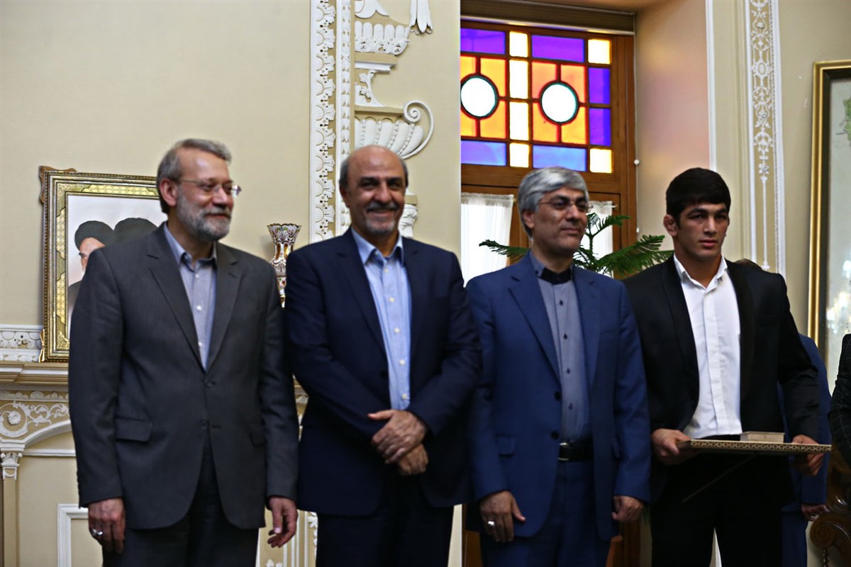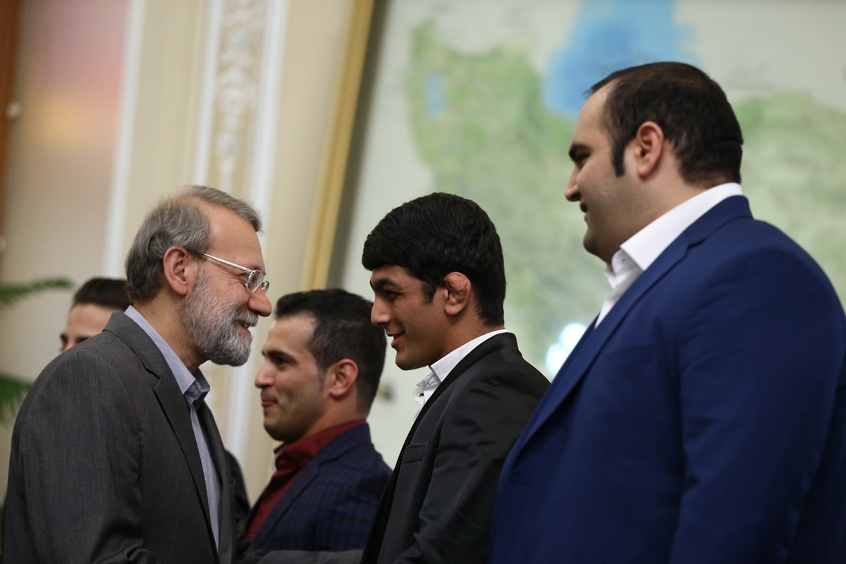 دیدار مدال آوران کشتی در المپیک با رئیس مجلس شورای اسلامی (گزارش تصویری)