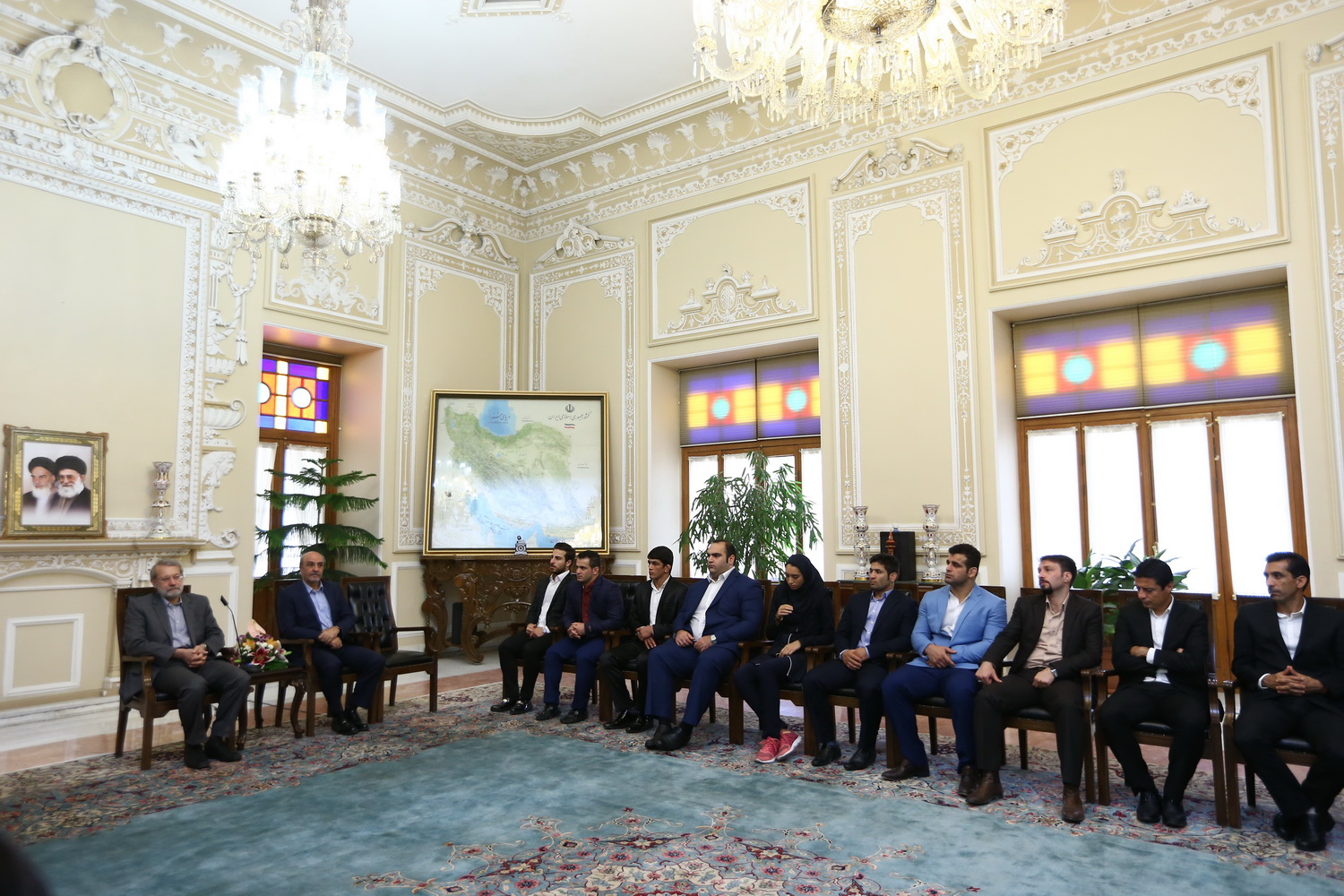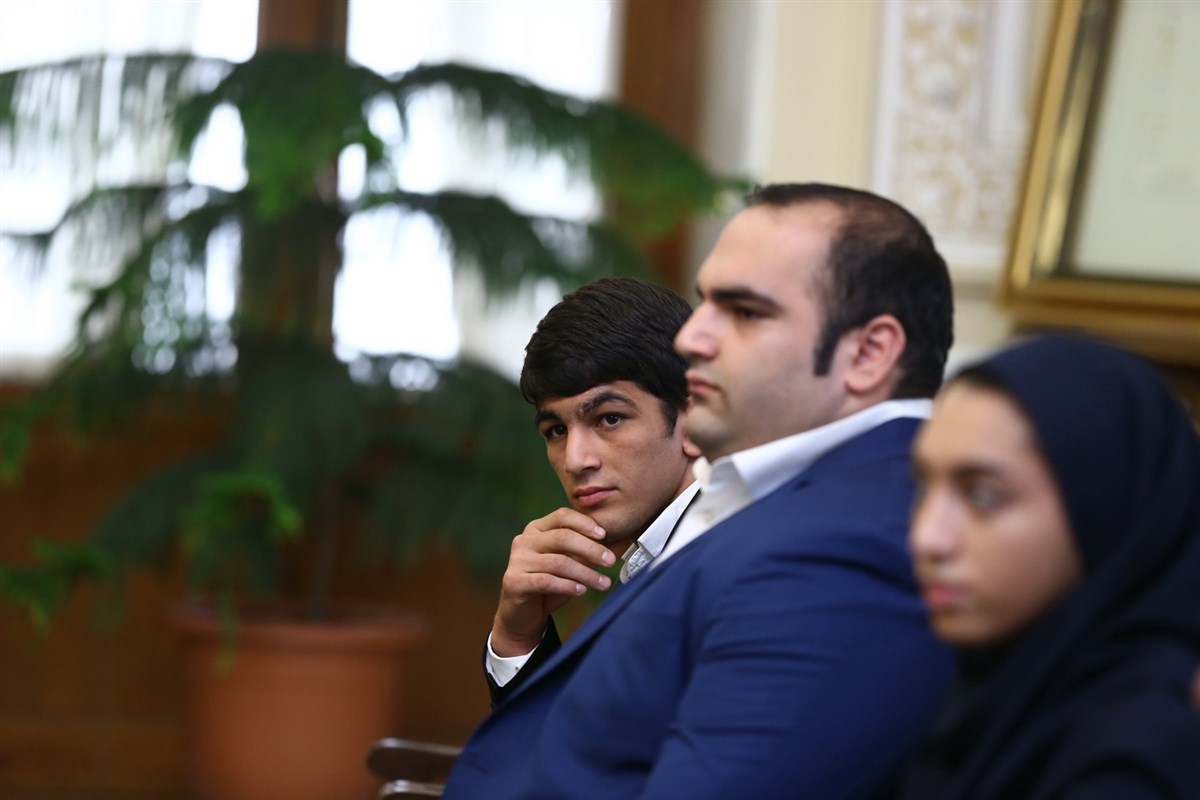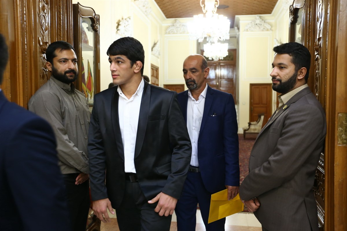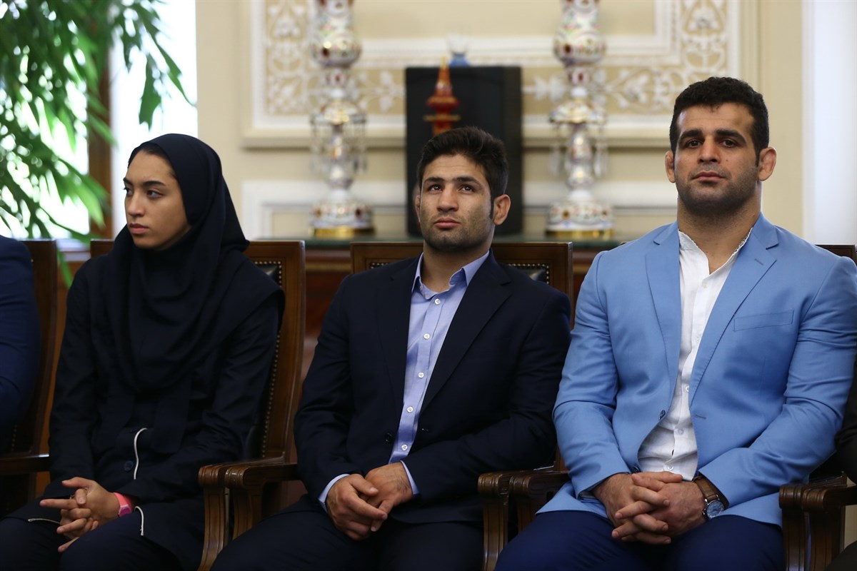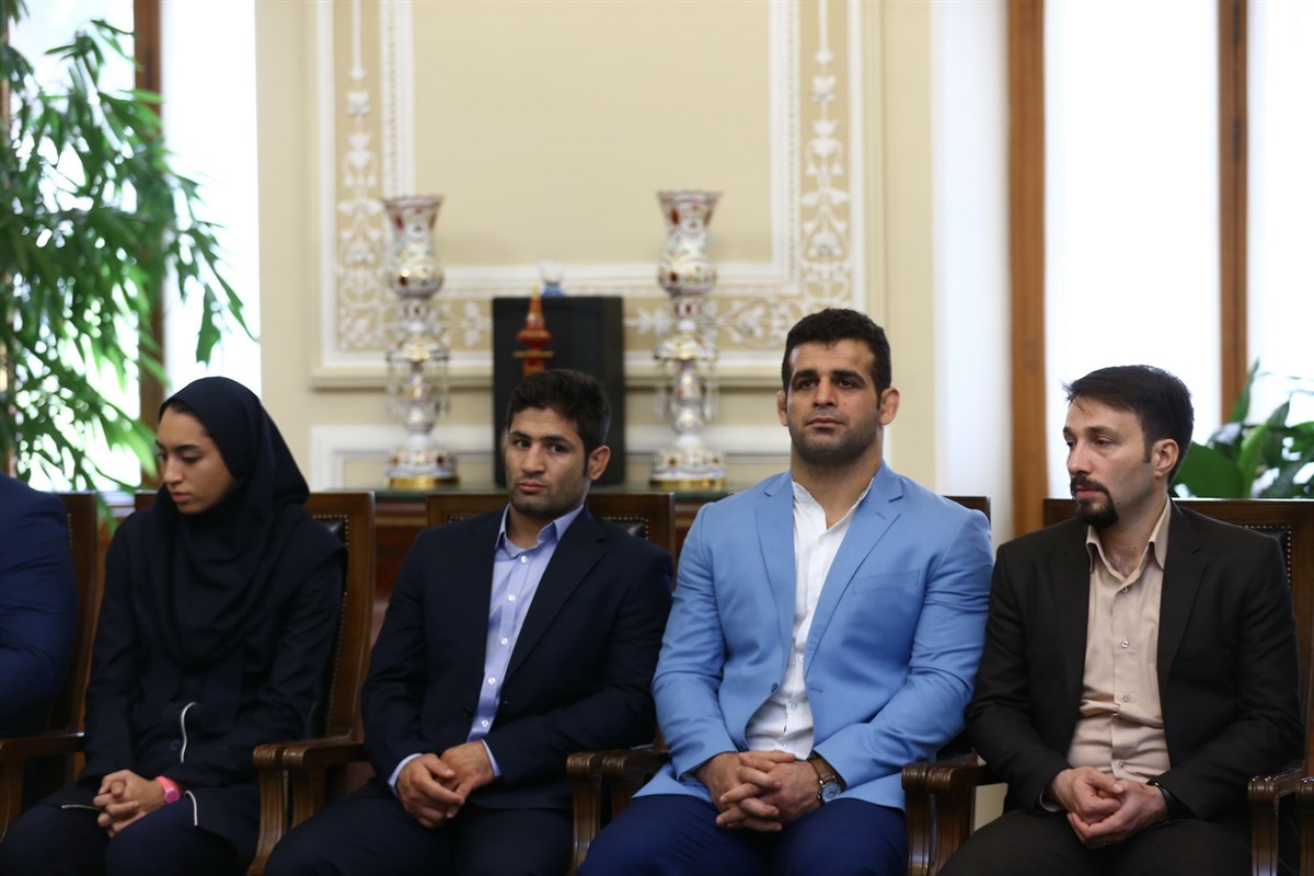 دیدار مدال آوران کشتی در المپیک با رئیس مجلس شورای اسلامی (گزارش تصویری)