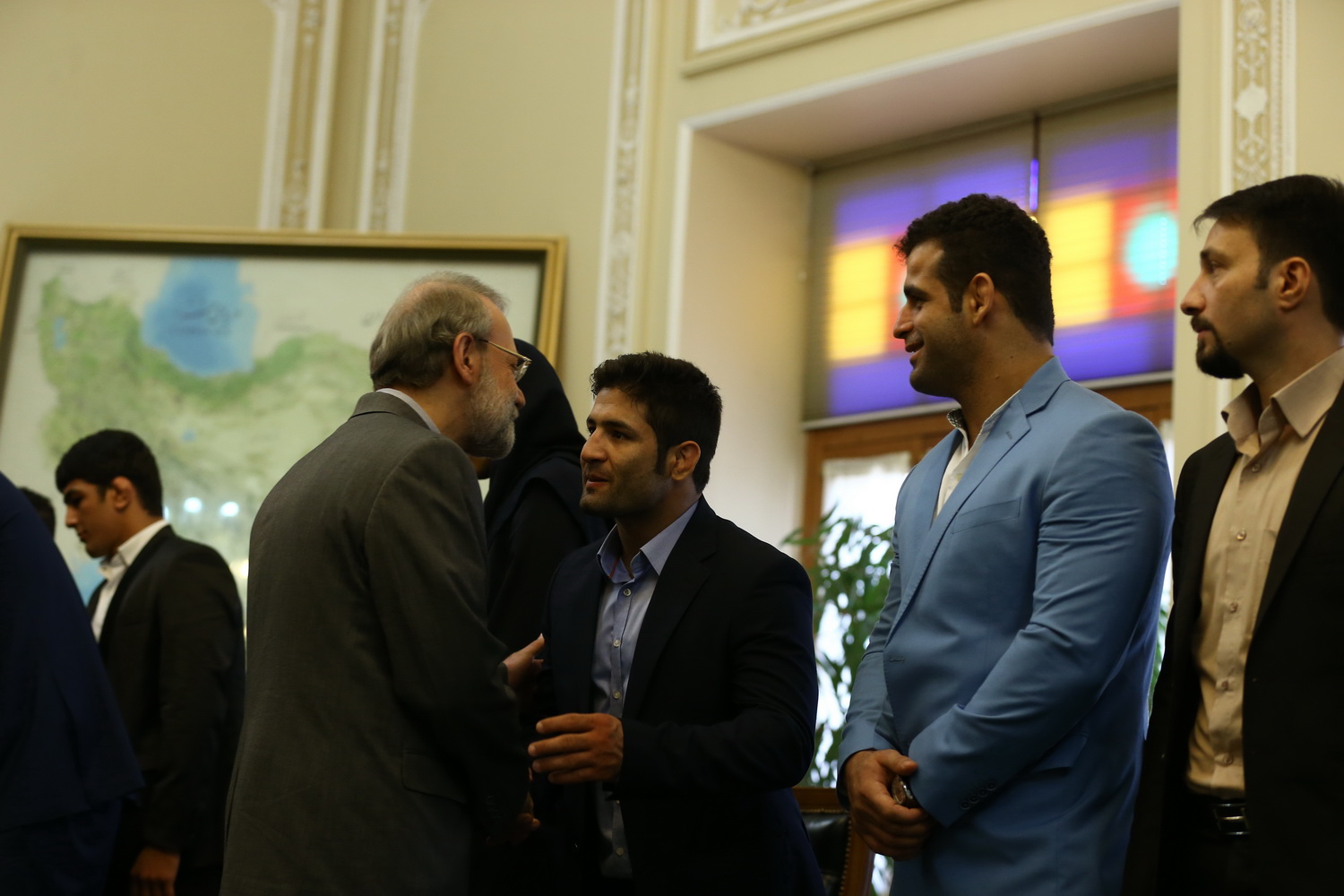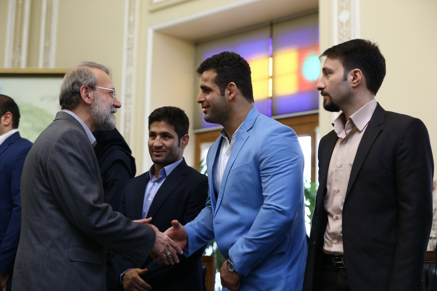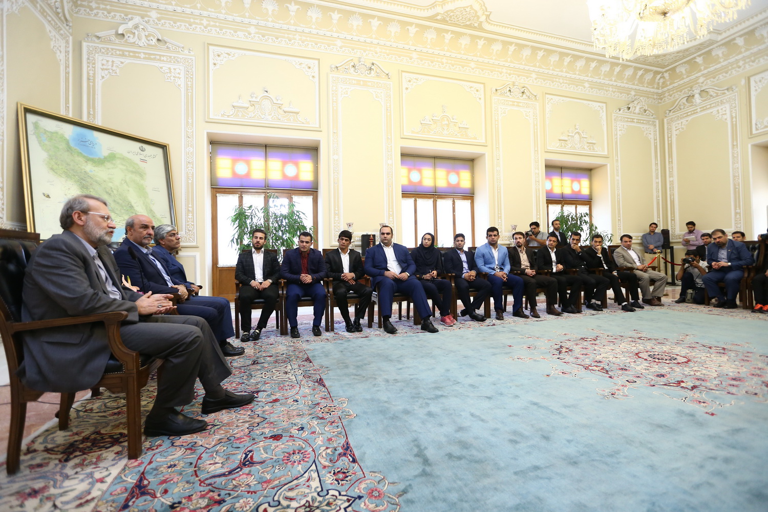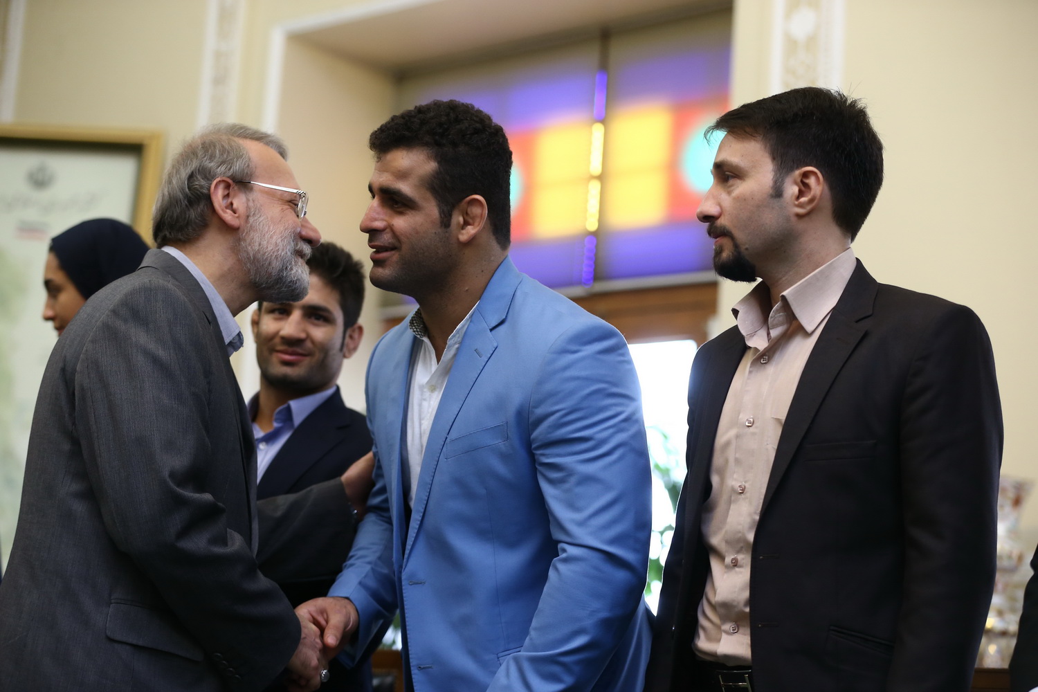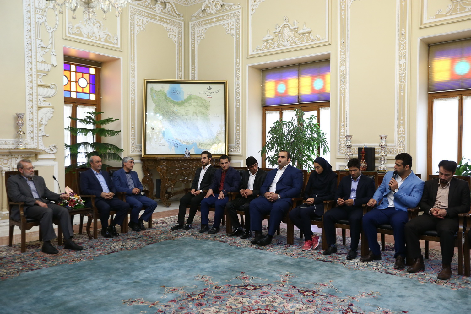 دیدار مدال آوران کشتی در المپیک با رئیس مجلس شورای اسلامی (گزارش تصویری)