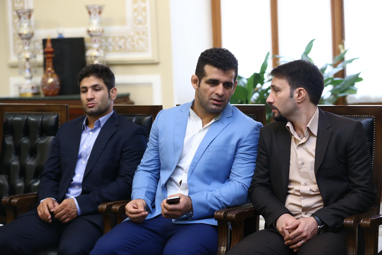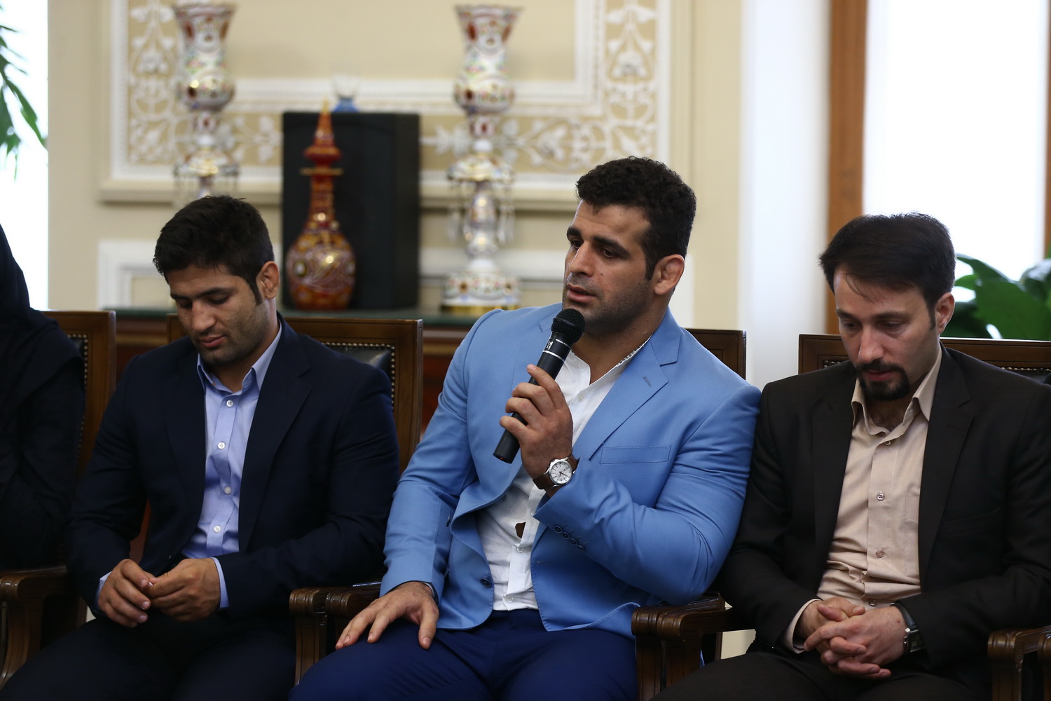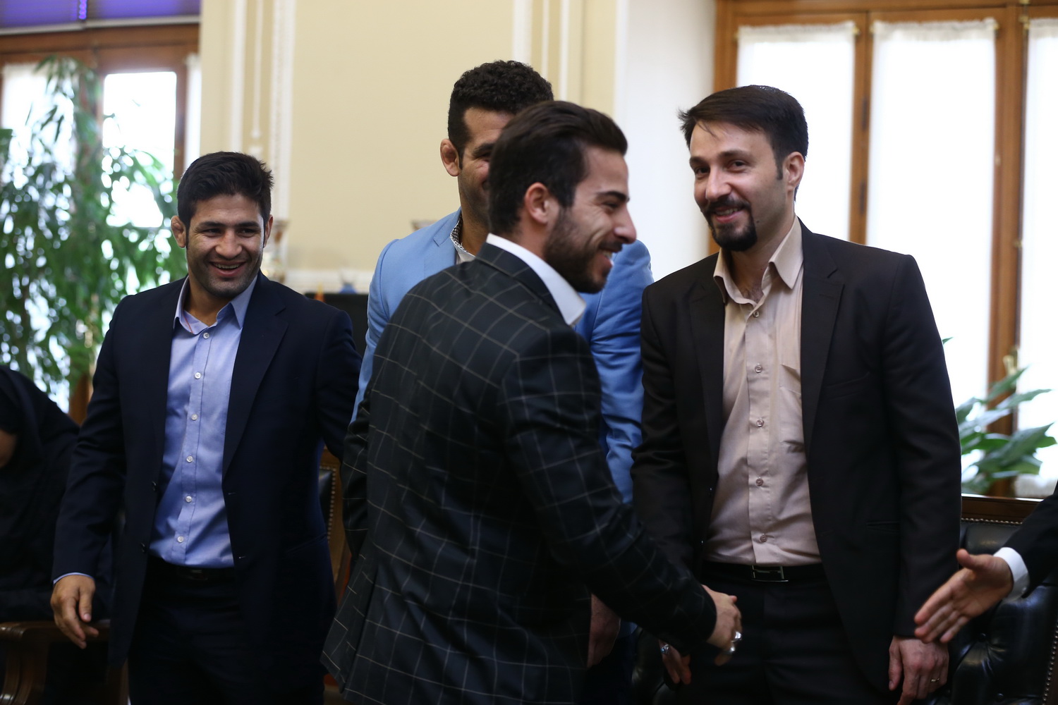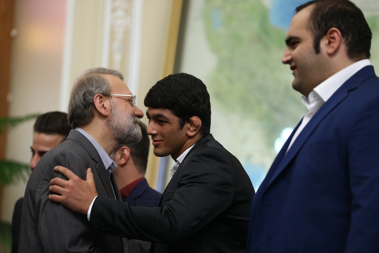 دیدار مدال آوران کشتی در المپیک با رئیس مجلس شورای اسلامی (گزارش تصویری)