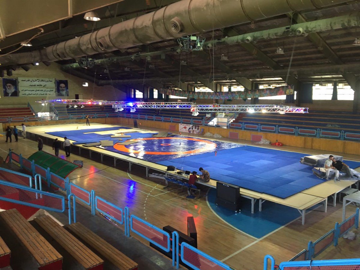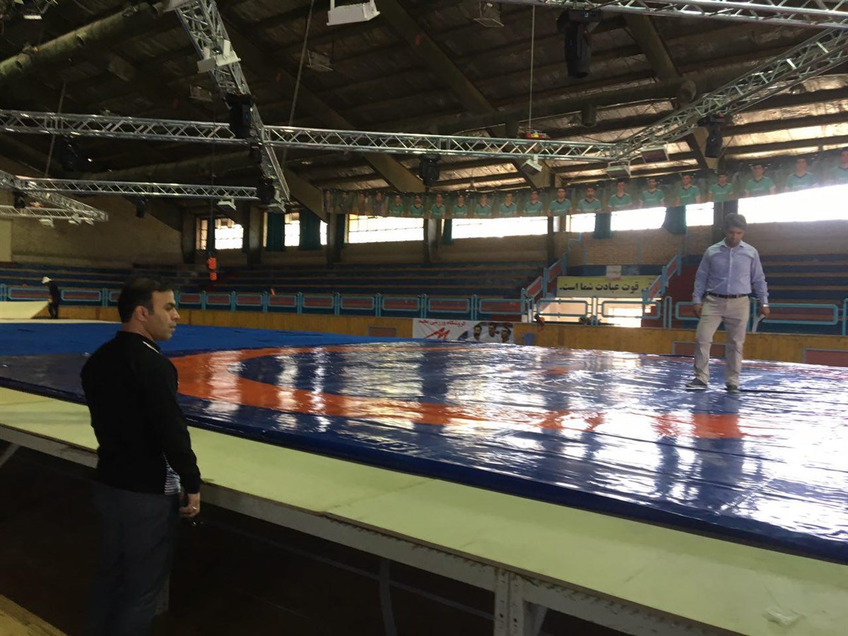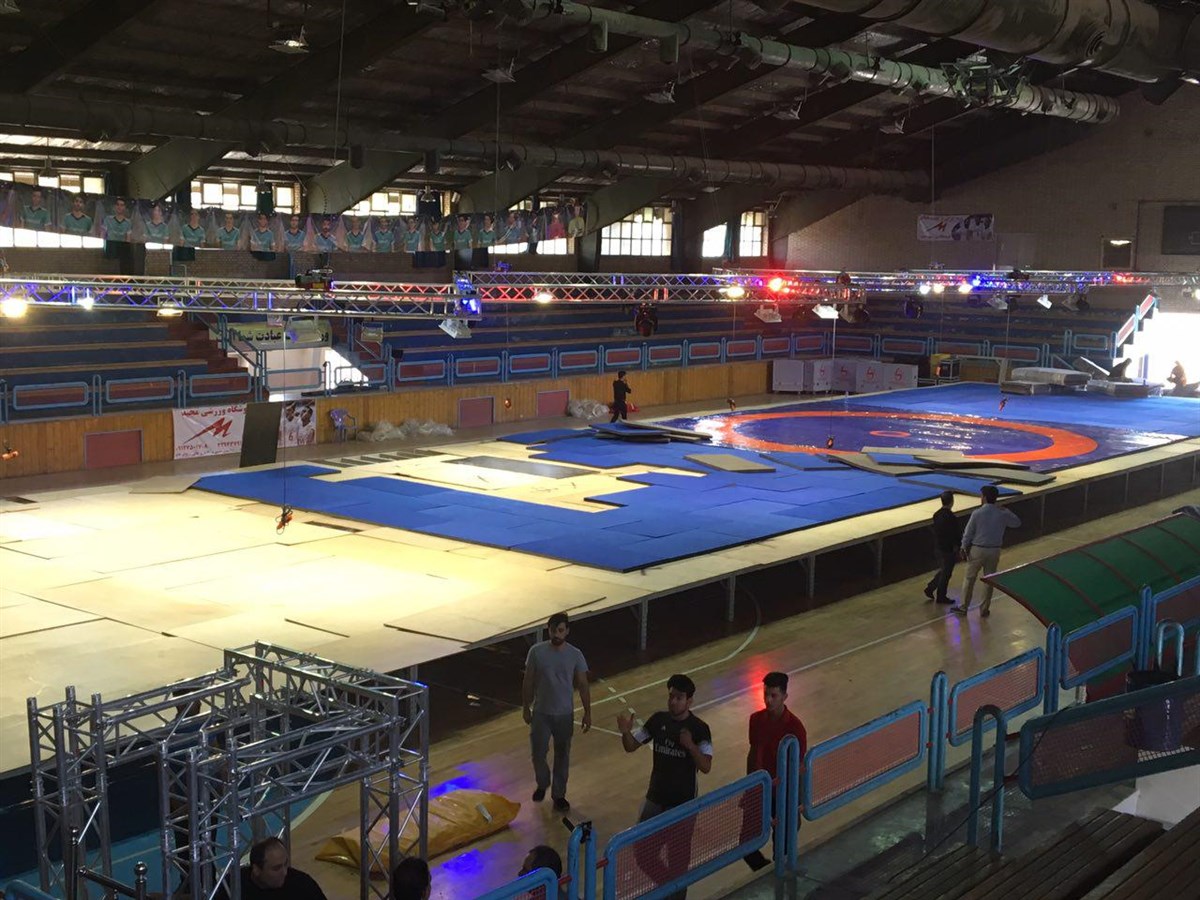 روند آماده سازی سالن رقابت های کشتی فرنگی جام یادگار امام (ره) (گزارش تصویری)