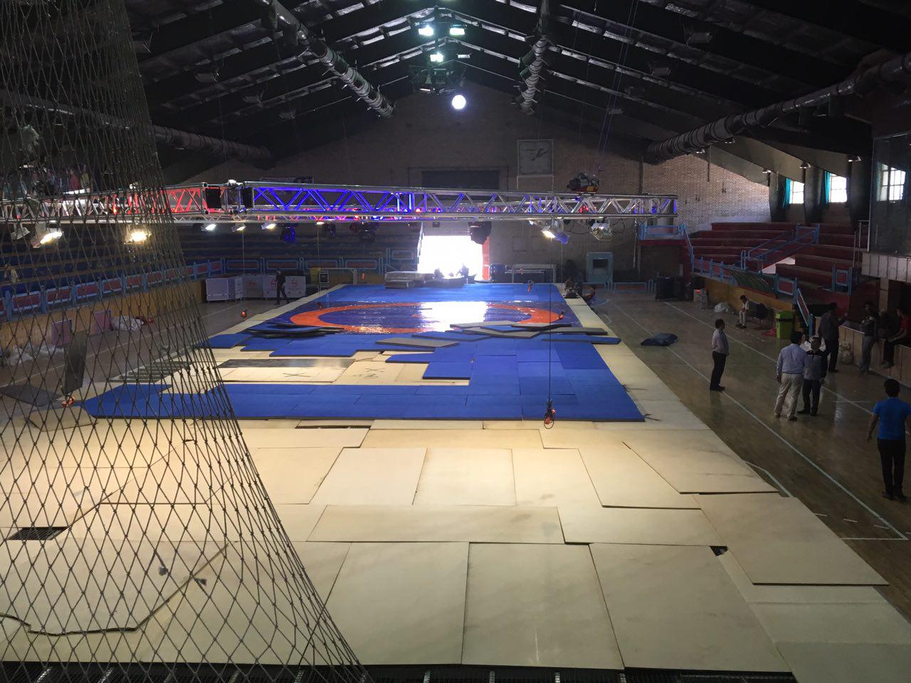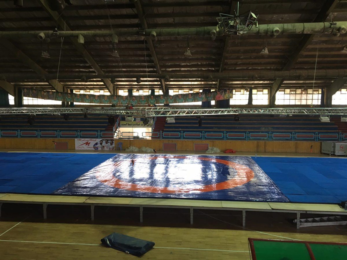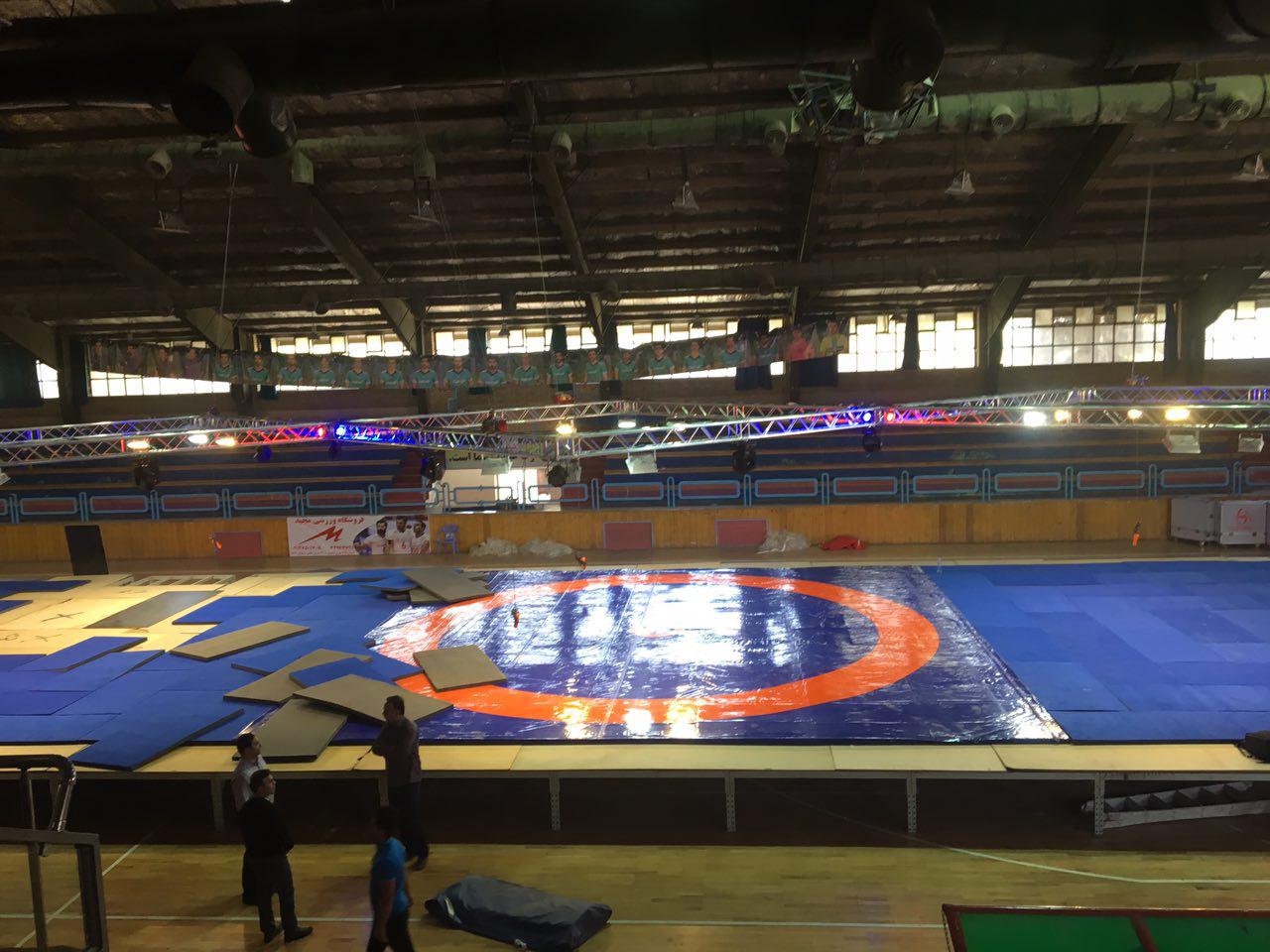 روند آماده سازی سالن رقابت های کشتی فرنگی جام یادگار امام (ره) (گزارش تصویری)