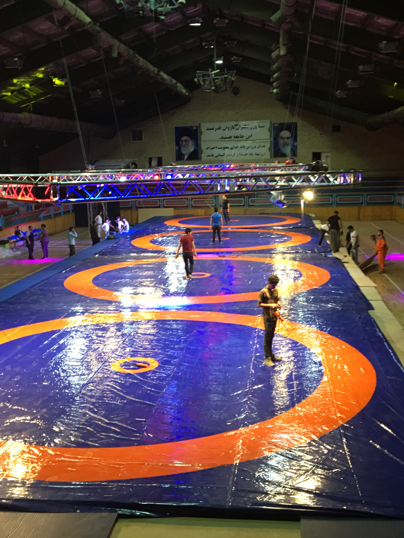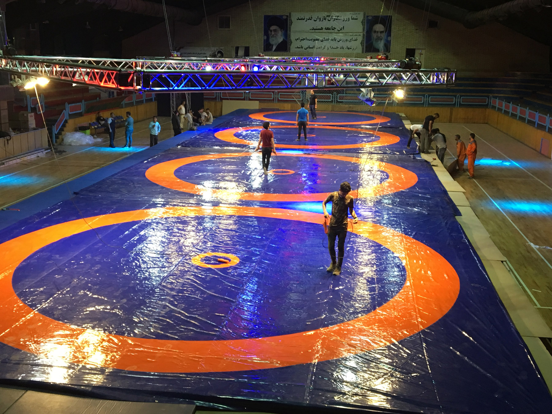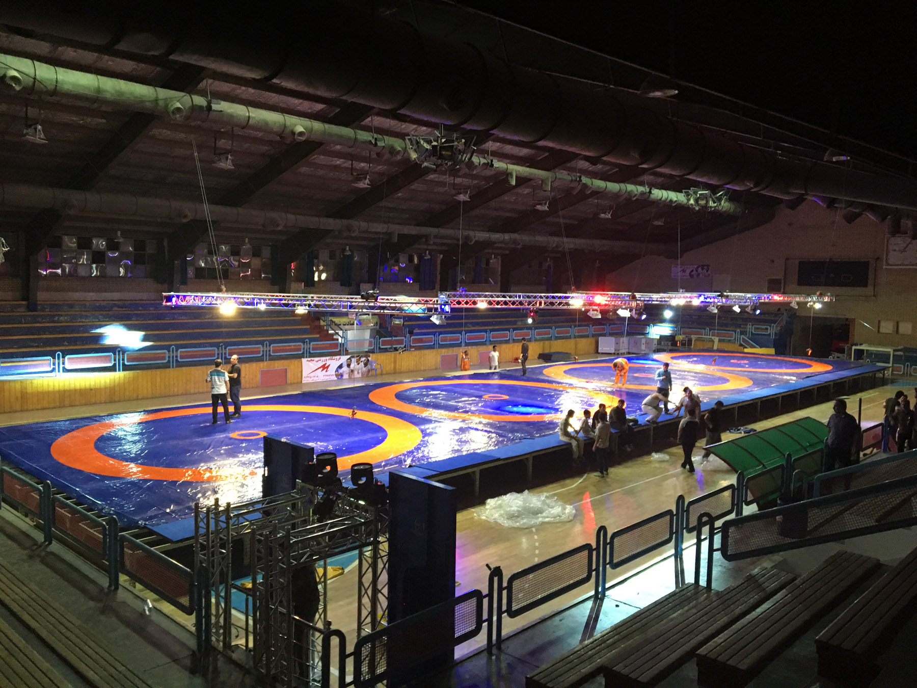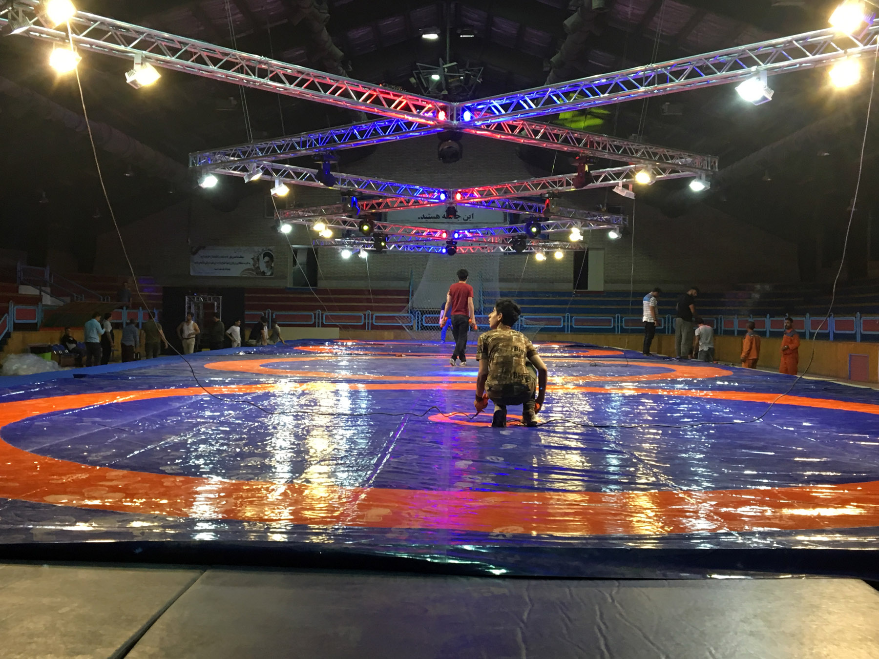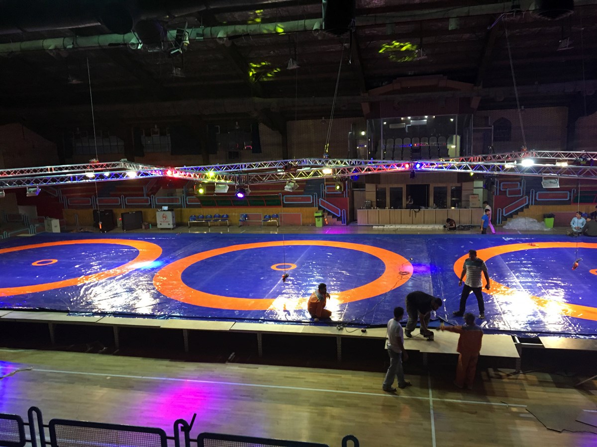 آماده سازی سالن رقابت های کشتی فرنگی جام یادگار امام (ره) (گزارش تصویری)