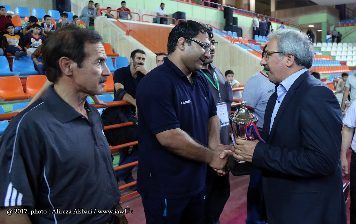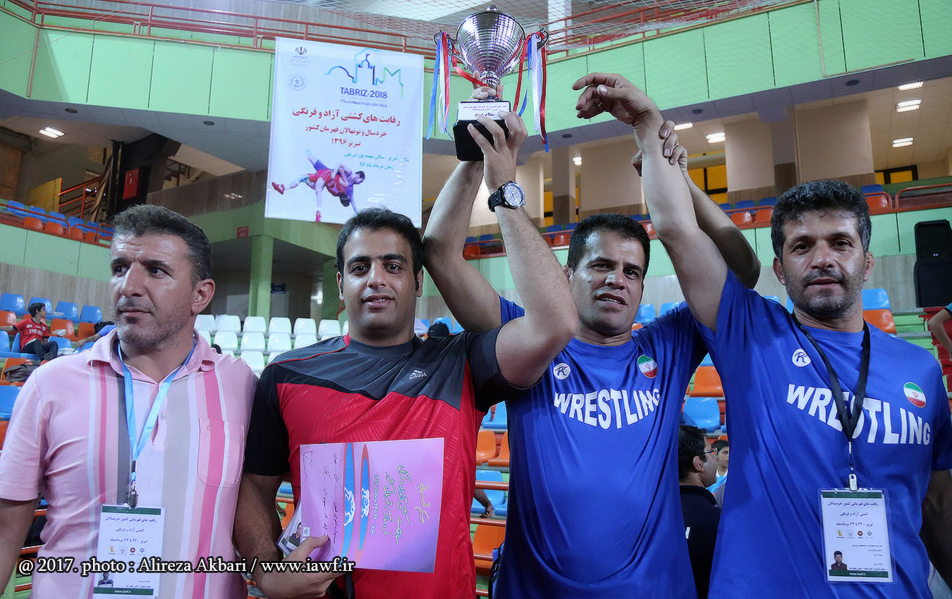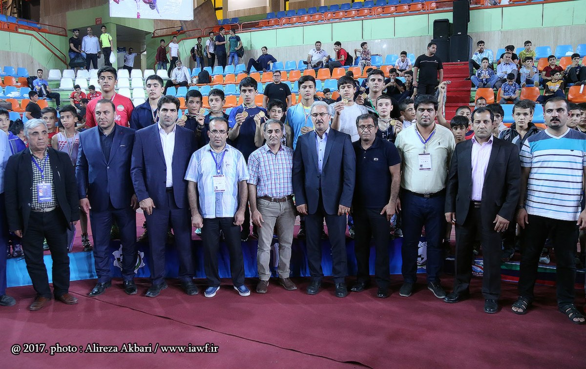 مراسم اهدای کاپ و مدال قهرمانی مسابقات کشتی آزاد