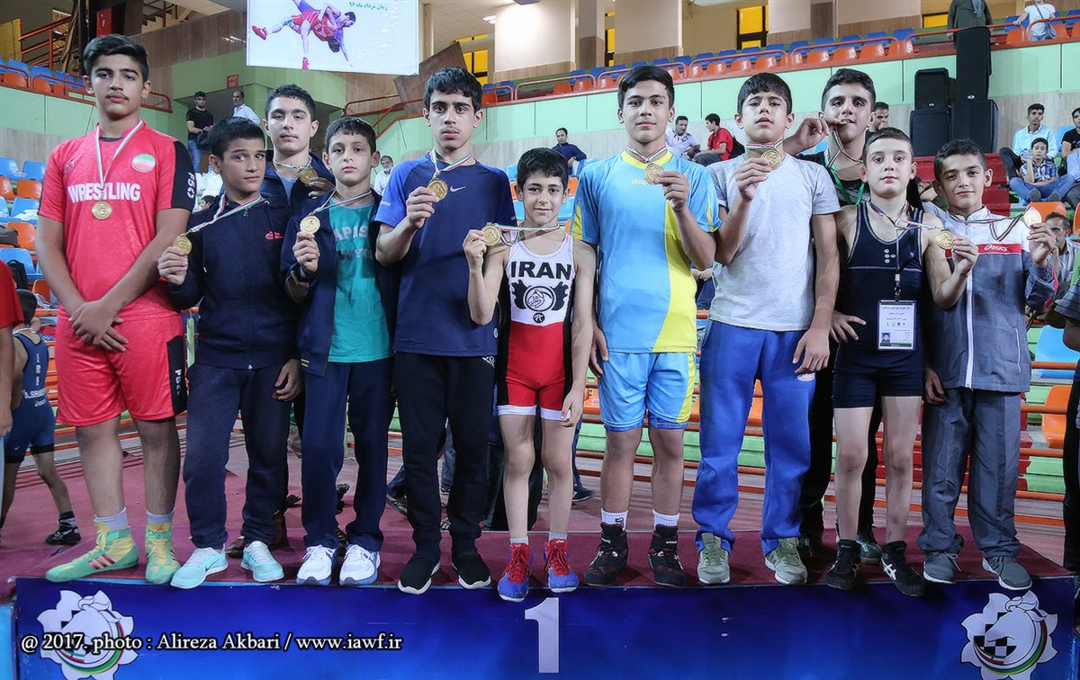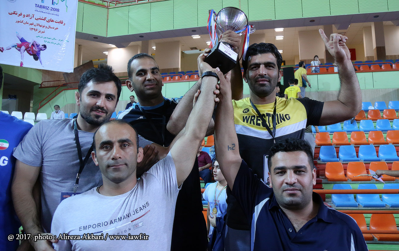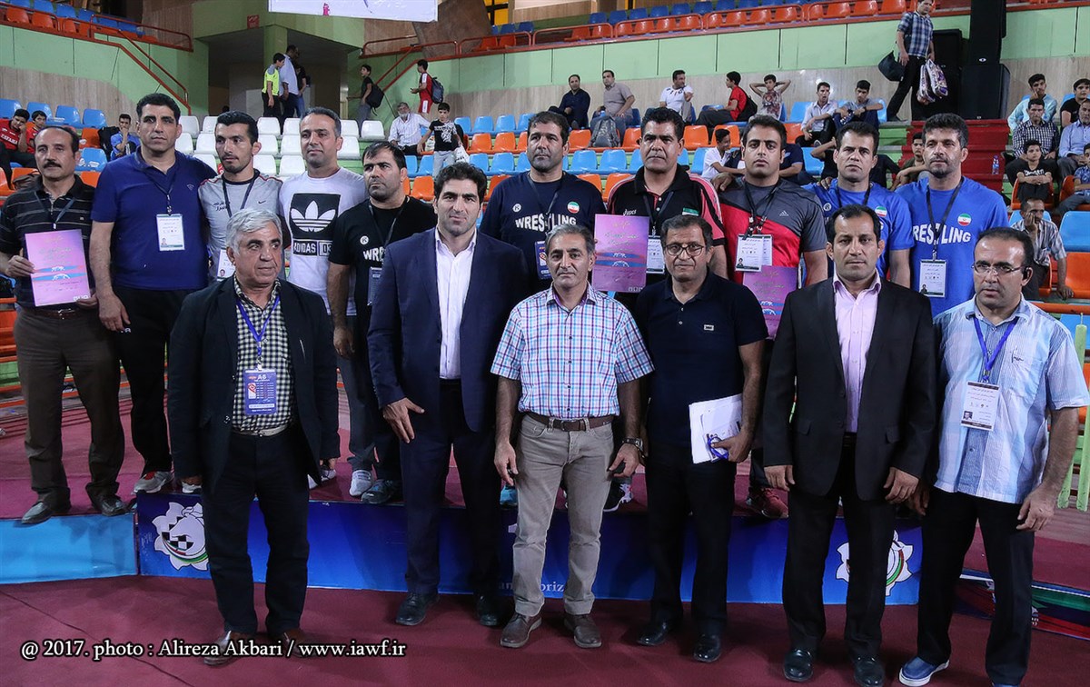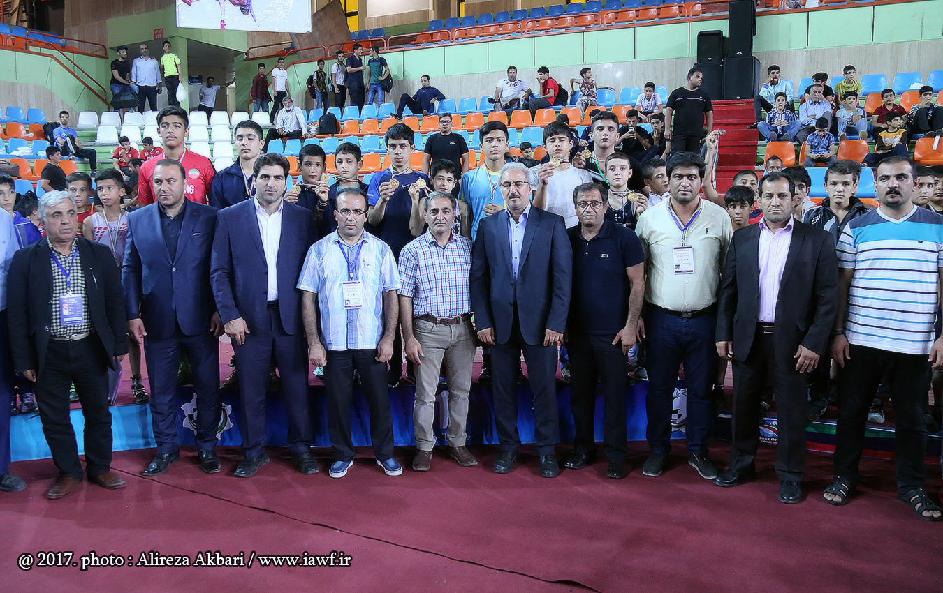 مراسم اهدای کاپ و مدال قهرمانی مسابقات کشتی آزاد