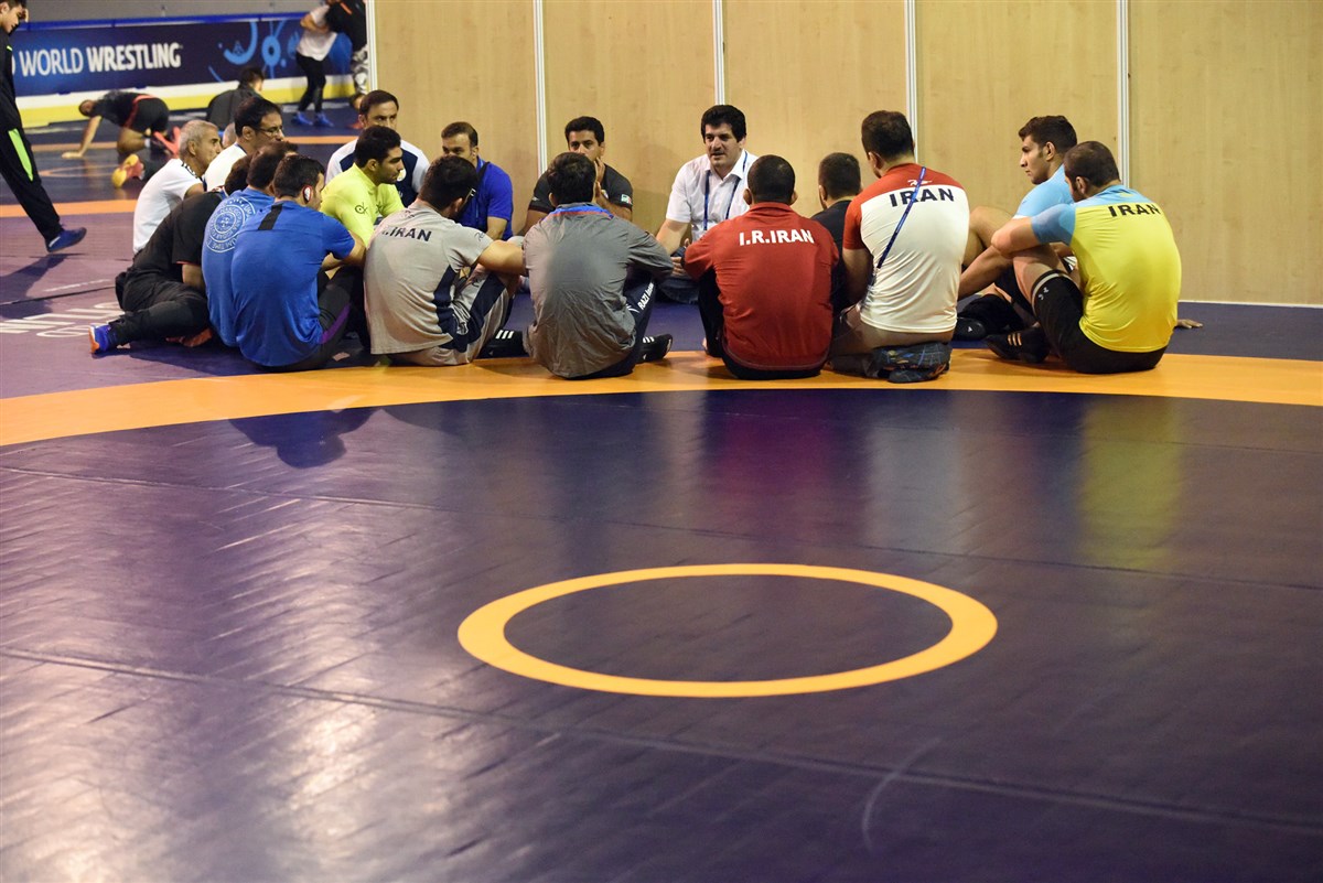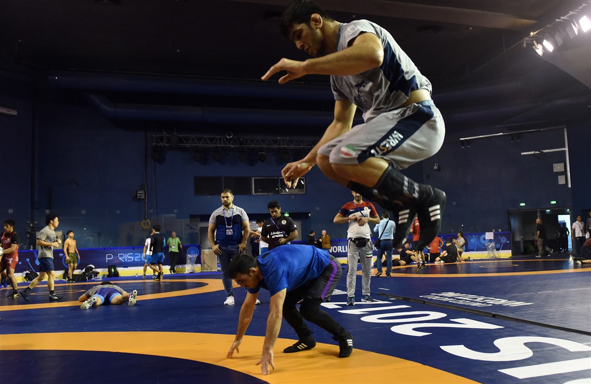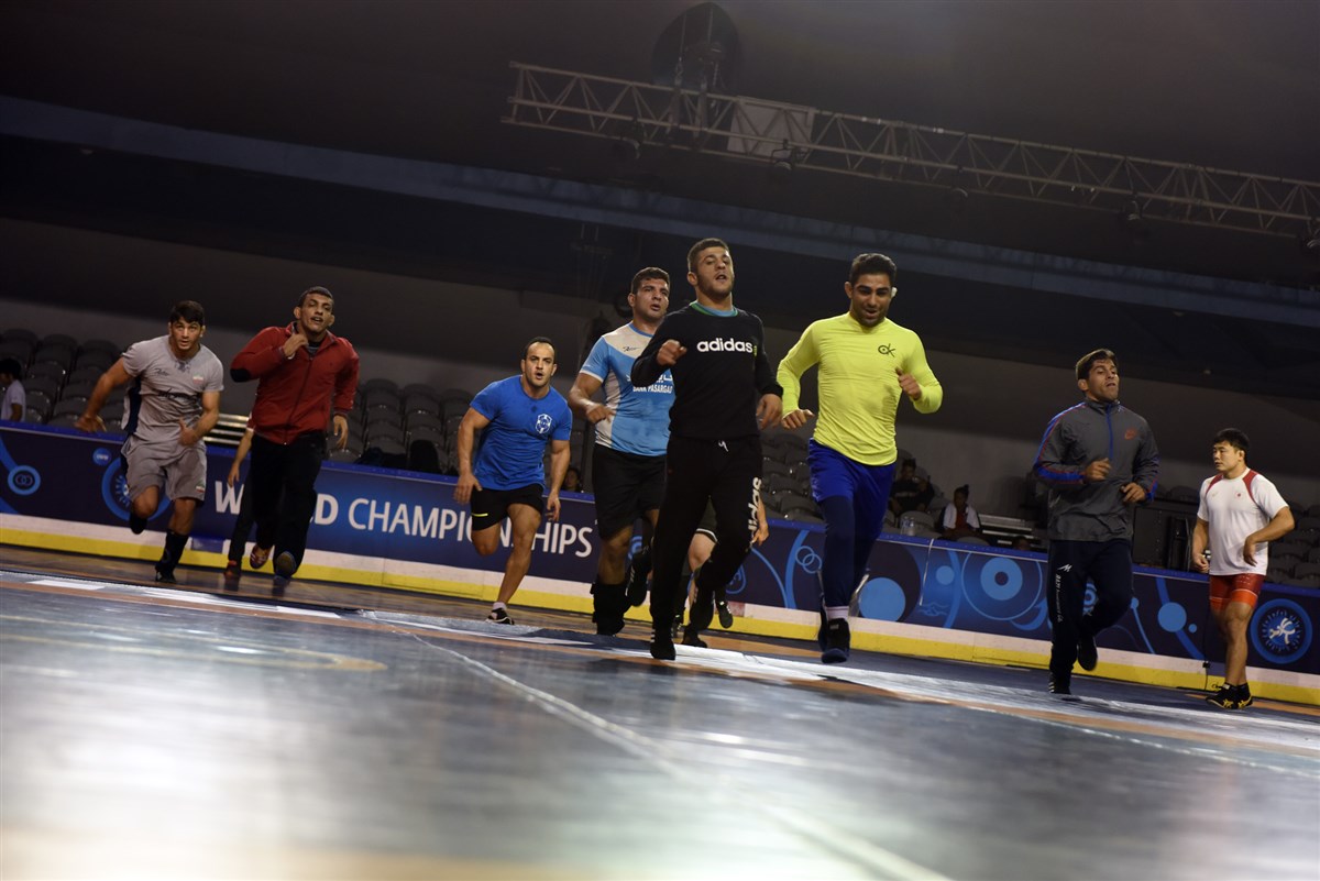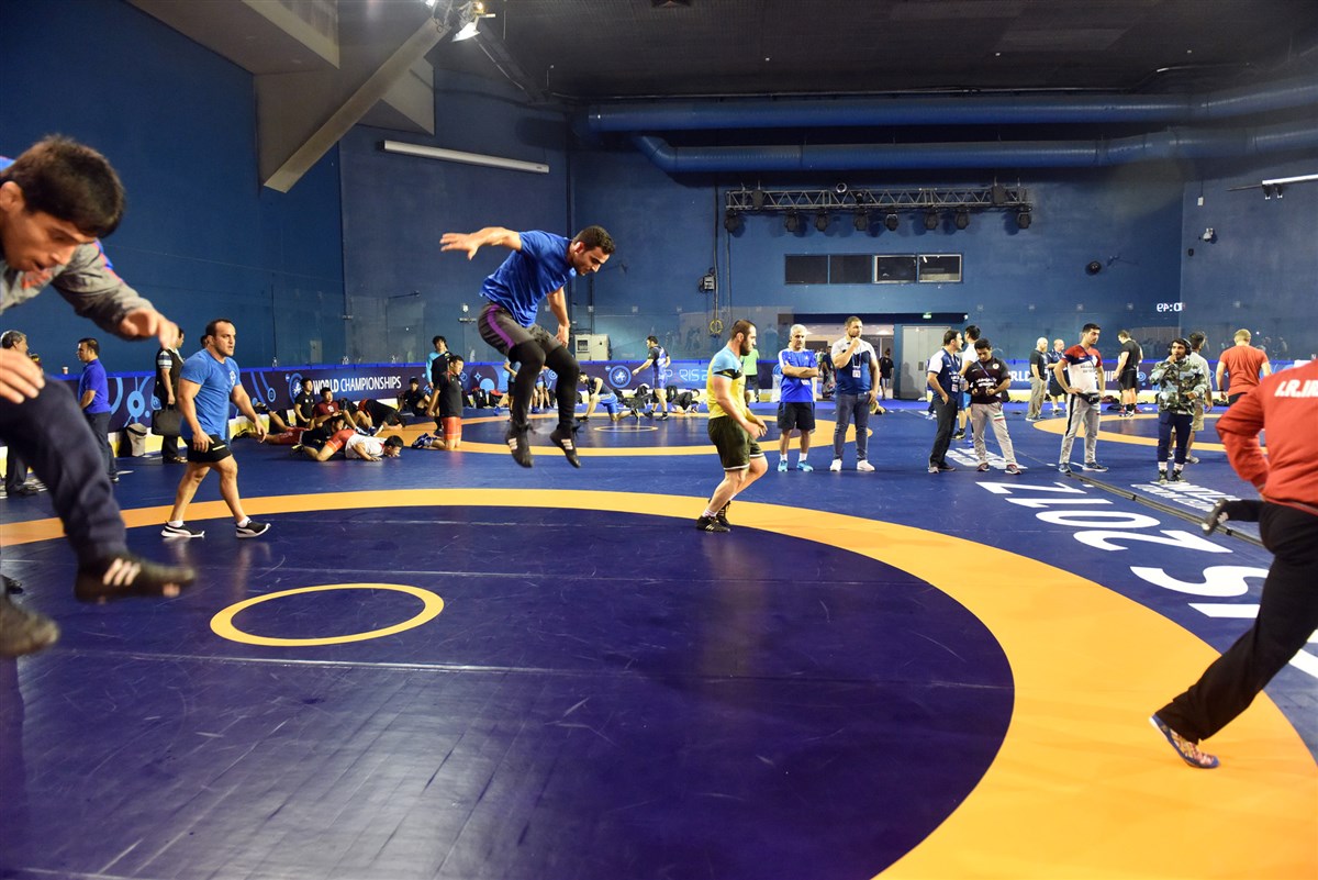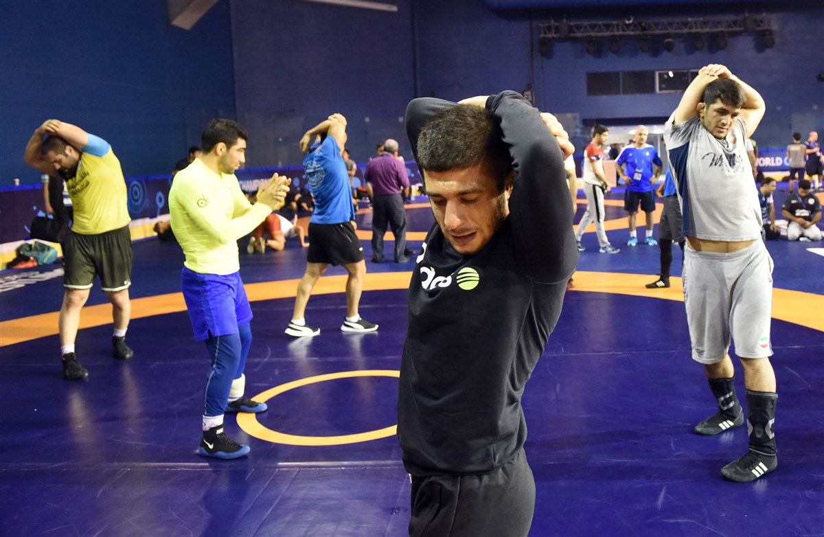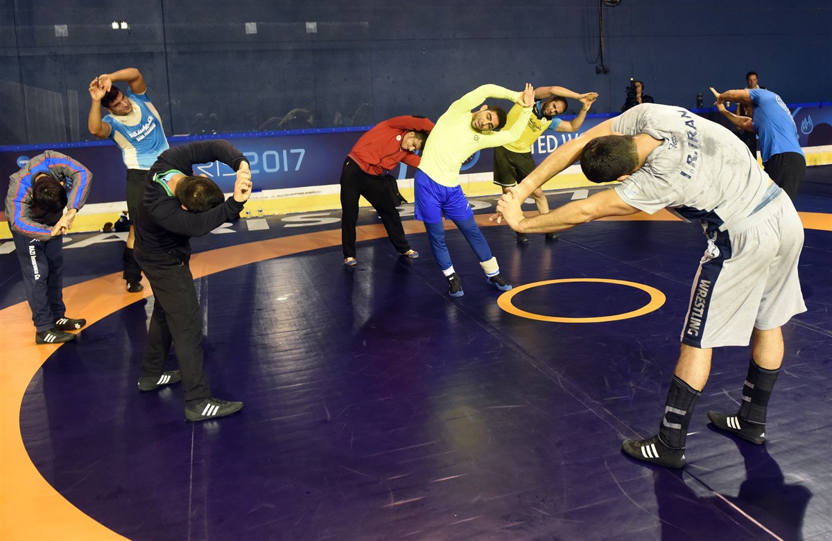 تمرین آزادکاران در محل برگزاری مسابقات