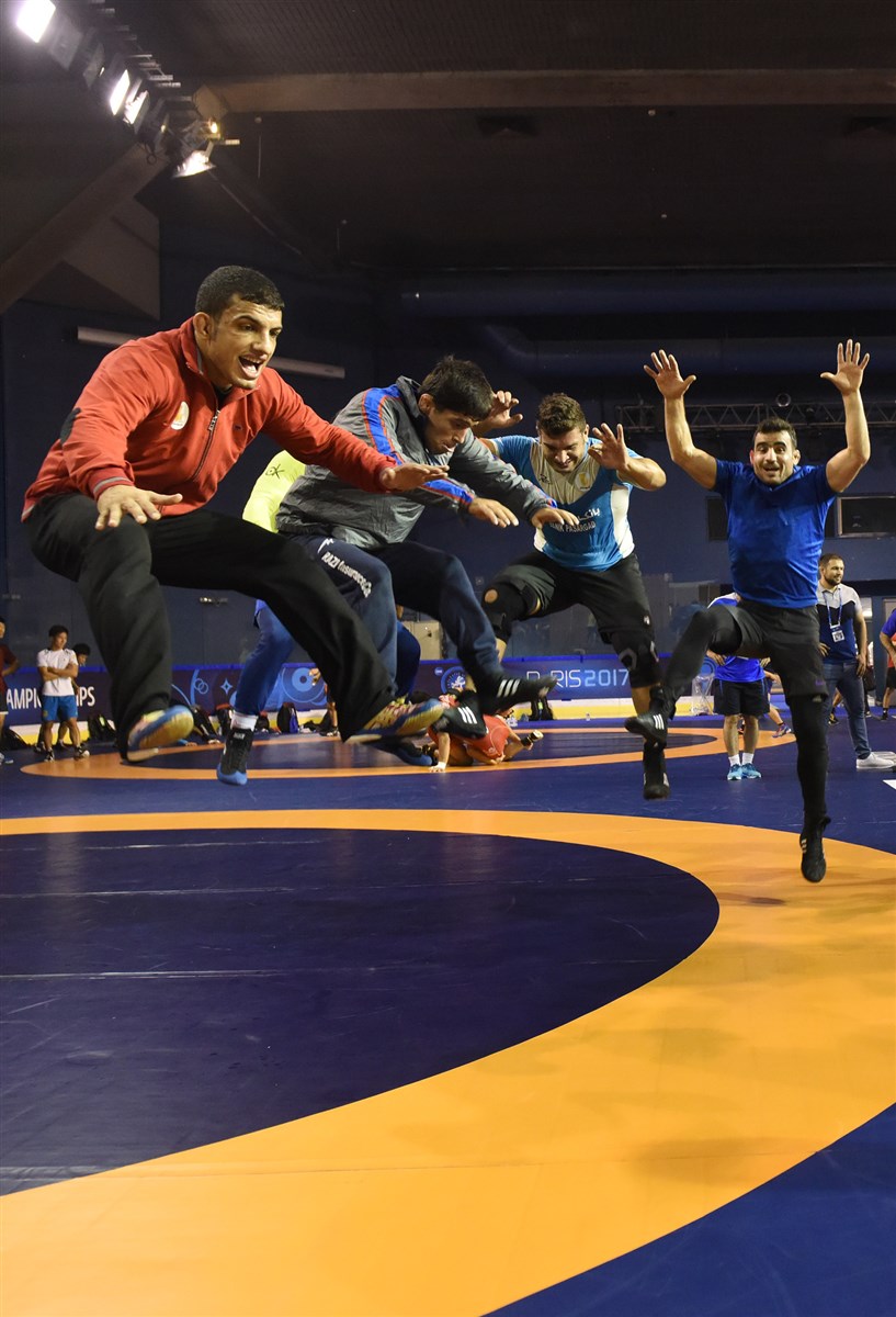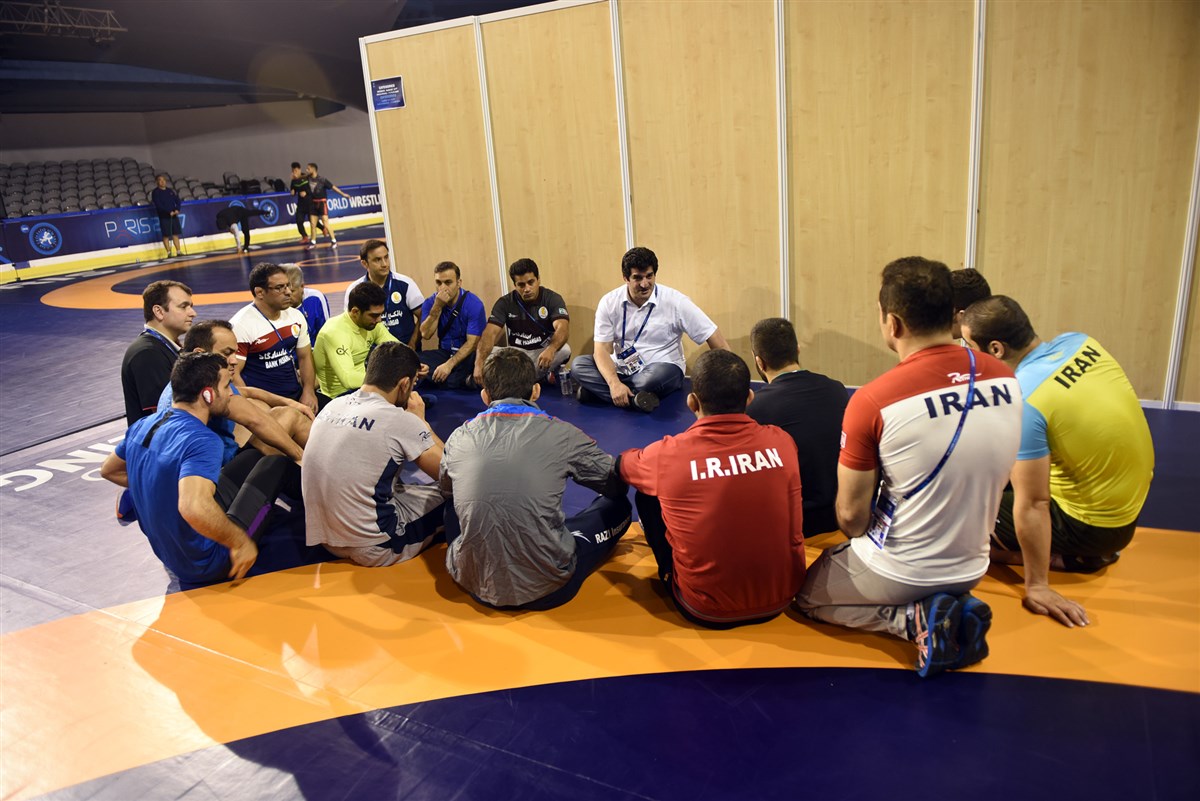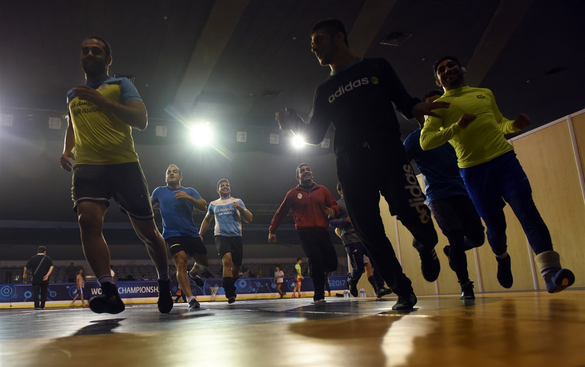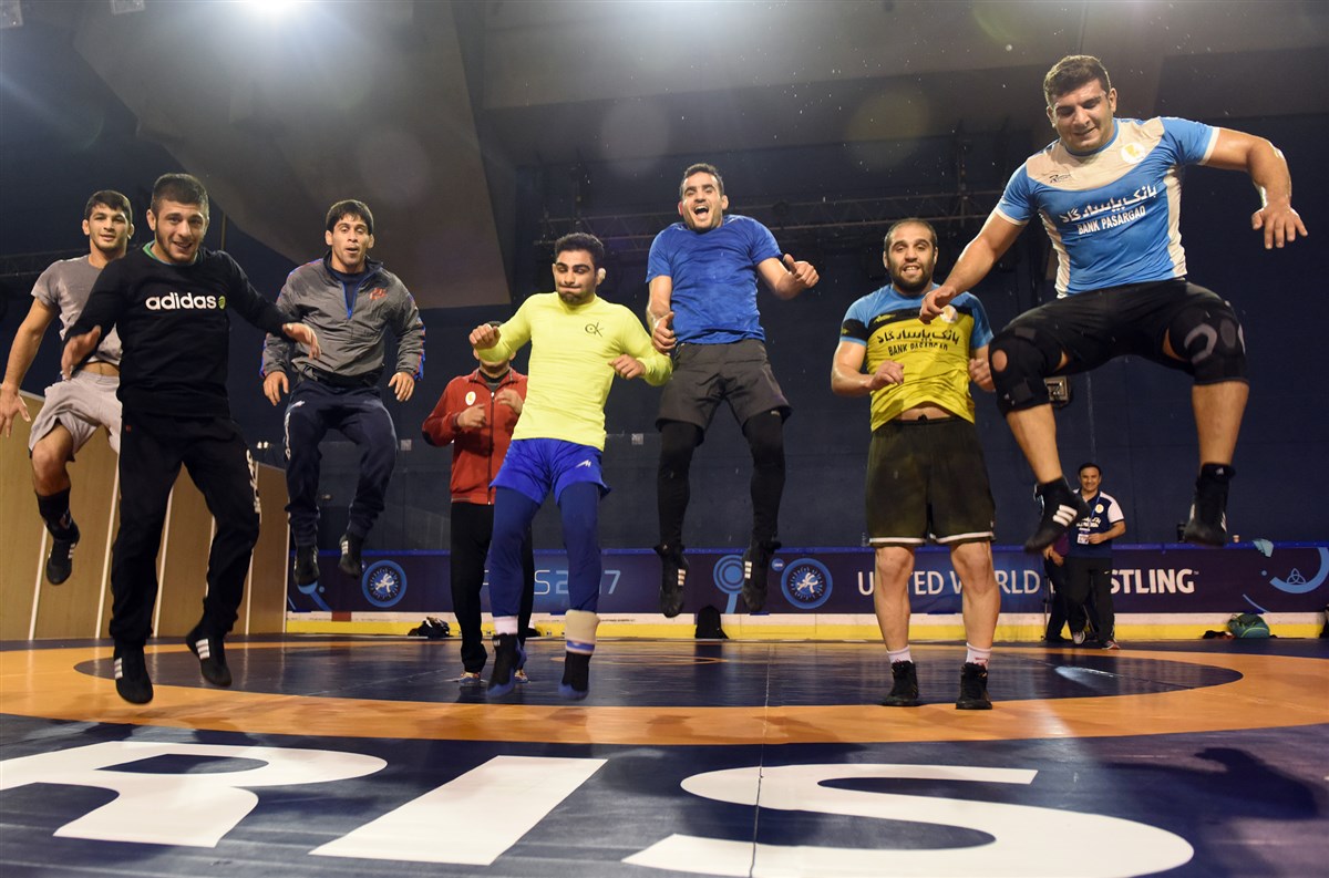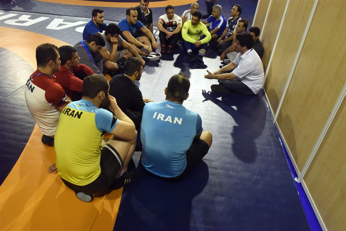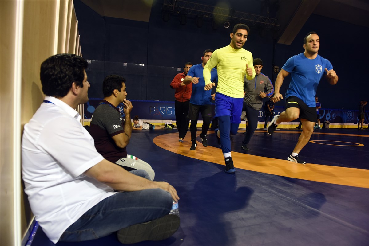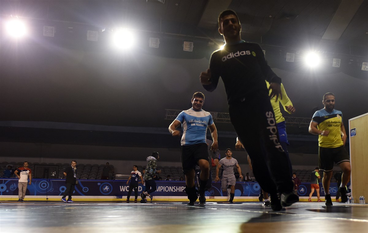 تمرین آزادکاران در محل برگزاری مسابقات