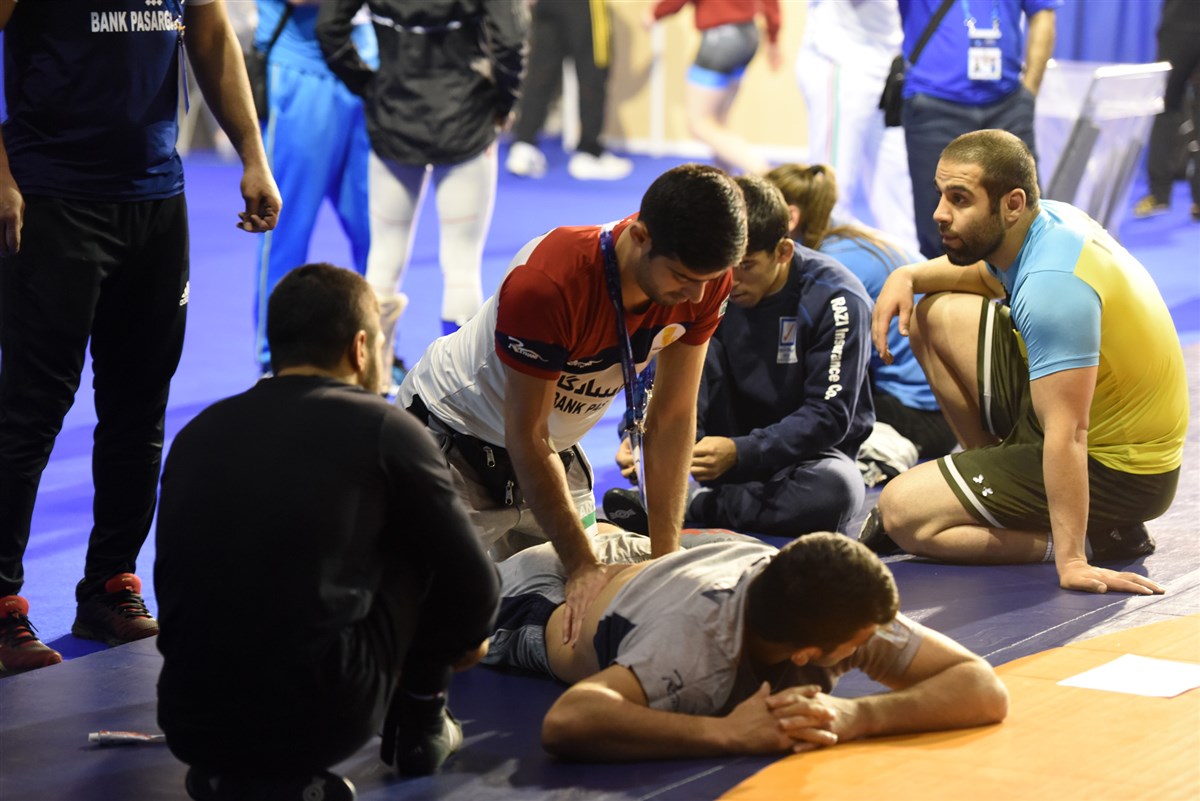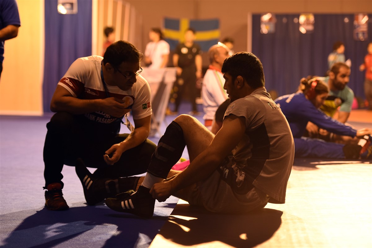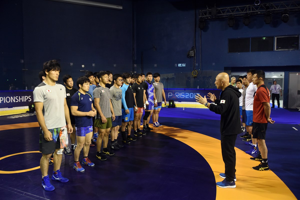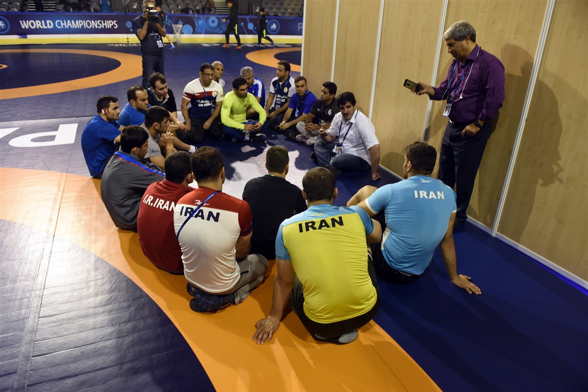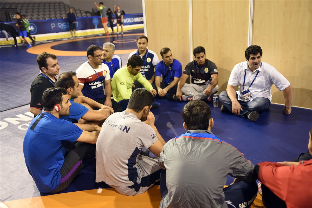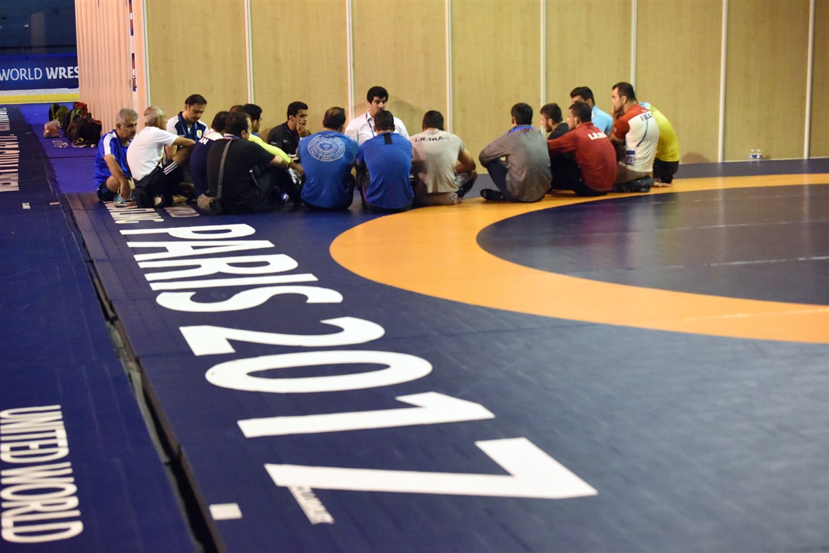 تمرین آزادکاران در محل برگزاری مسابقات