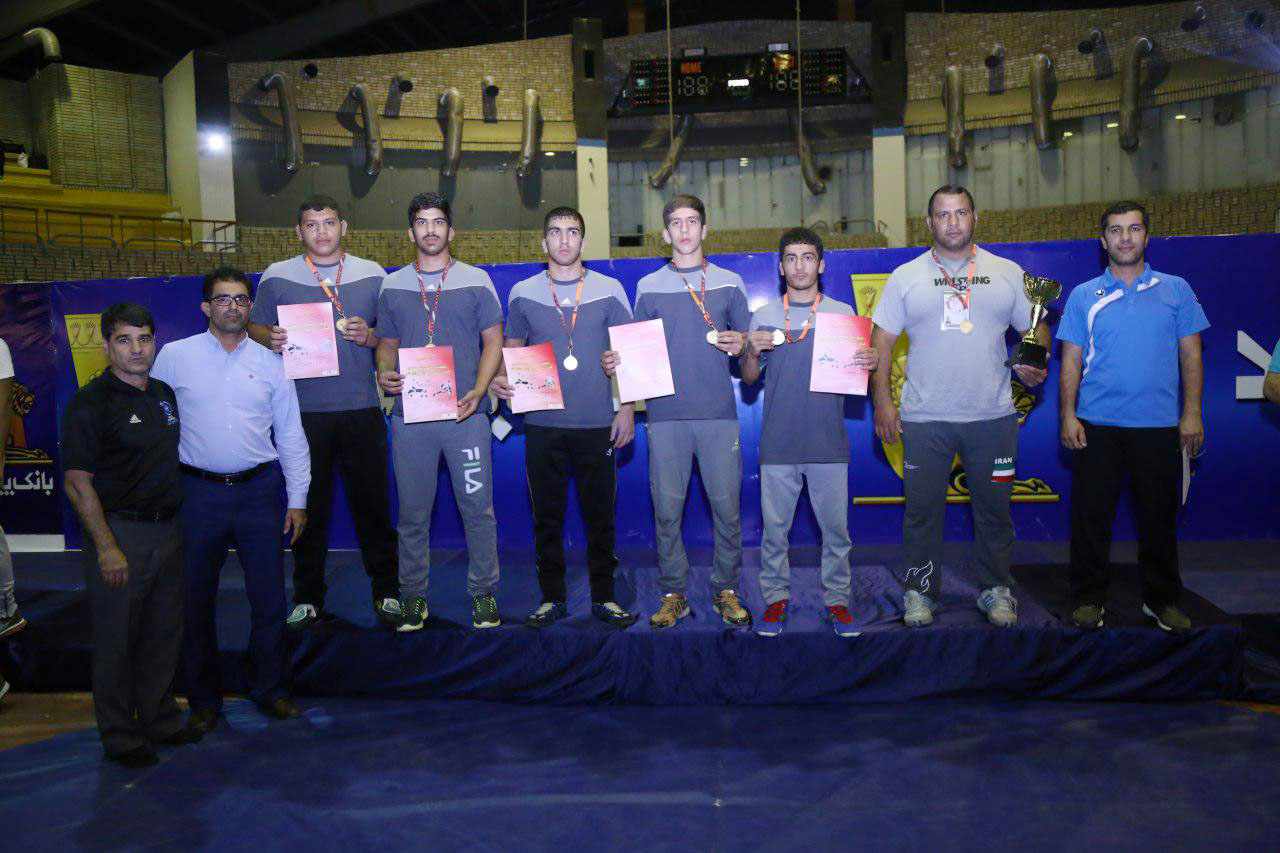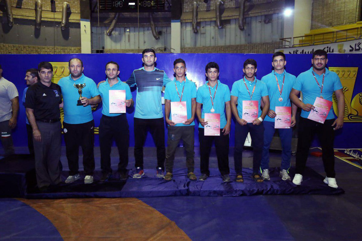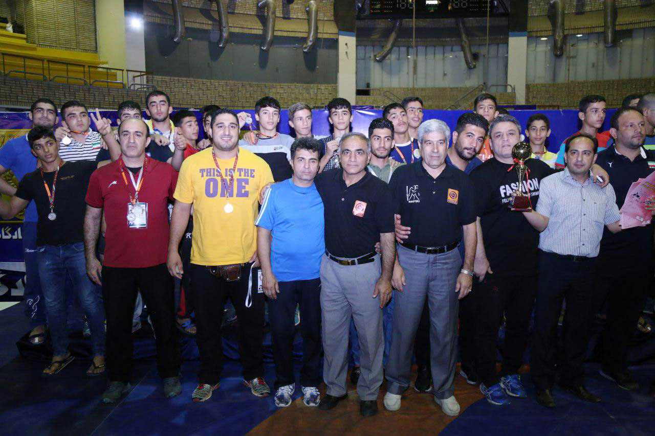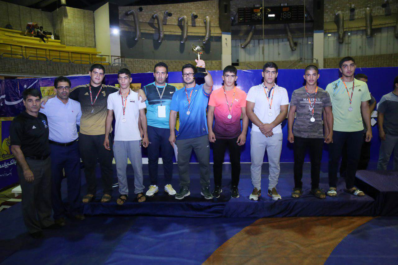 مراسم اهدای مدال و کاپ قهرمانی مسابقات کشتی آزاد و پهلوانی