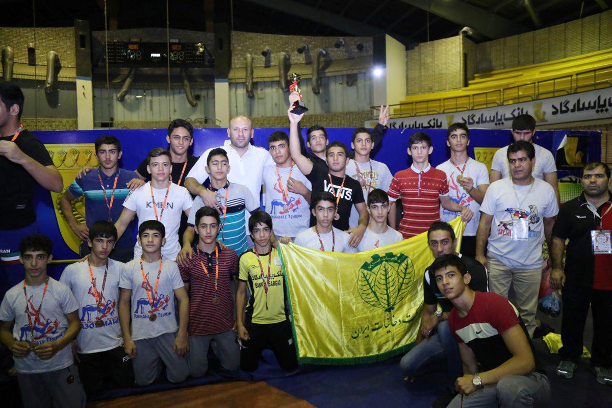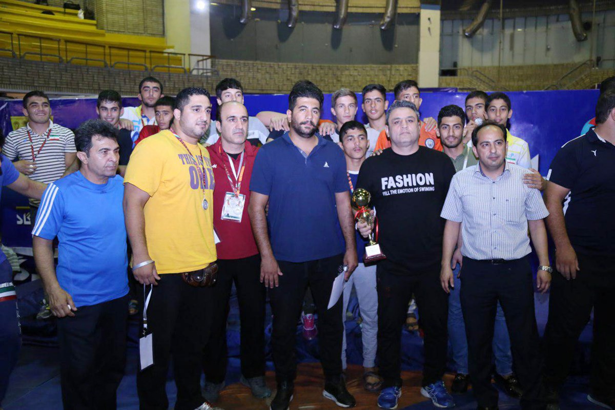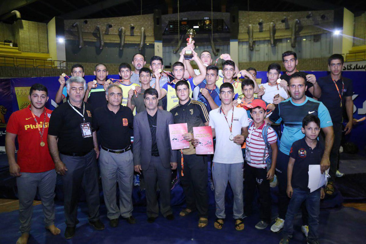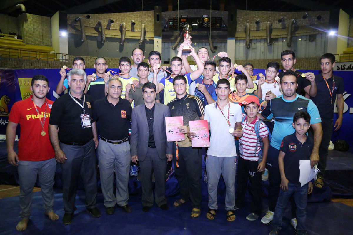 مراسم اهدای مدال و کاپ قهرمانی مسابقات کشتی آزاد و پهلوانی