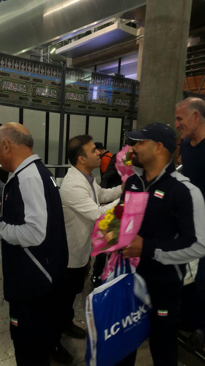 اعضای تیم ملی کشتی فرنگی پیشکسوتان پس کسب عنوان قهرمانی بامداد امروز (شنبه) از طریق فرودگاه بین المللی امام خمینی (ره) وارد کشور شدند و مورد استقبال رضا لایق دبیر فدراسیون کشتی قرار گرفتند.