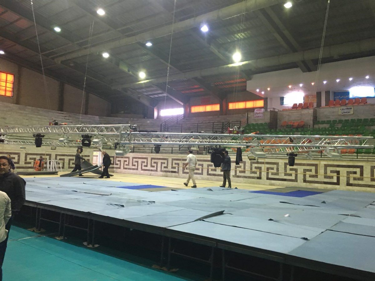 روند آماده سازی سالن برگزاری رقابت های بین المللی روز جهانی کودک (گزارش تصویری)