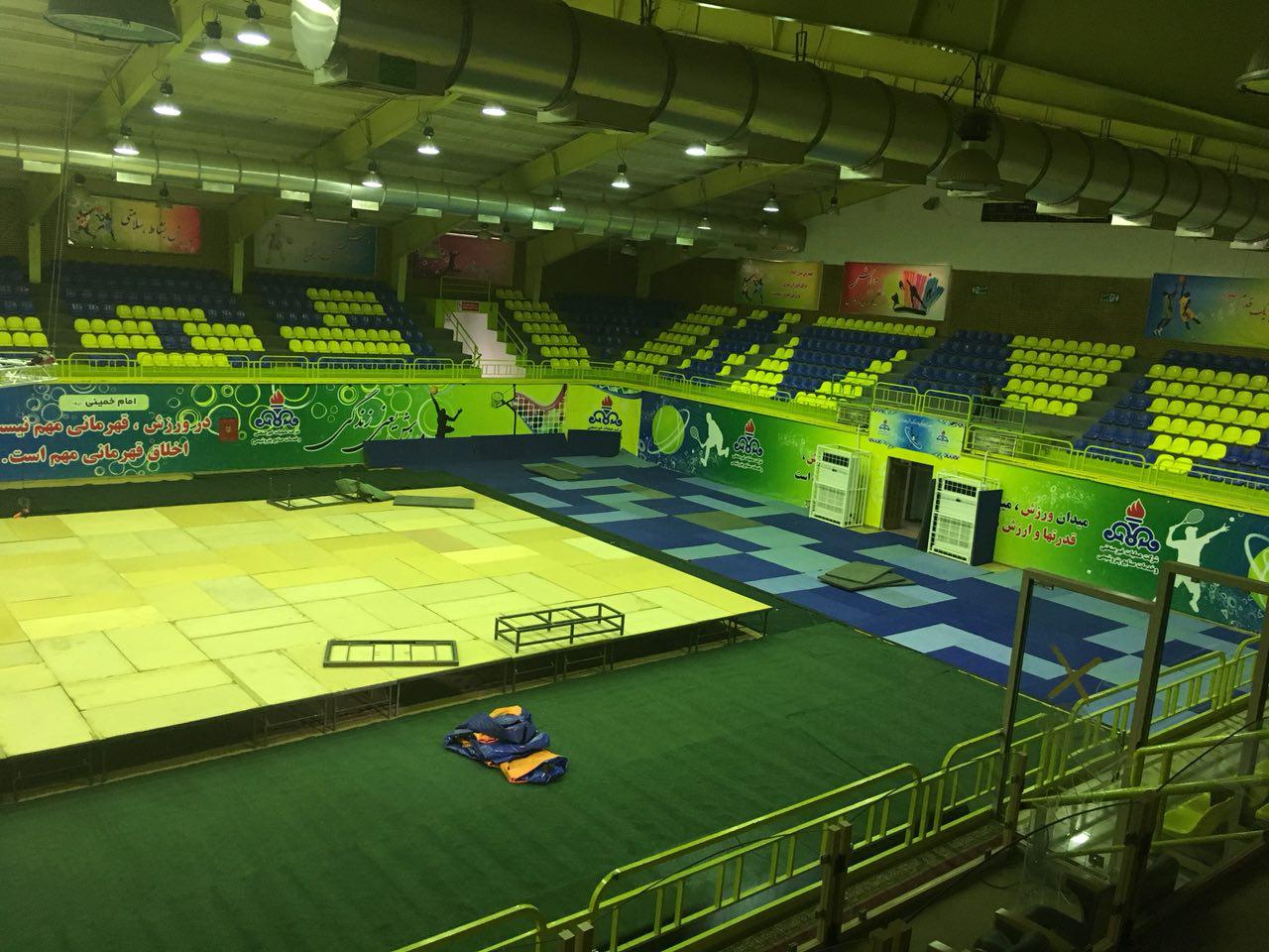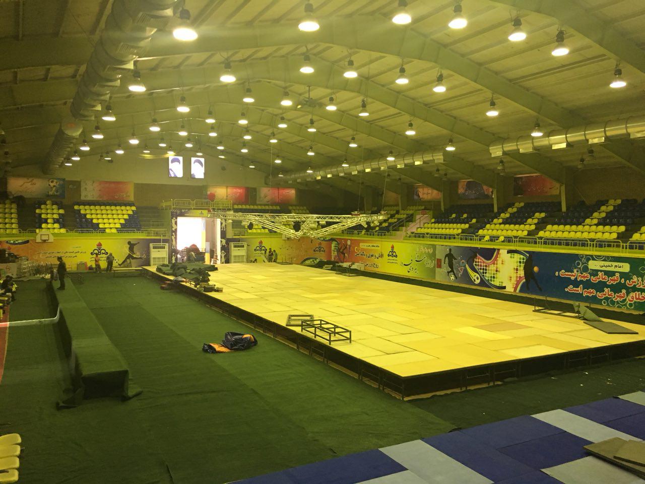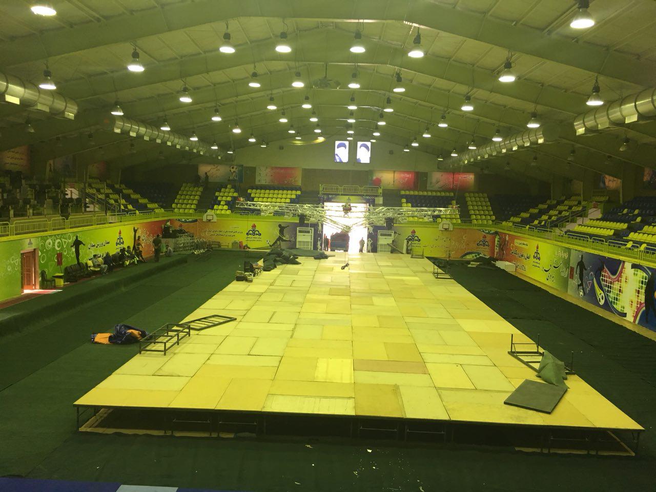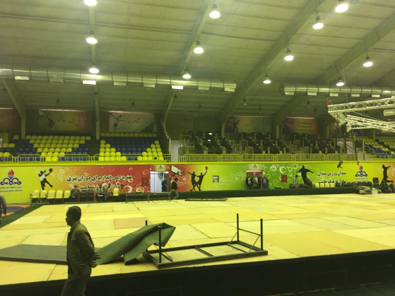 روند آماده سازی سالن برگزاری رقابت های بین المللی کشتی فرنگی جام تختی (گزارش تصویری)