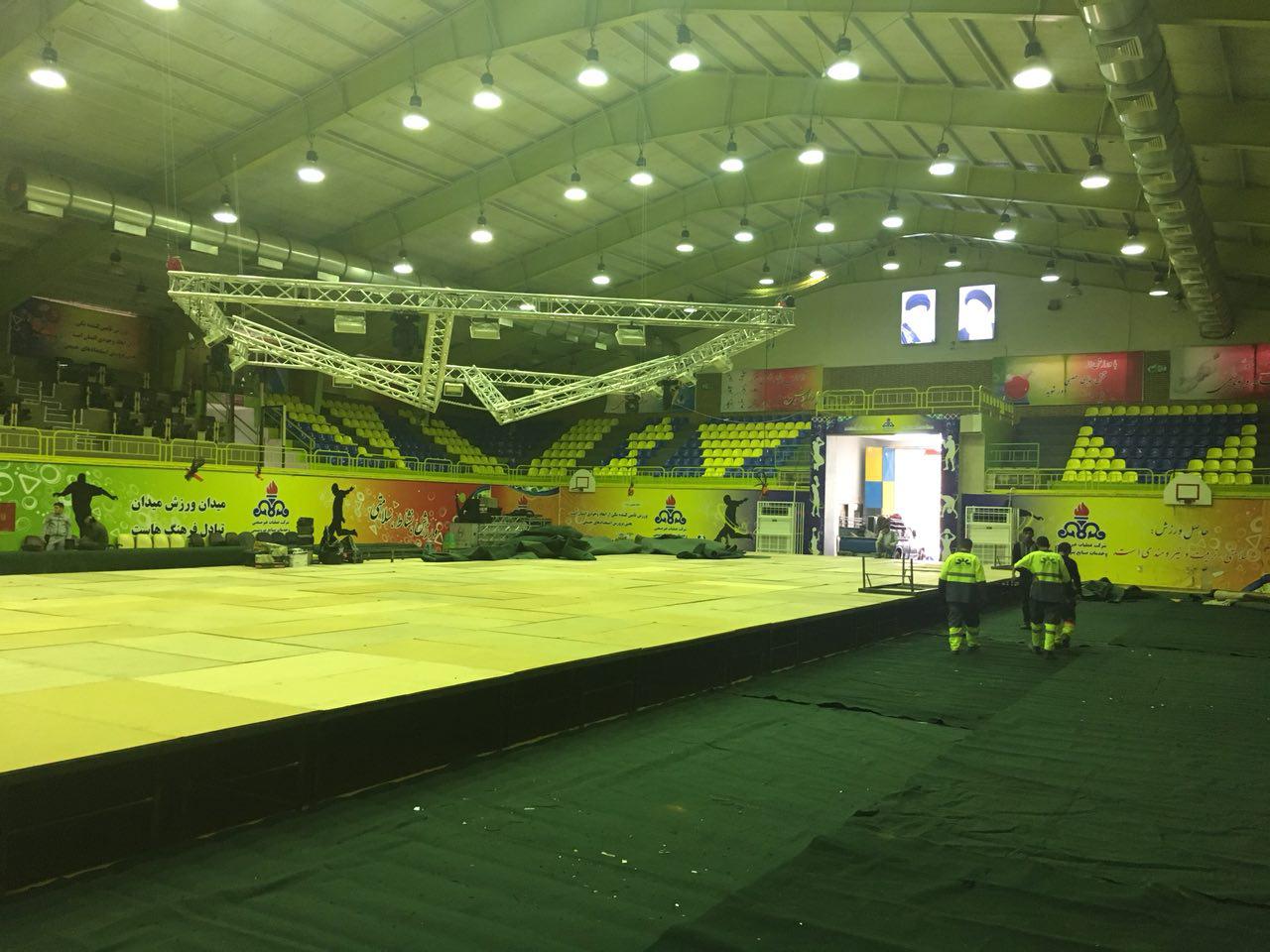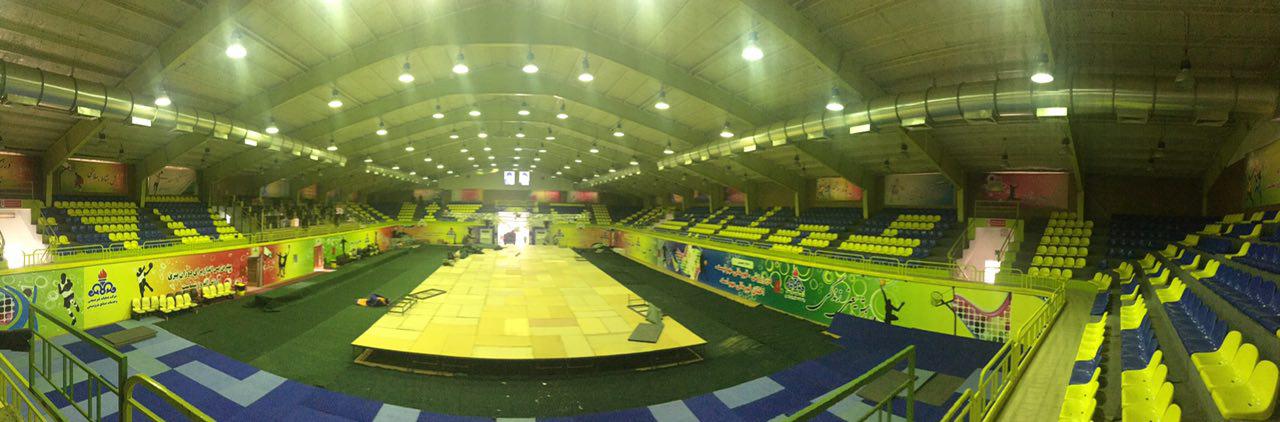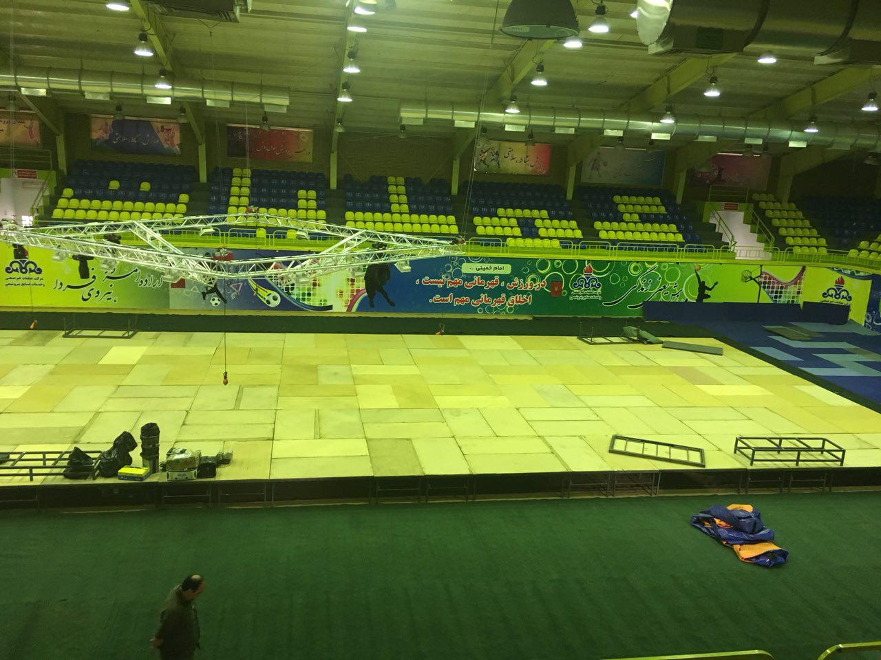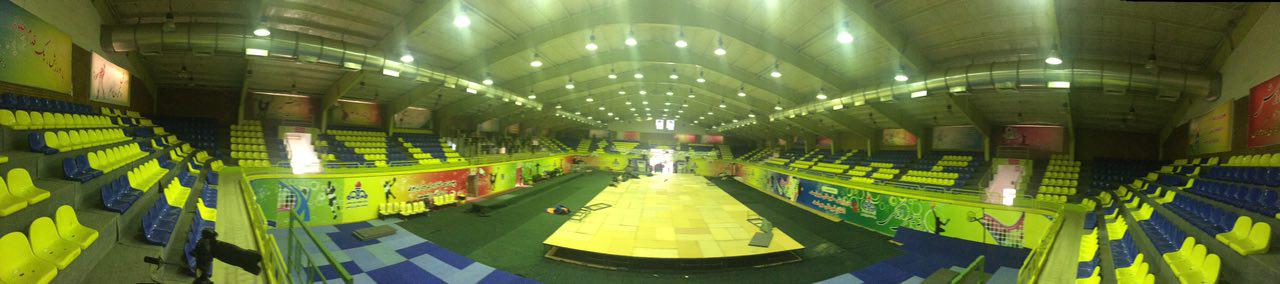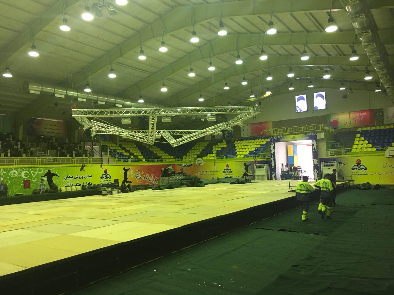 روند آماده سازی سالن برگزاری رقابت های بین المللی کشتی فرنگی جام تختی (گزارش تصویری)