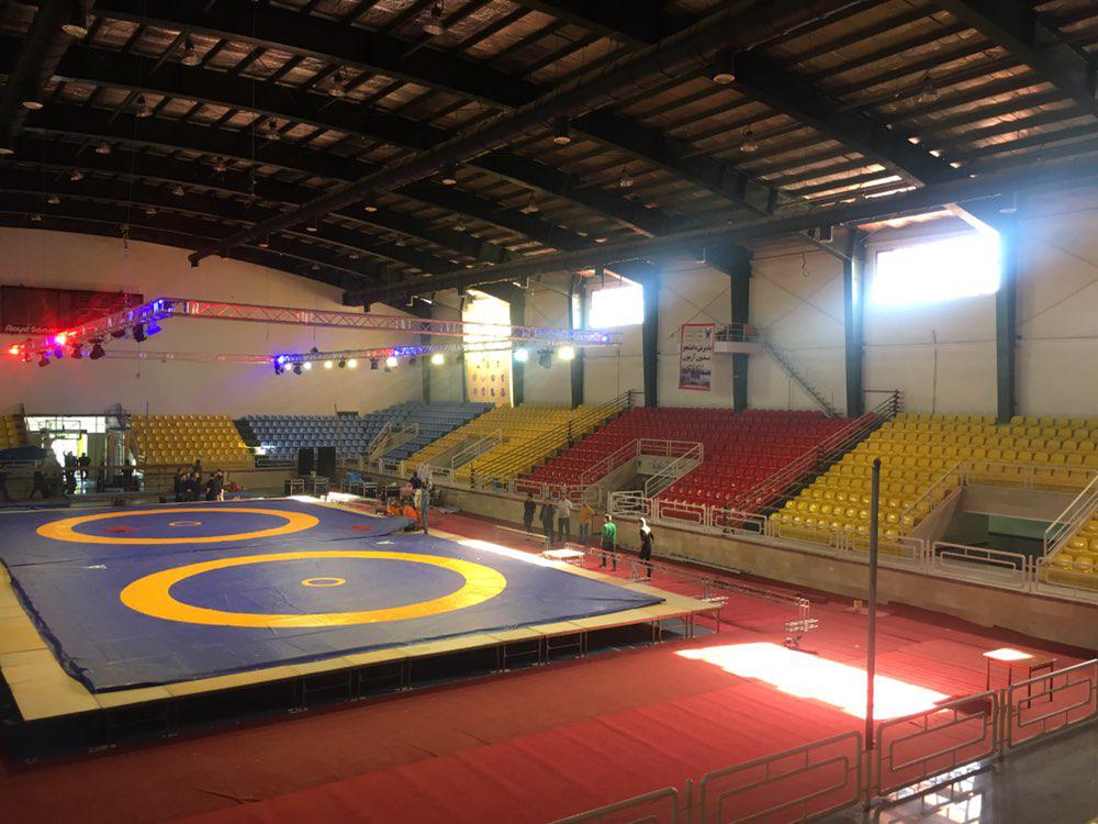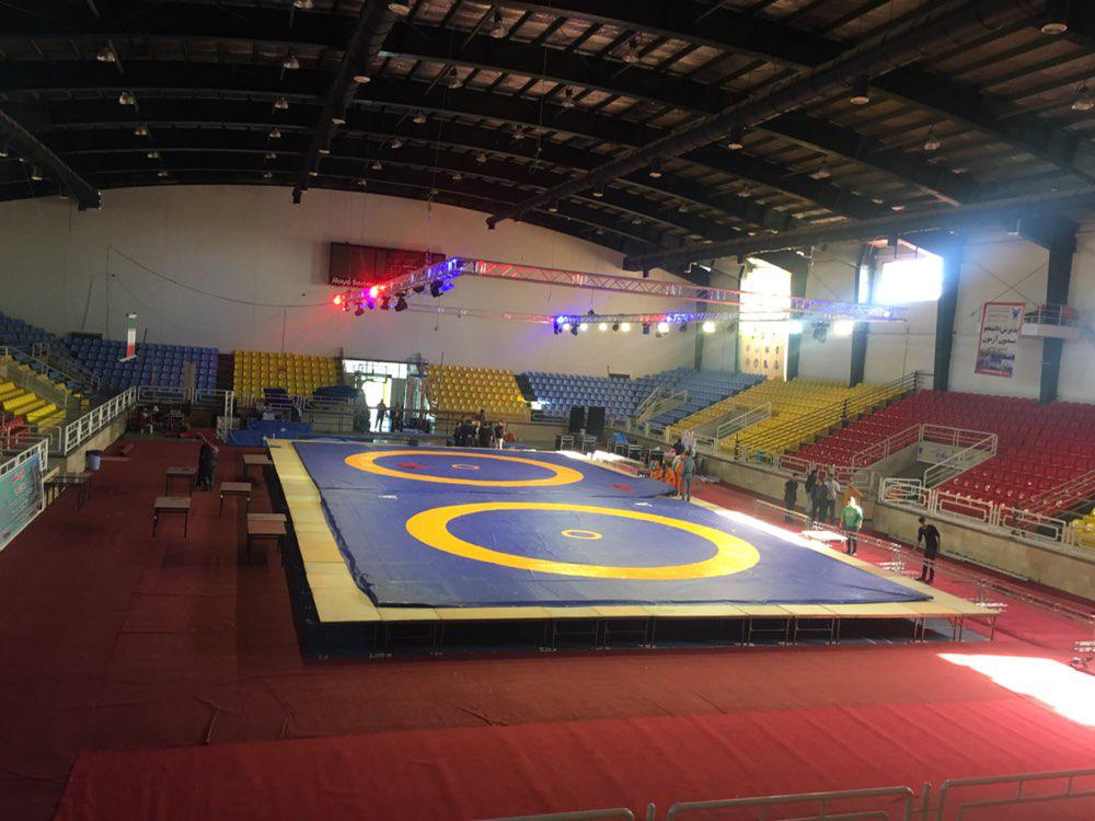 روند آماده سازی سالن دانشگاه آزاد اسلامی محل برگزاری مسابقات
