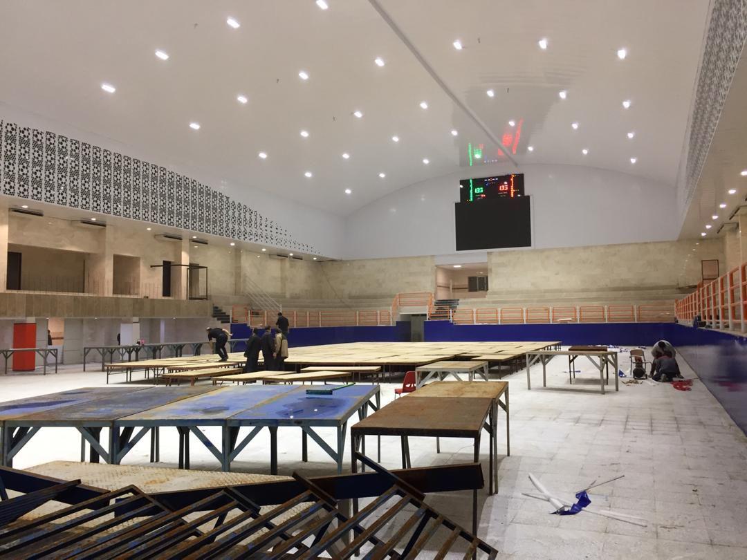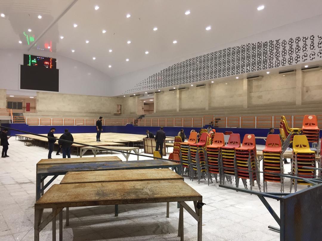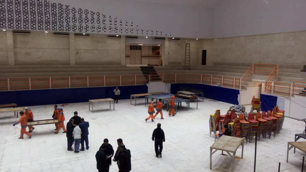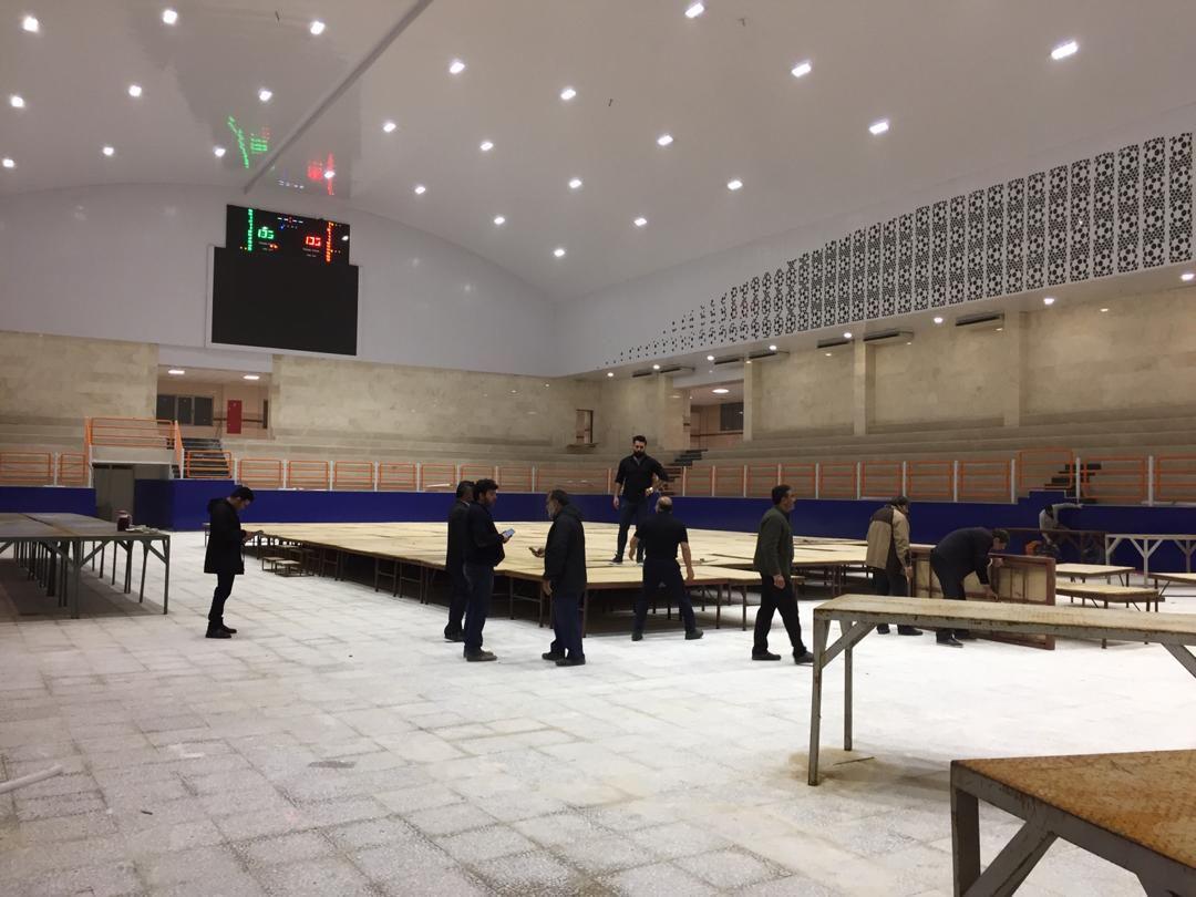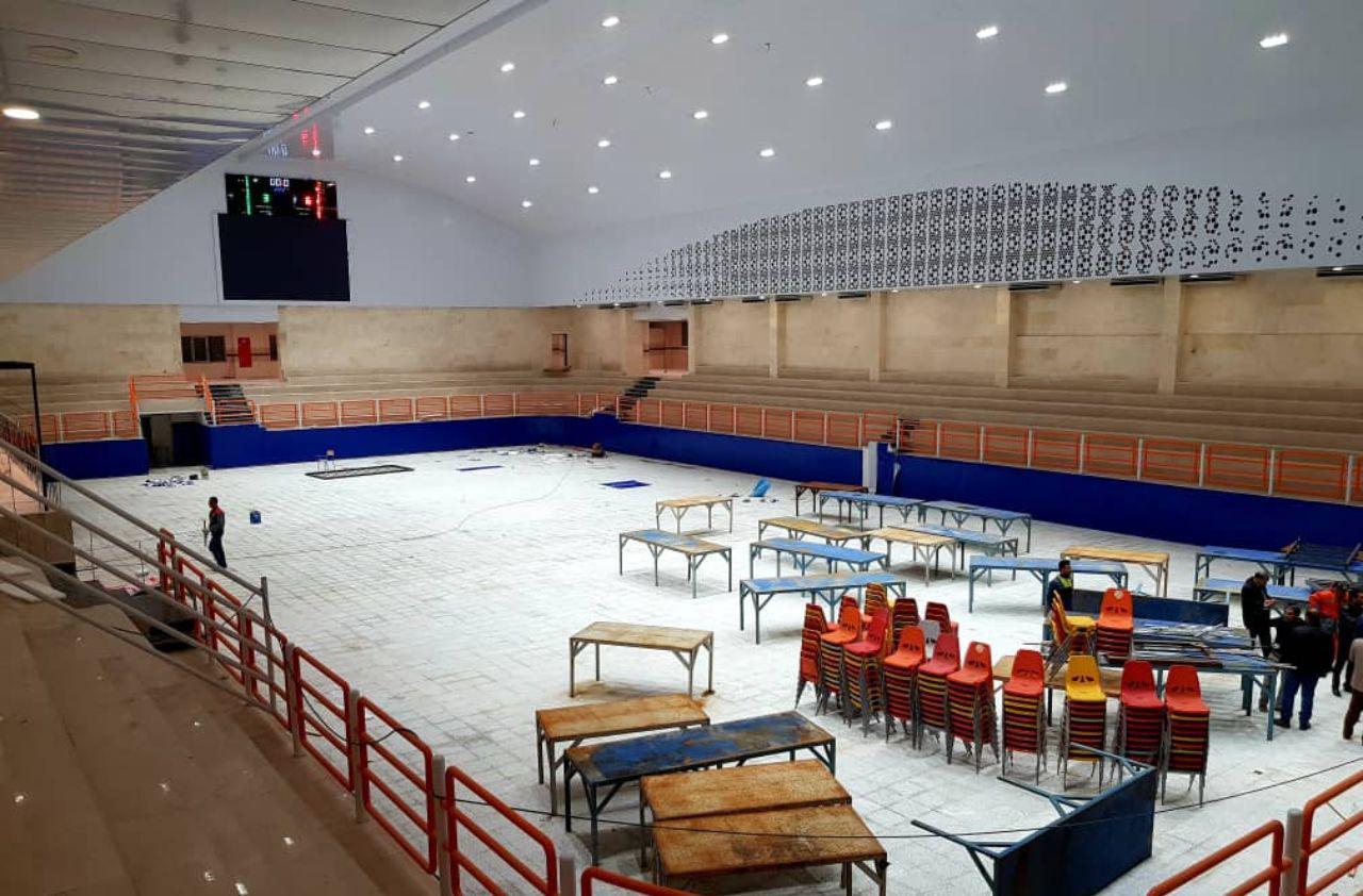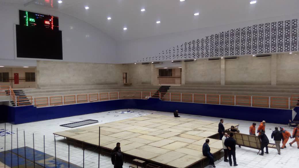 روند آماده سازی سالن شهید سروندی محل برگزاری مسابقات