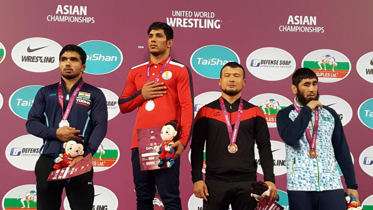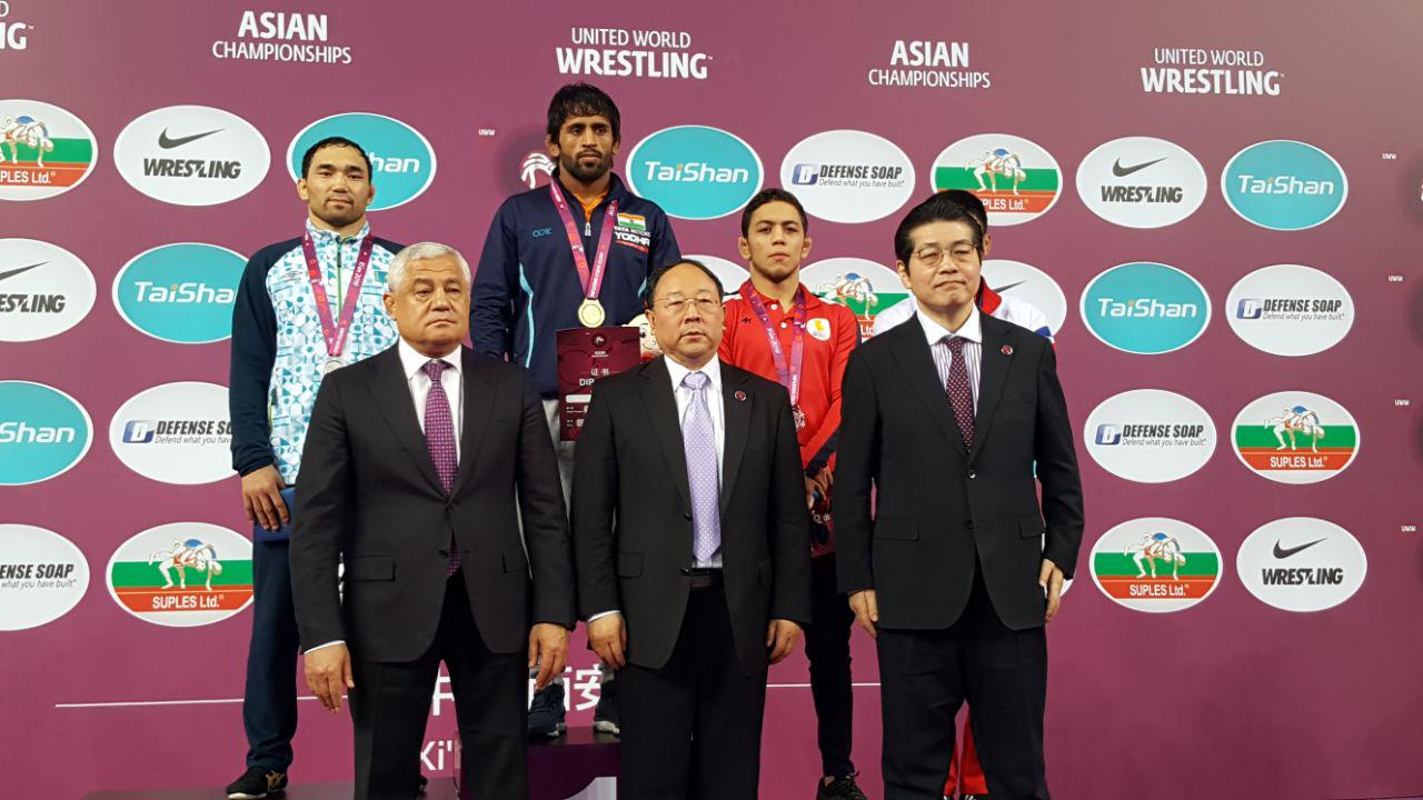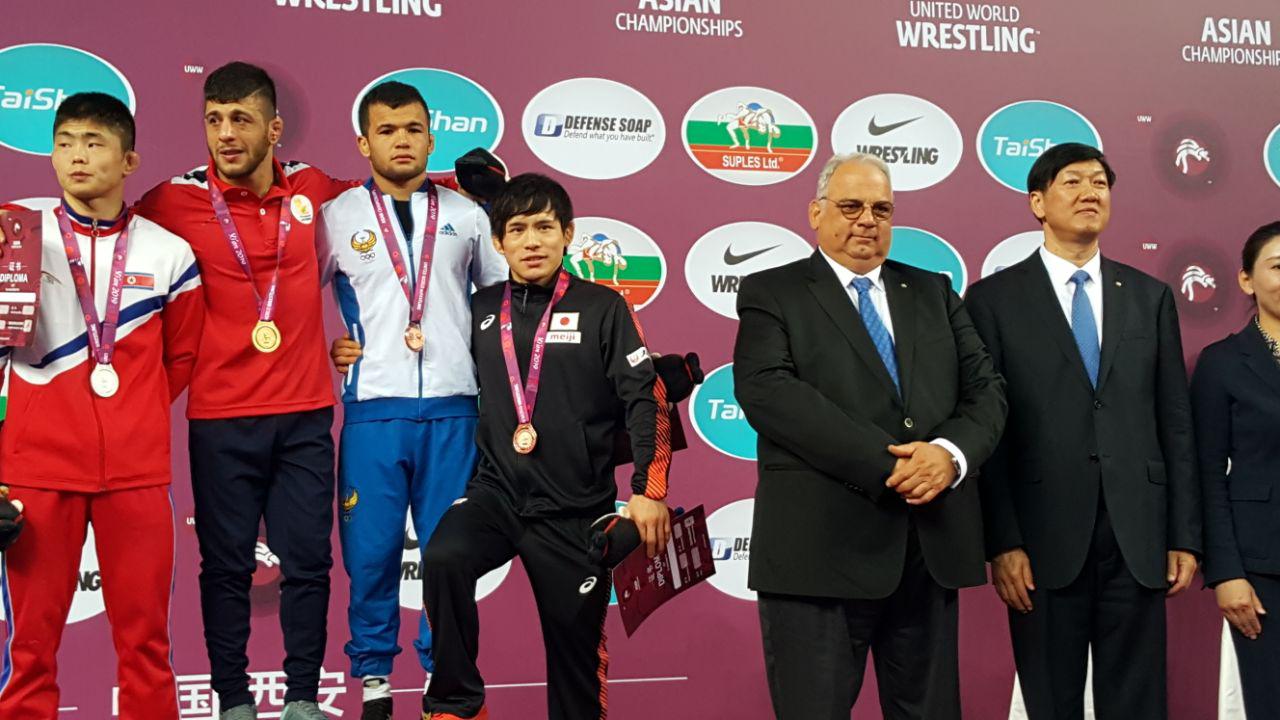 رضا اطری، بهمن تیموری و رضا یزدانی به مدال طلا و پیمان بیابانی و یونس امامی به مدال برنز رقابت های پنج وزن نخست کشتی آزاد بزرگسالان قهرمانی آسیا دست یافتند.