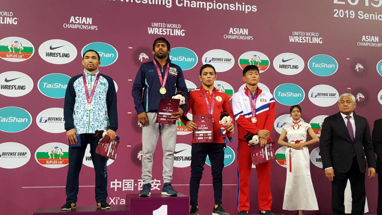 به گزارش روابط عمومی فدراسیون کشتی، مسابقات پنج وزن نخست رقابت های کشتی آزاد بزرگسالان قهرمانی آسیا امروز (سه شنبه) در شهر "شی آن" چین برگزار شد که در پایان رضا اطری، بهمن تیموری و رضا یزدانی در اوزان 57، 79 و 97 کیلوگرم به مدال طلا و پیمانی بیابانی و یونس امامی در اوزان 65 و 70 کیلوگرم به مدال برنز دست یافتند.