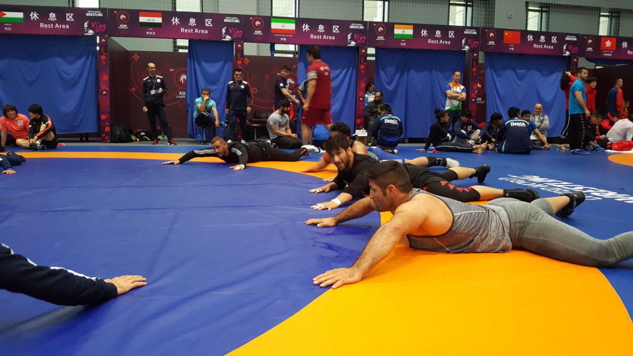 تمرین تیم ملی کشتی فرنگی پیش از حضور در رقابت های قهرمانی آسیا (گزارش تصویری)