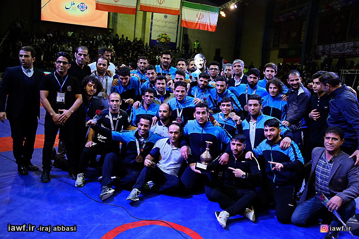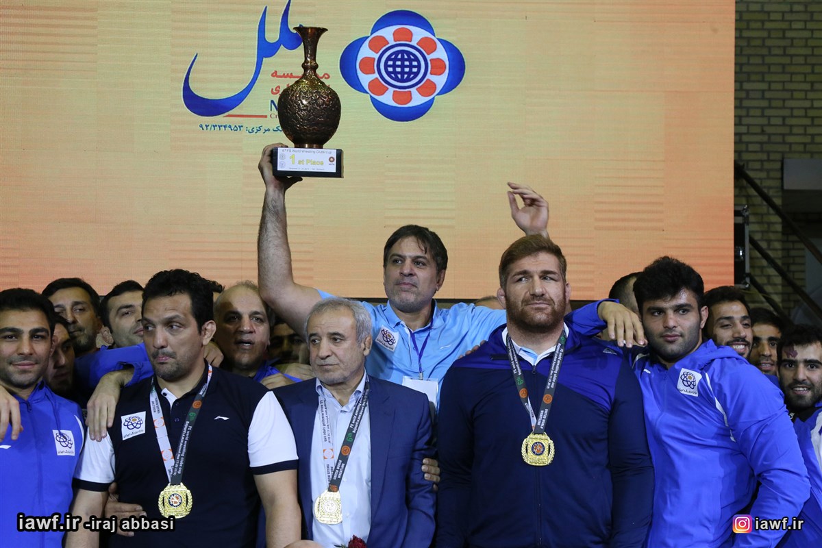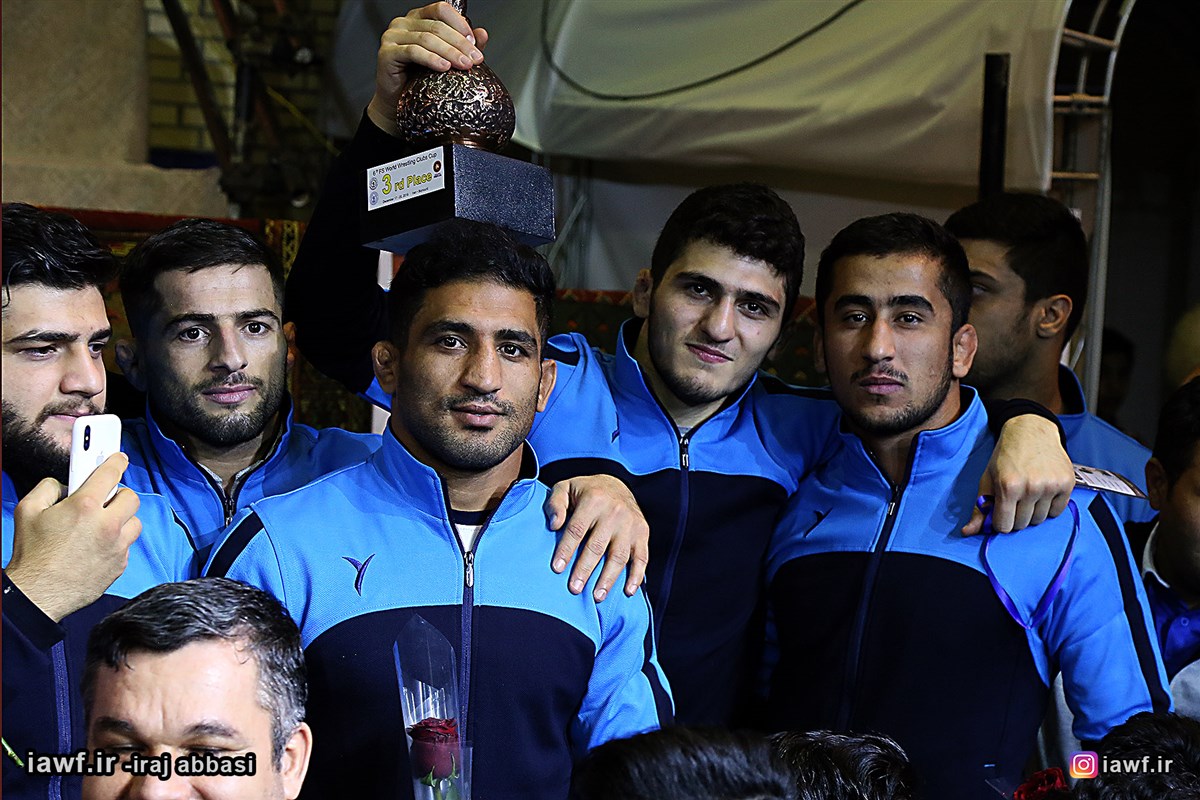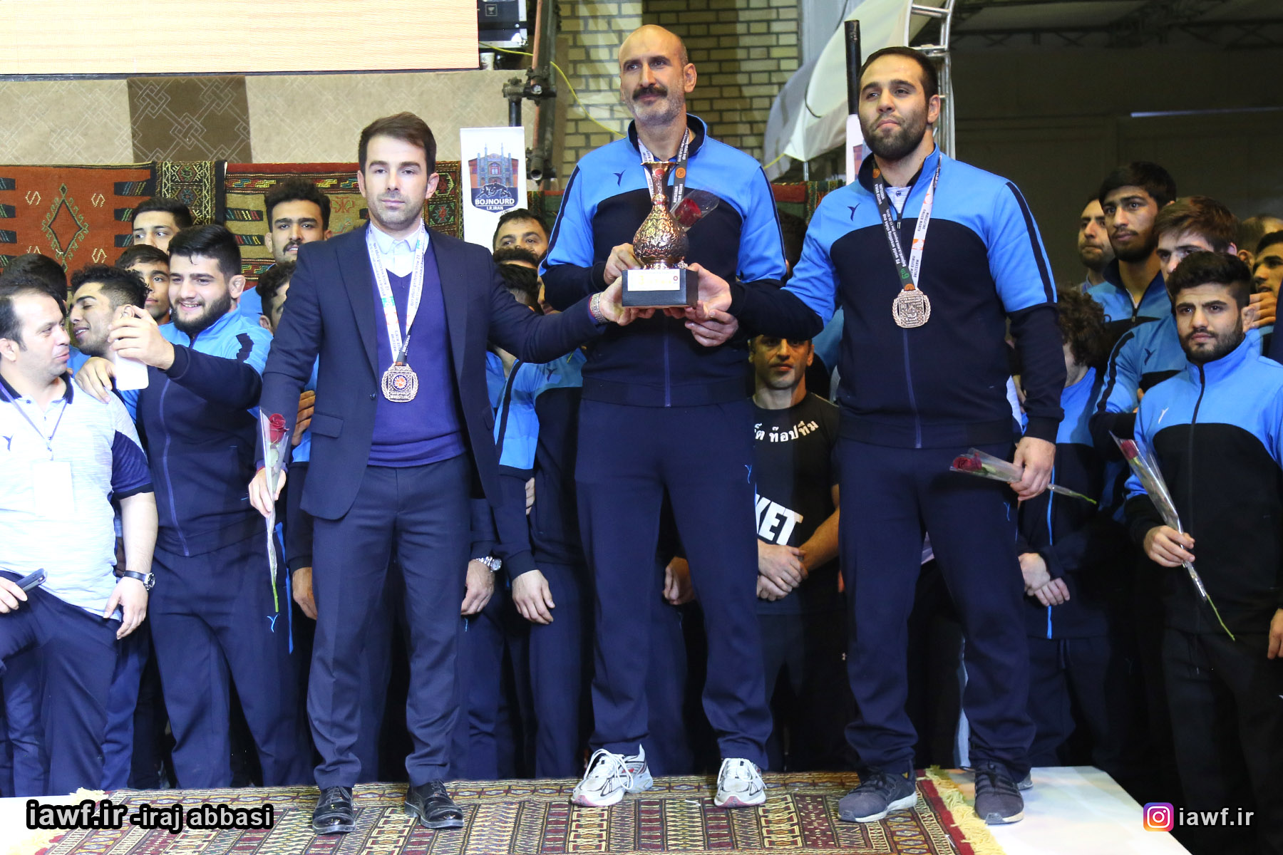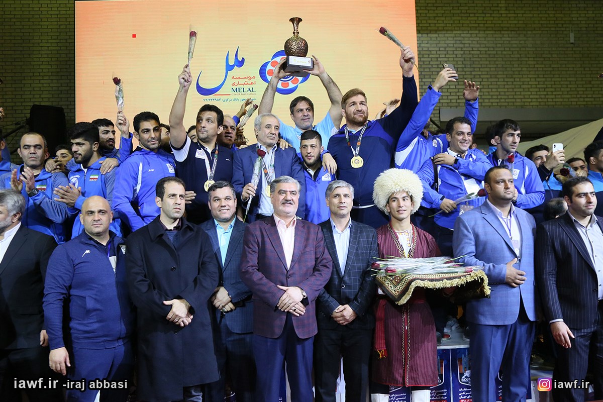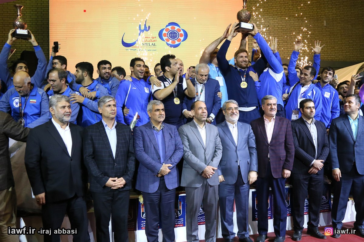 مراسم اهدای مدال و کاپ قهرمانی مسابقات کشتی آزاد