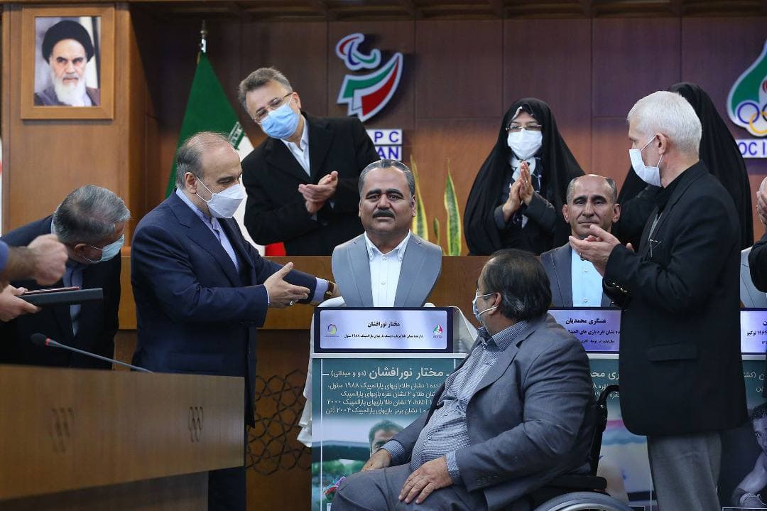 همچنین تندیس عسکری محمدیان و مختار نورافشان با حضور هردو قهرمان و پیشکسوت ورزش کشور رونمایی شد.