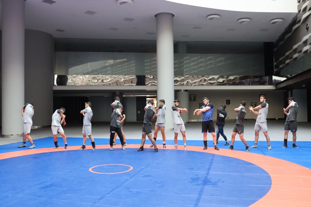 آزادکاران کشورمان نخستین تمرین خود را در محل مسابقات برگزار کردند