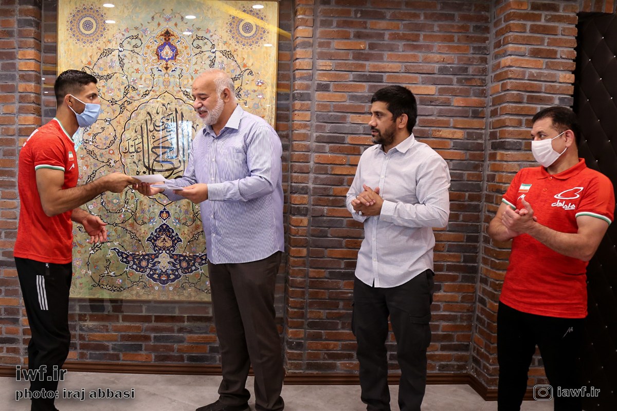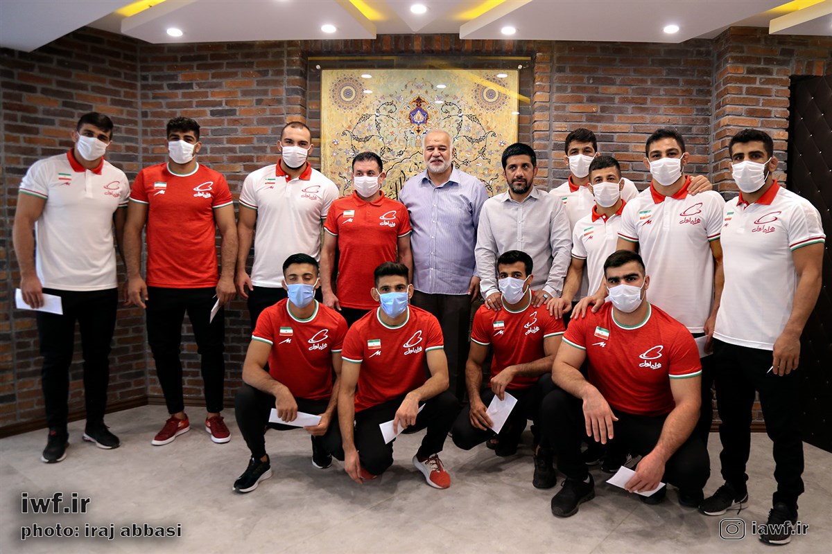 وی ضمن آرزوی توفیق و سلامتی جهت همه ورزشکاران اعزامی خصوصاً کشتی گیران و بیان خاطراتی از شهدای جنگ تحمیلی، پاداشی نیز به ملی پوشان کشورمان اهداء کرد.