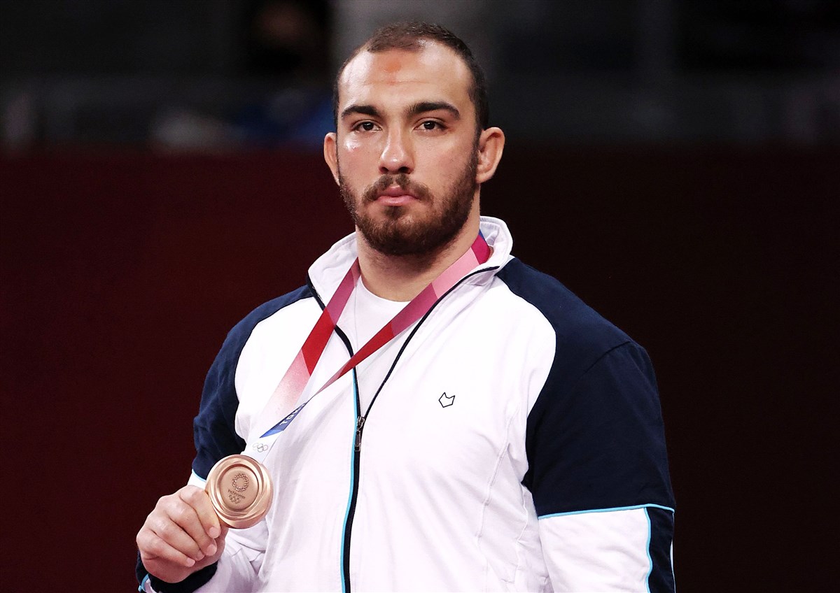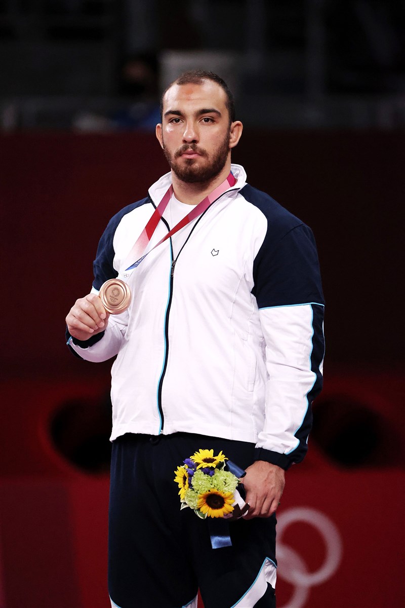 مراسم اهدای مدال برنز به امیرحسین زارع در وزن 125 کیلوگرم