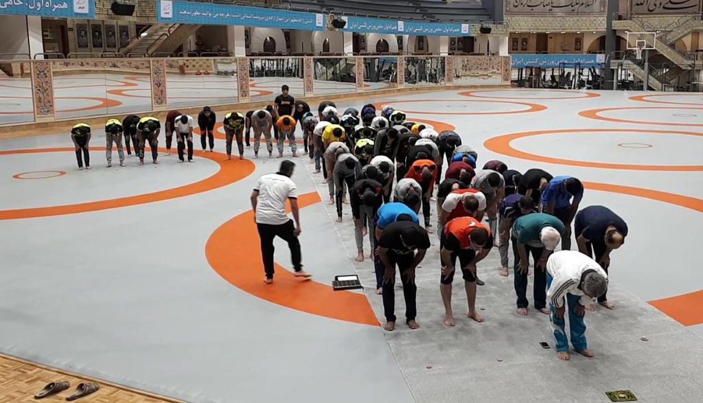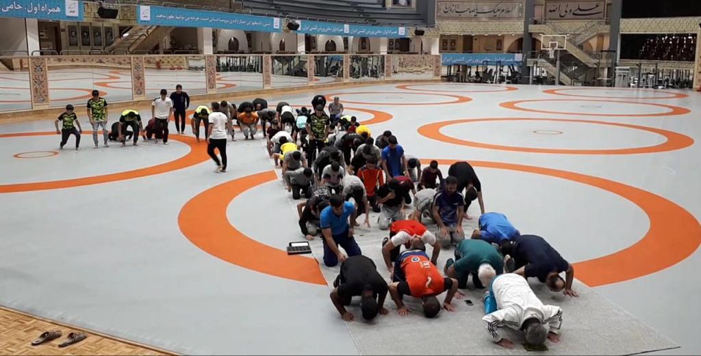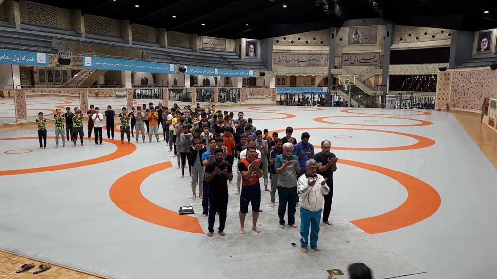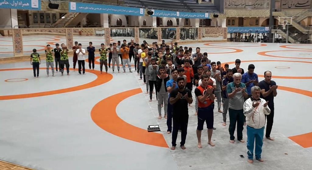 در راستای اجرای برنامه های فرهنگی و اهمیت به نماز، نفرات حاضر در این اردو نماز مغرب و عشاء را به جماعت و بر روی تشک کشتی اقامه کردند.