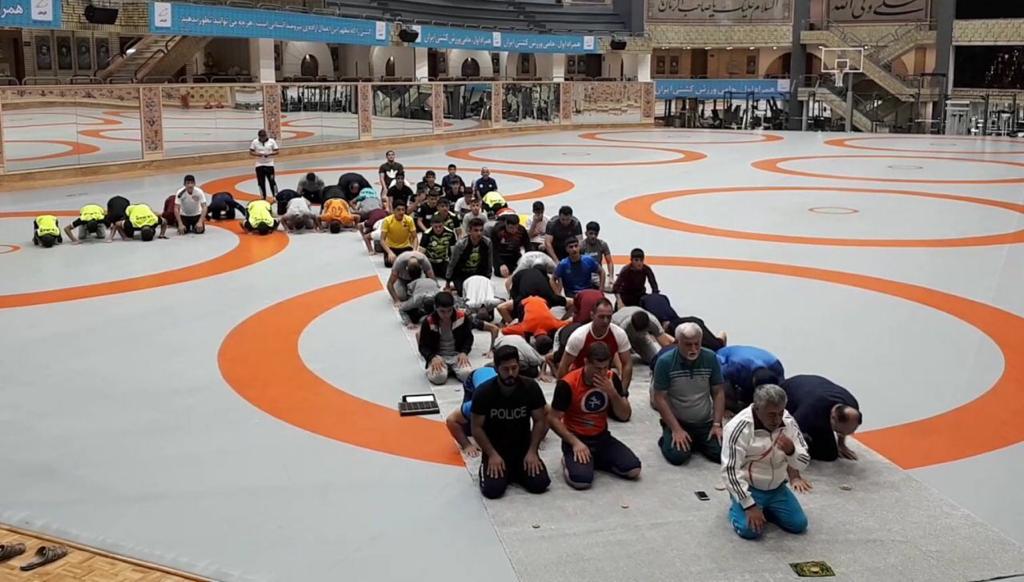 فرنگی کاران نونهالان نماز جماعت را بر روی تشک کشتی اقامه کردند.