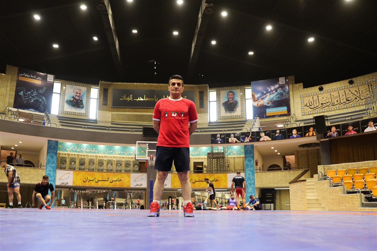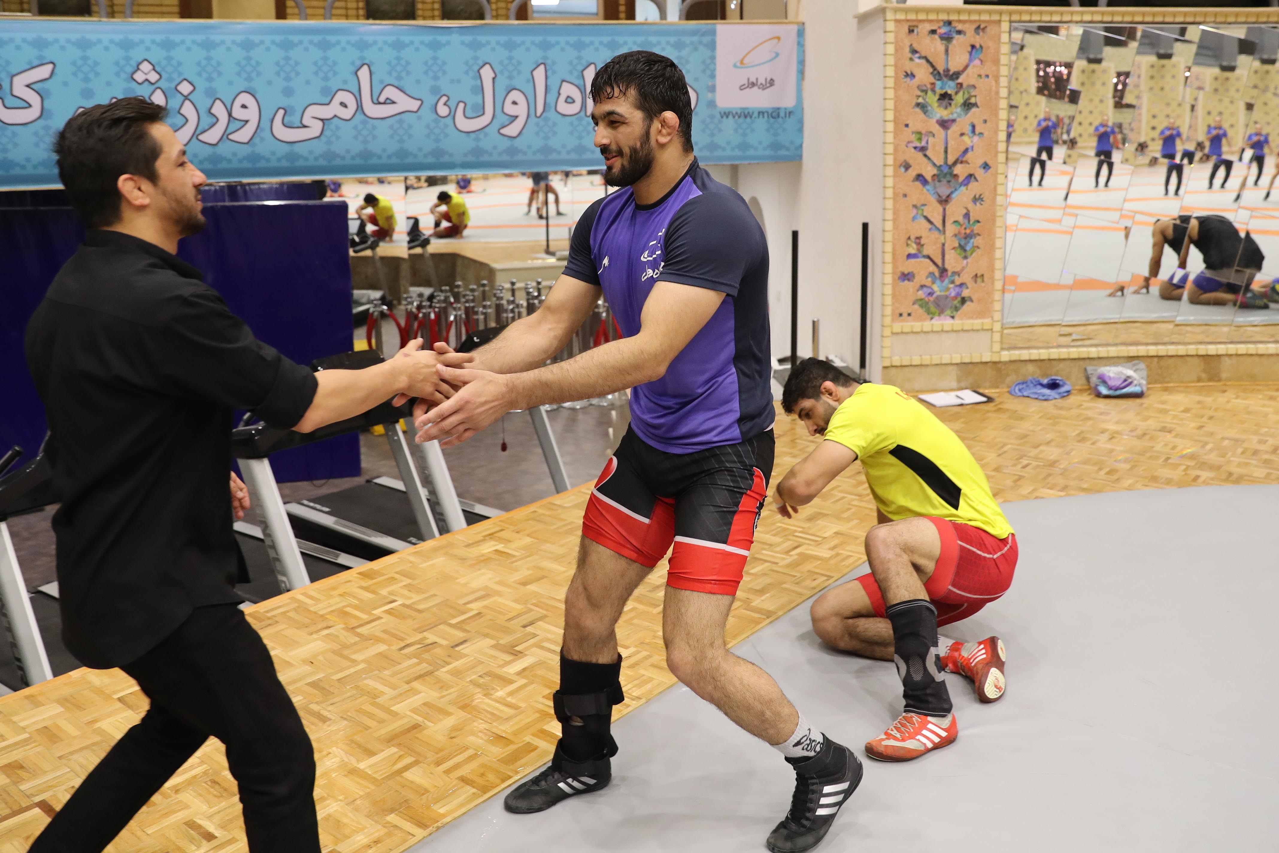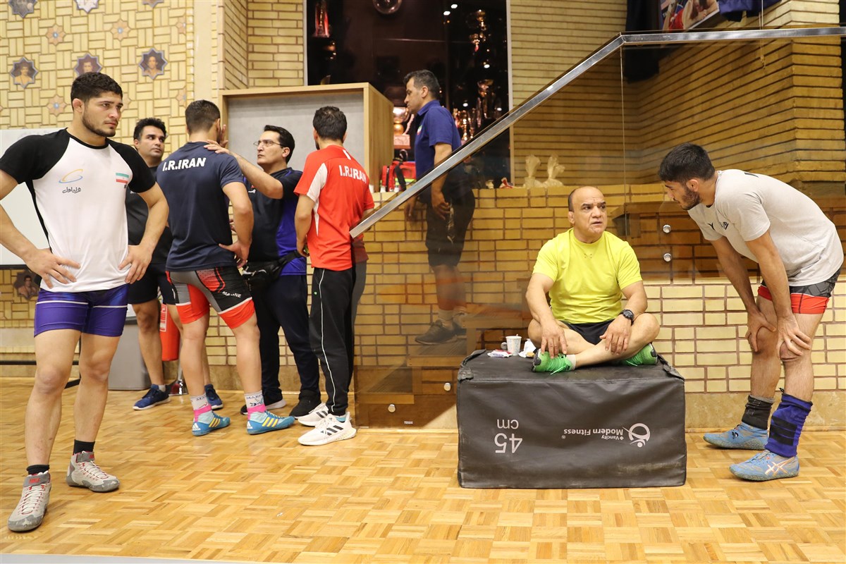 حمید سوریان نایب رئیس فدراسیون کشتی و دارنده هفت مدال طلای جهان و المپیک نظارهگر تمرینات کشتیگیران بود