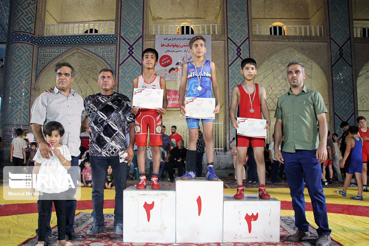 مسابقات کشتی آزاد رده سنی خردسالان جشنواره کشتی پهلوانک ها شامگاه پنجشنبه ۲ تیر در میدان امیرچقماق یزد برگزار شد.