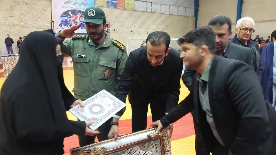 3- تجلیل از مادر سردار شهید کشتی گیر مصطفیحلوایی در خلال مسابقاتکشتی فرنگی نوجوانان استان توسط مدیر کل ورزش وجوانان استان اصفهان