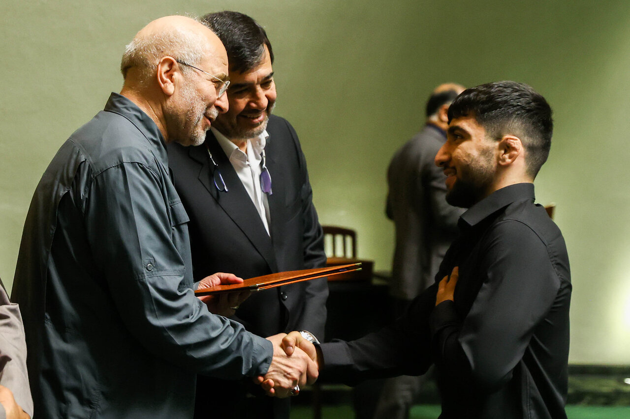 به گزارش روابط عمومی فدراسیون کشتی، آیین تجلیل از مدالآوران، کادر فنی و مسئولان تیمهای ملی کشتی آزاد و فرنگی، پس از کسب قهرمانی جهان در رقابتهای کرواسی، صبح امروز یکشنبه 13 مهر ماه در نشست علنی غیررسمی مجلس شورای اسلامی با حضور دکتر قالیباف، نمایندگان مجلس، احمد دنیامالی وزیر ورزش و جوانان، علیرضا دبیر رییس فدراسیون کشتی و کشتی گیران و مربیان تیم ملی کشتی آزاد و فرنگی برگزار شد.