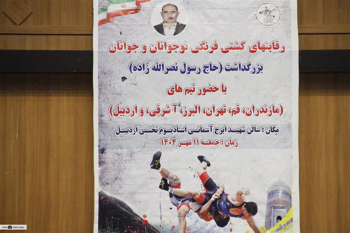 رقابت های کشتی فرنگی نوجوانان و جوانان (بزرگداشت حاج رسول نصراله زاده) مورخ ۱۱ مهر ماه با حضور تیم های از تهران، قم، البرز، آذربایجان شرقی، آستارا و اردبیل در محل سالن شهید ایرج آسمانی استادیوم تختی اردبیل برگزار شد.