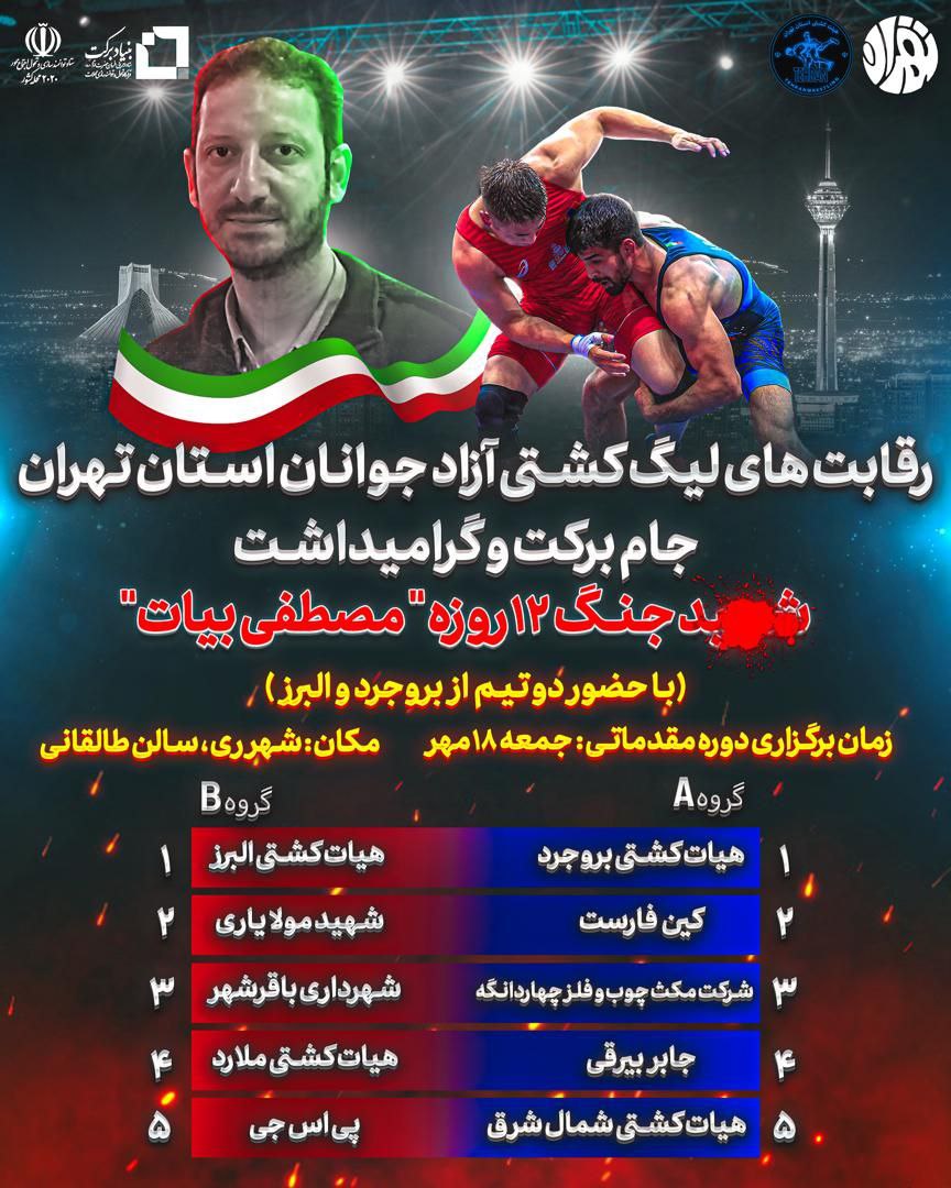 دور مقدماتی لیگ کشتی آزاد استان تهران، جام برکت و گرامیداشت شهید مصطفی بیات دیروز (جمعه) در سالن طالقانی شهر ری برگزار شد.