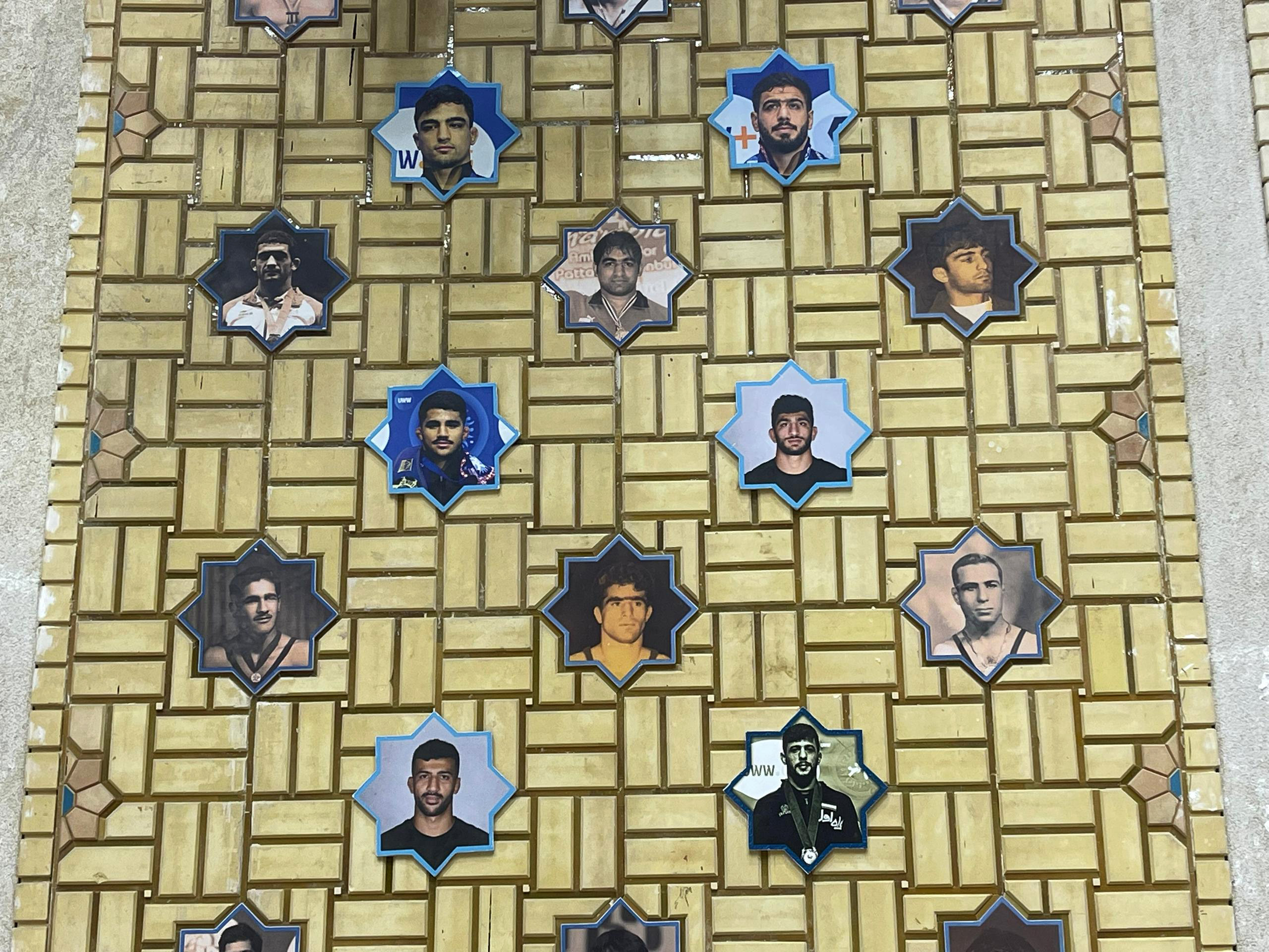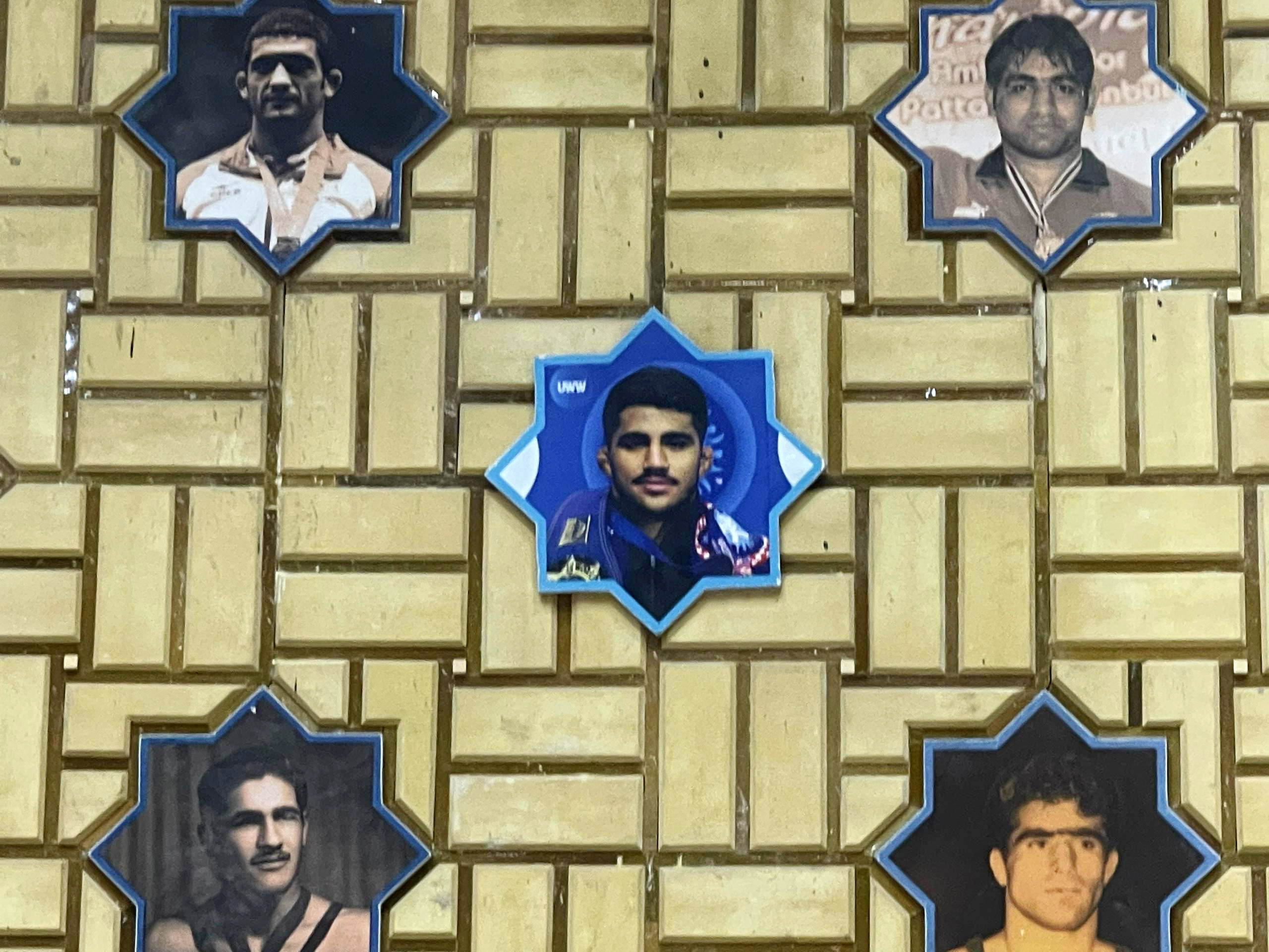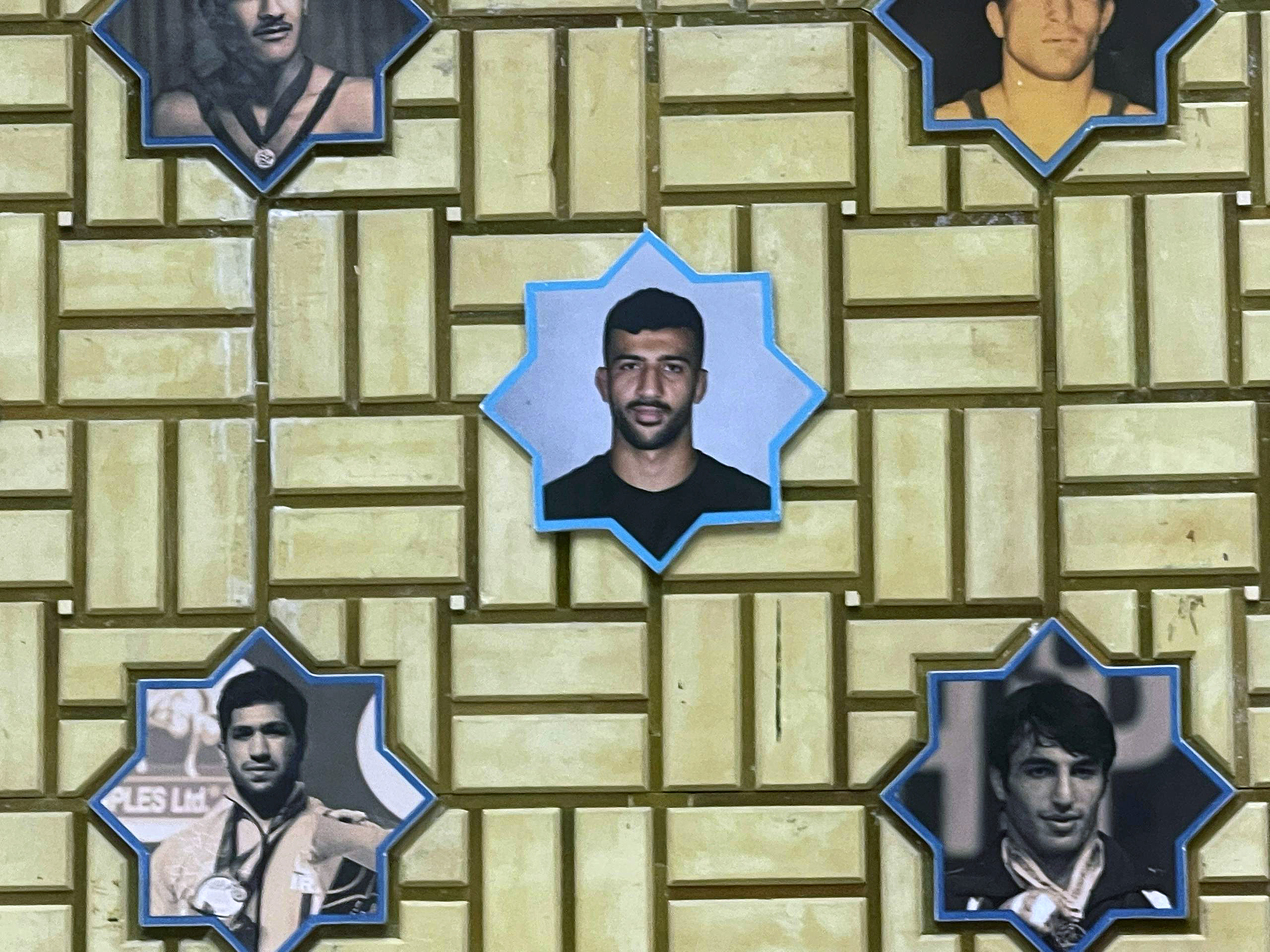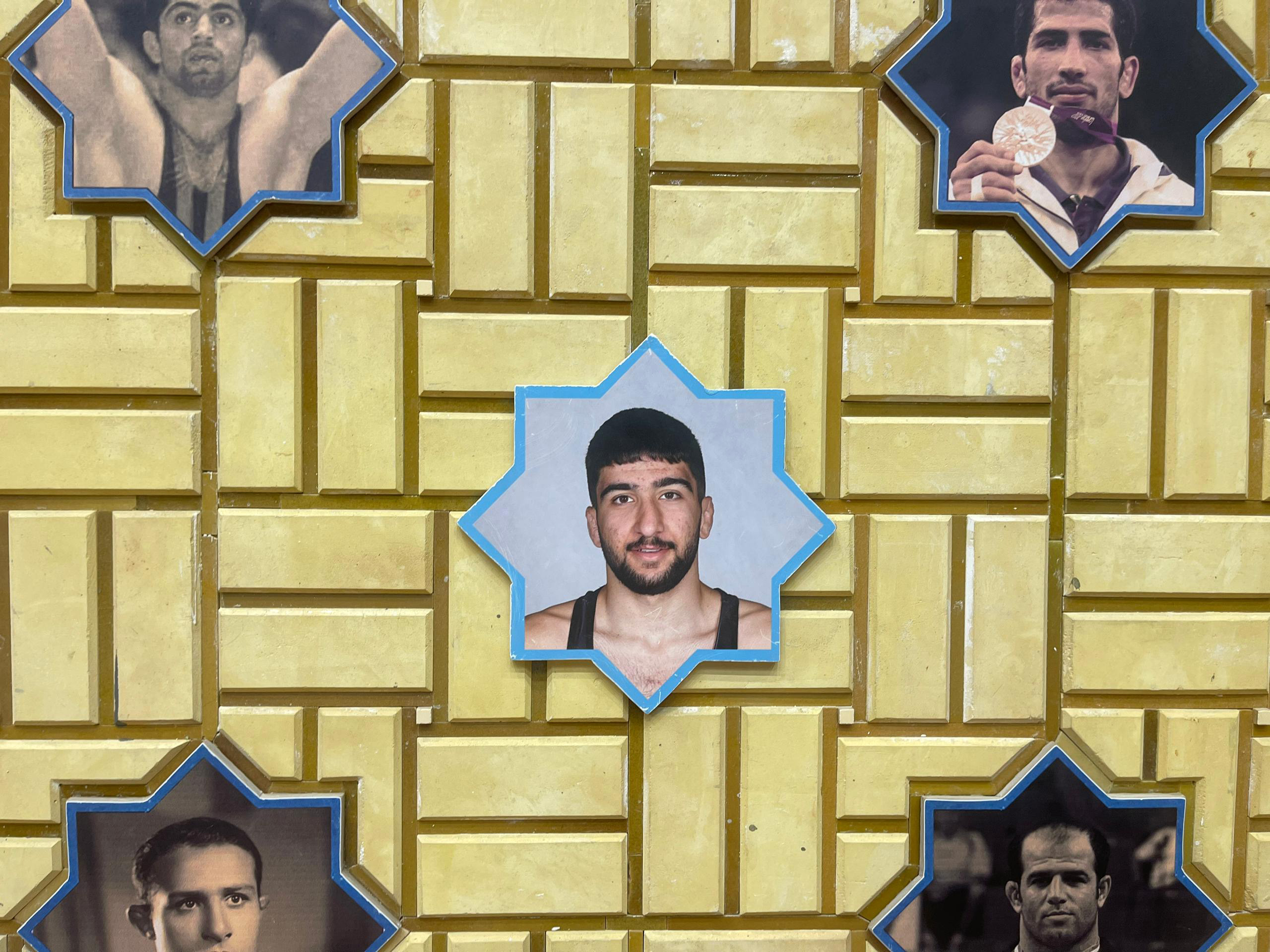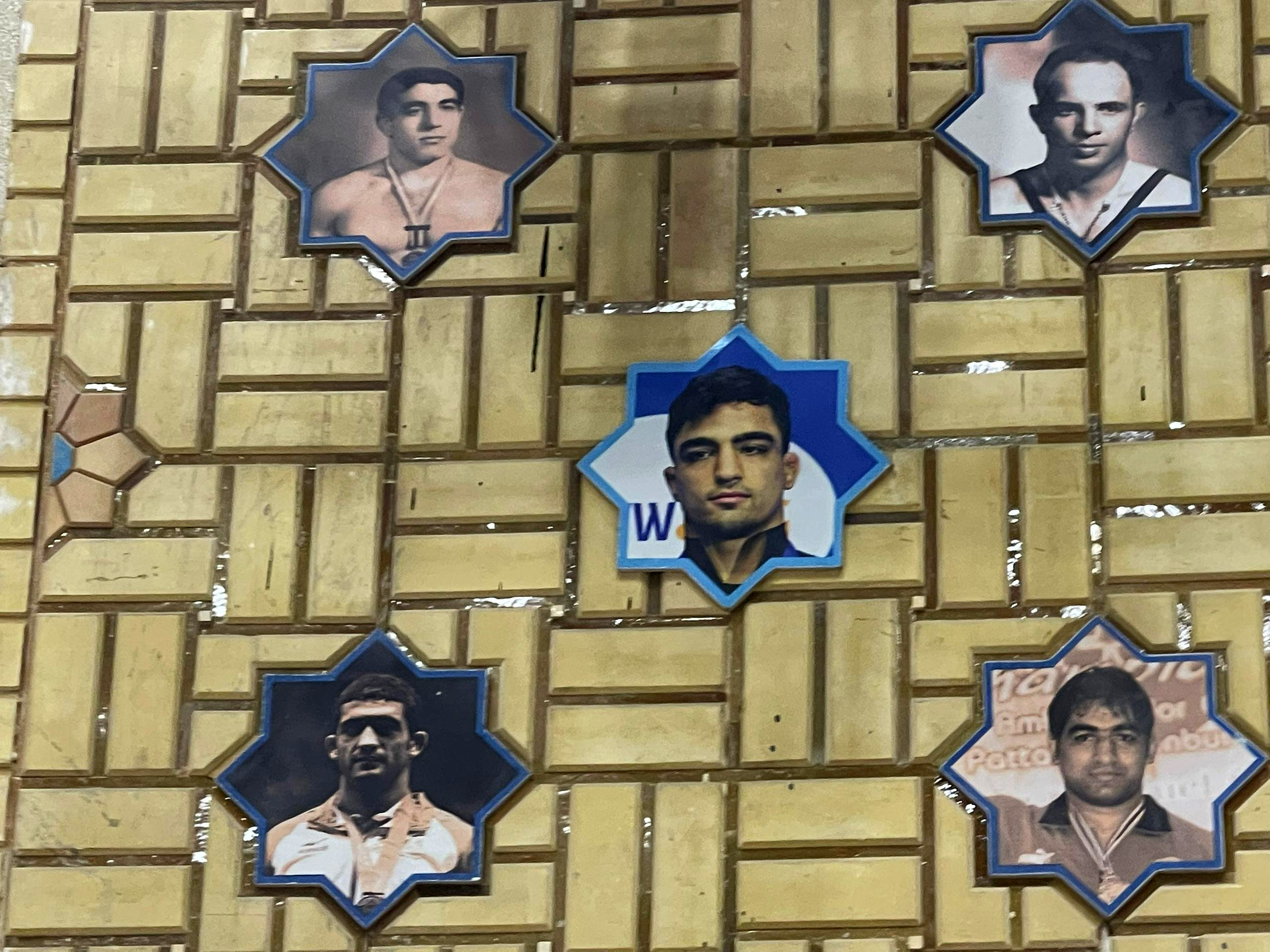 تصاویر 6 مدال آور جدید کشتی ایران در رقابت های جهانی، به صورت کاشی در خانه کشتی شهید صدرزاده نصب شد.